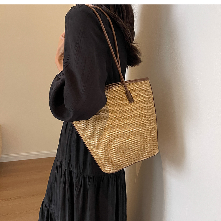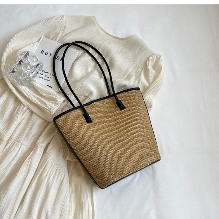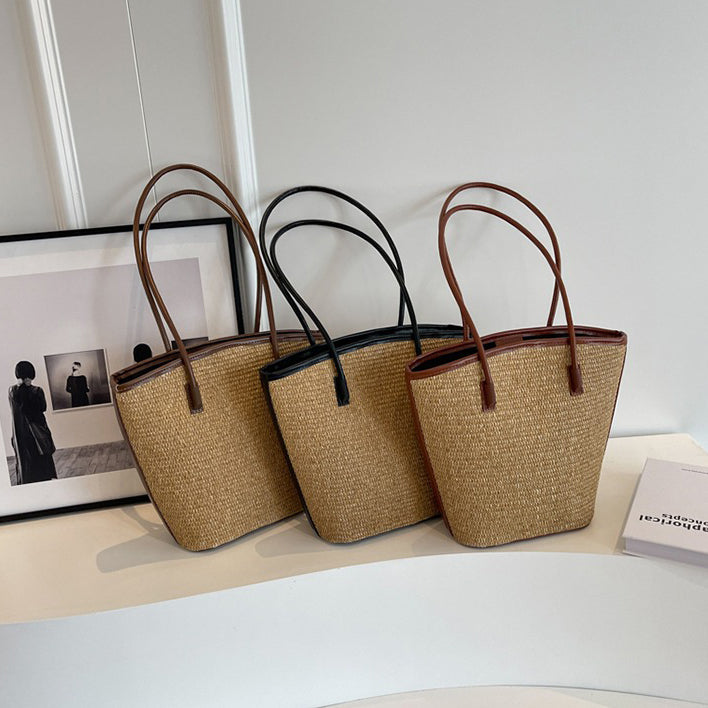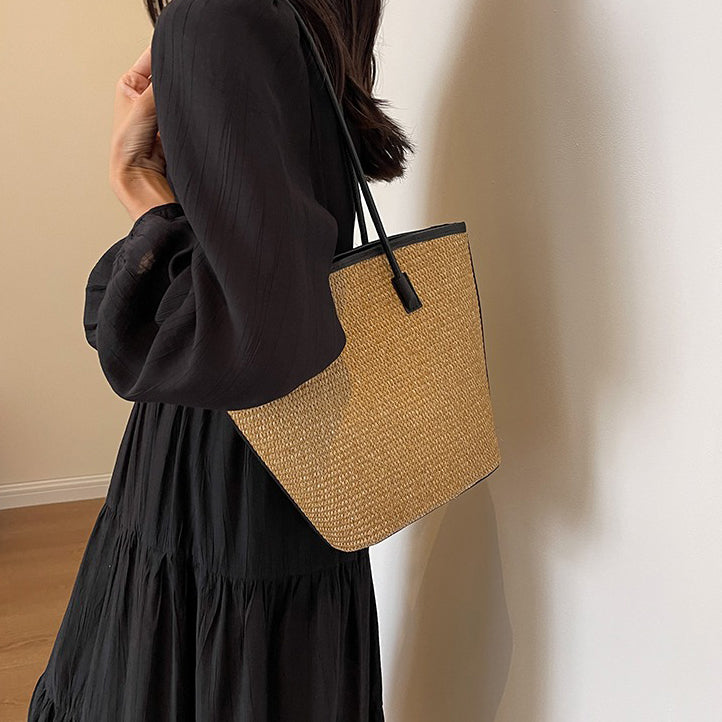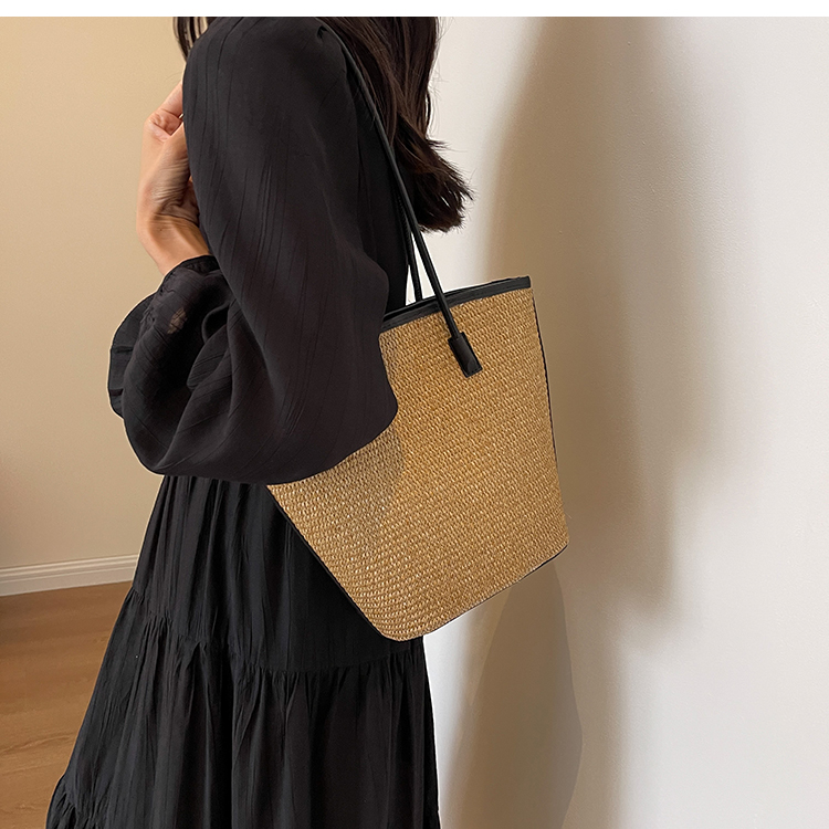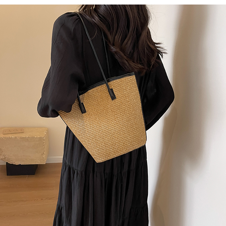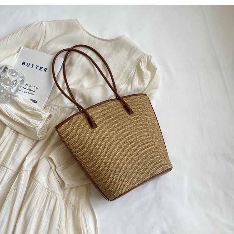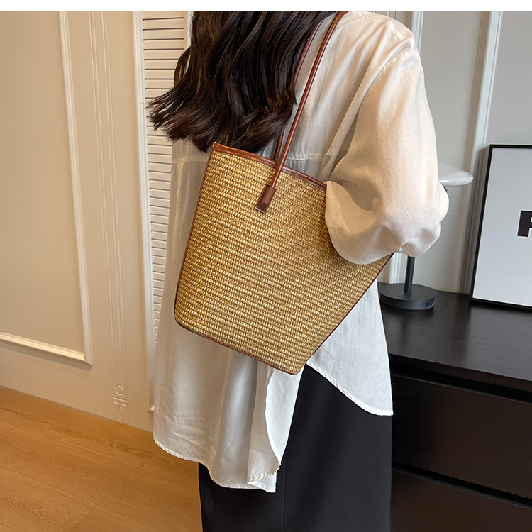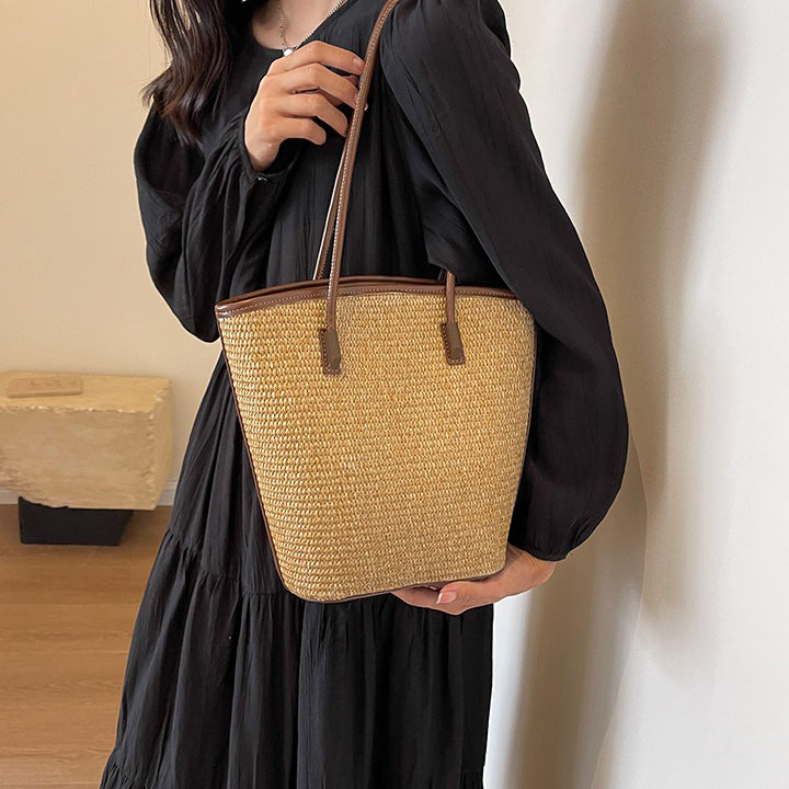 内袋プレゼント!【バッグ】ラフィア風トートバッグ 大容量 通勤OK 流行バケツ型ショルダー