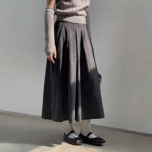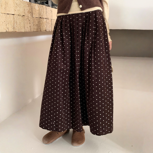 【ボトムス】ドット柄 雑誌風コーデ 春 秋 冬 ミディアムロング スカート 【SHシリーズ】