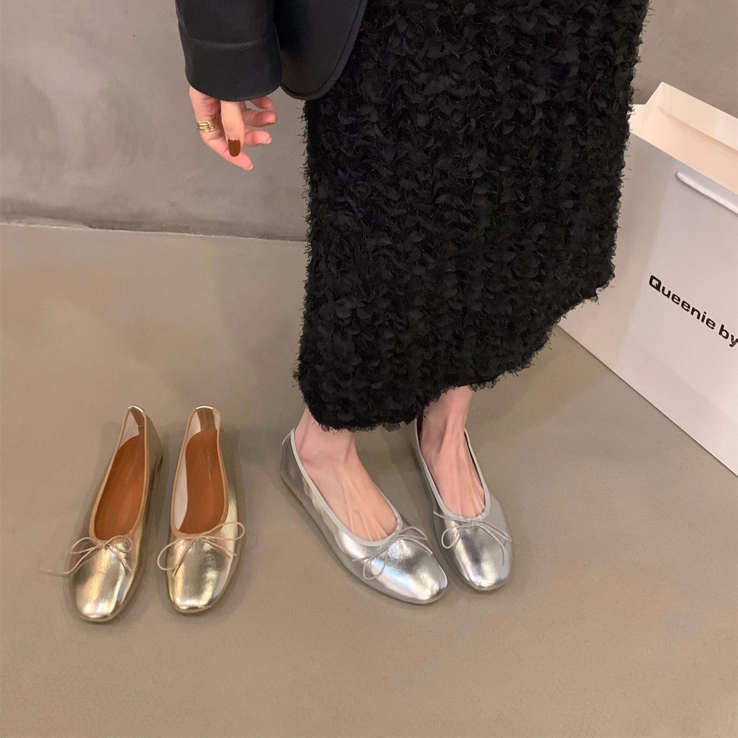 【シューズ】フレンチフラットシューズ バレエ風ローファー パンプス