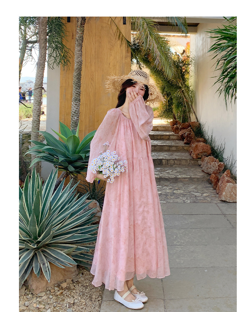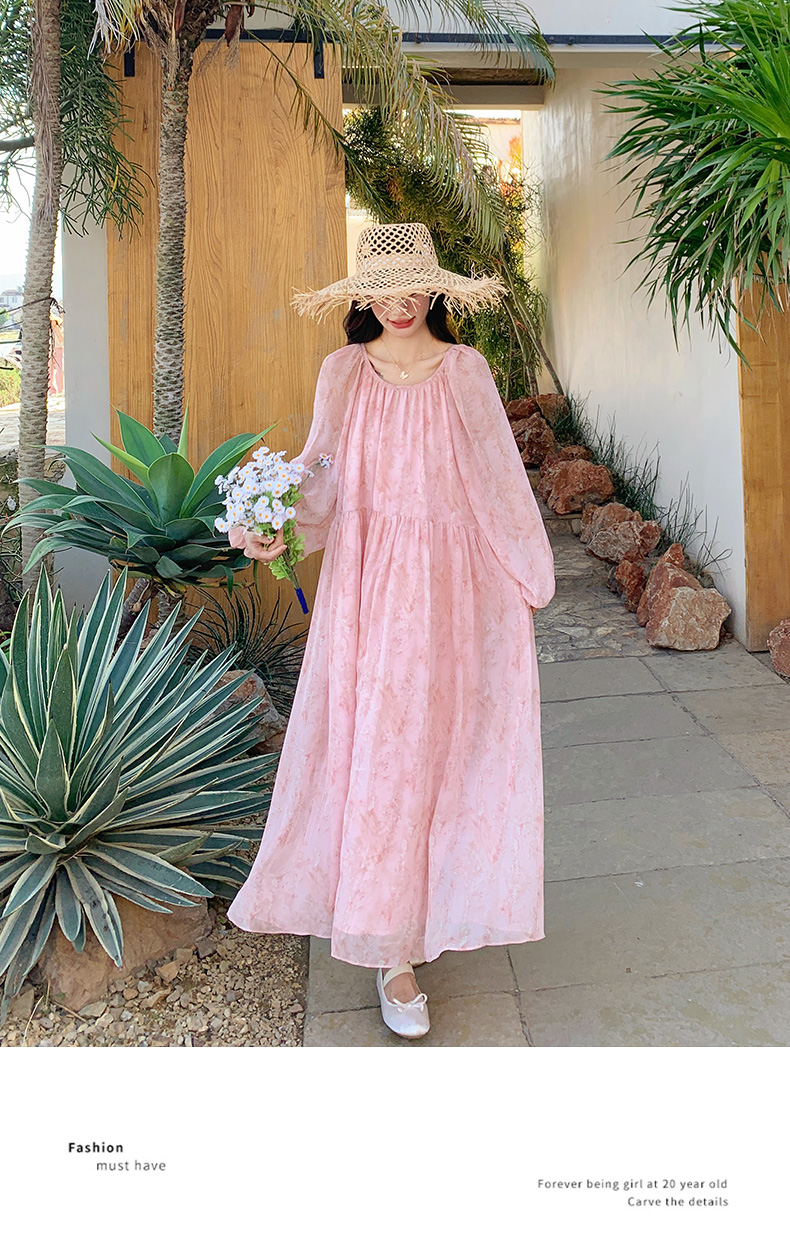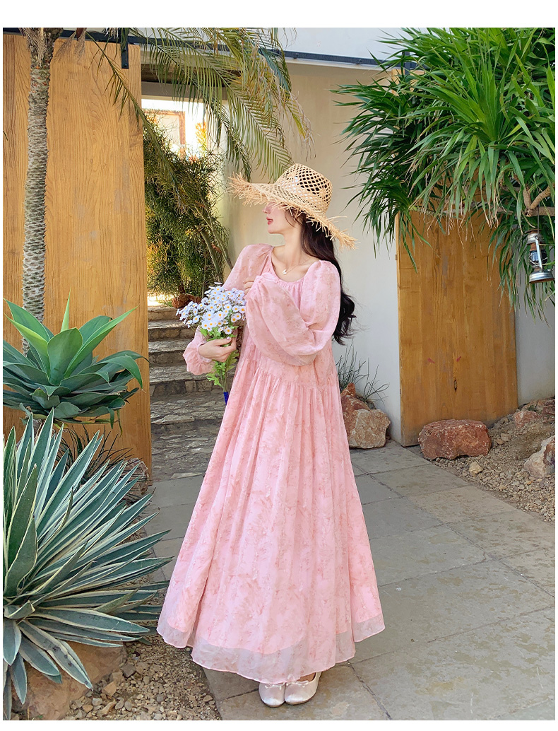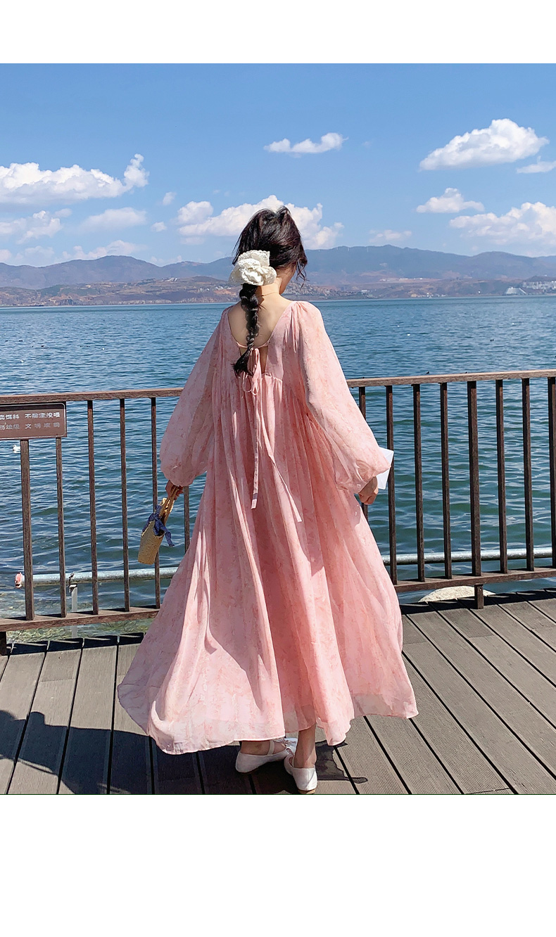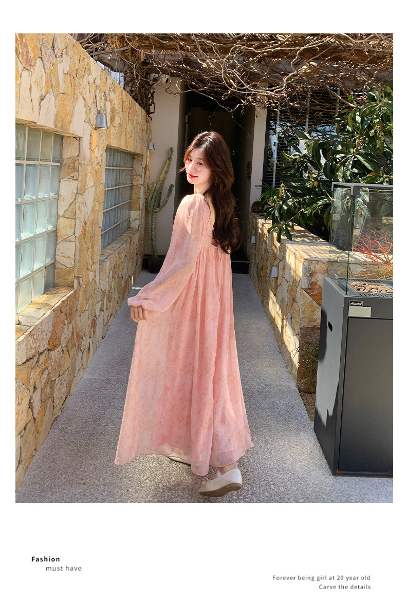 【ワンピース】フェミニン 長袖 花柄ワンピース レディース 春夏秋 シフォン バックオープン ロング丈【SHシリーズ】