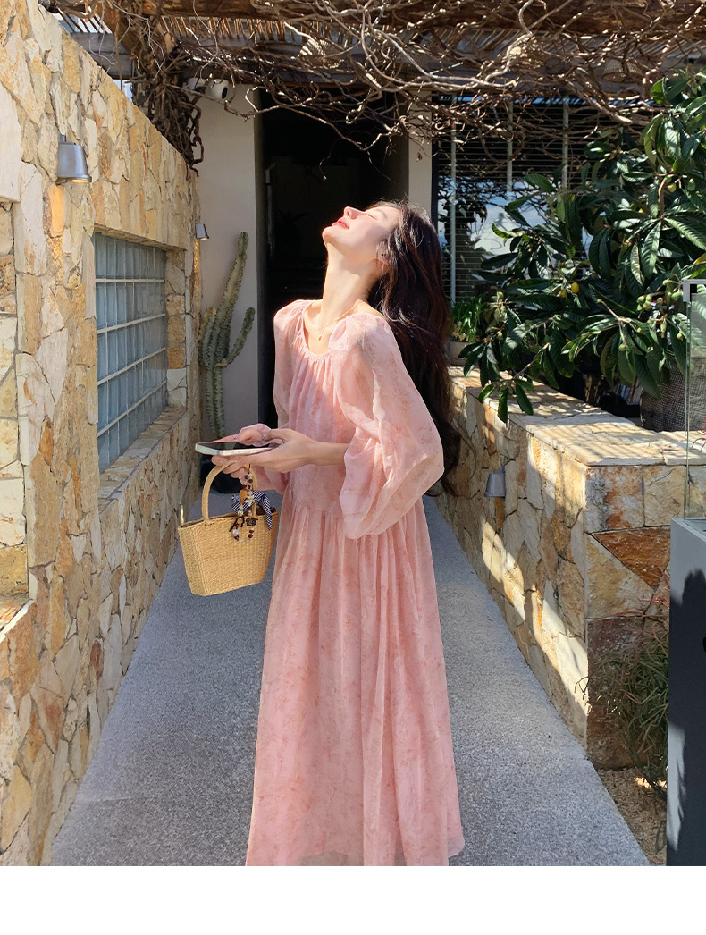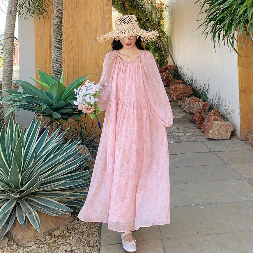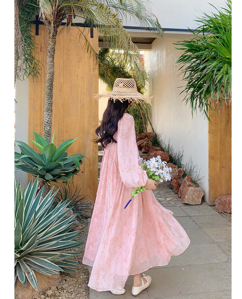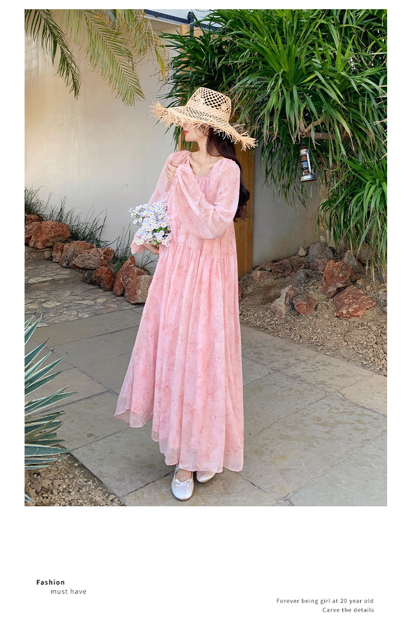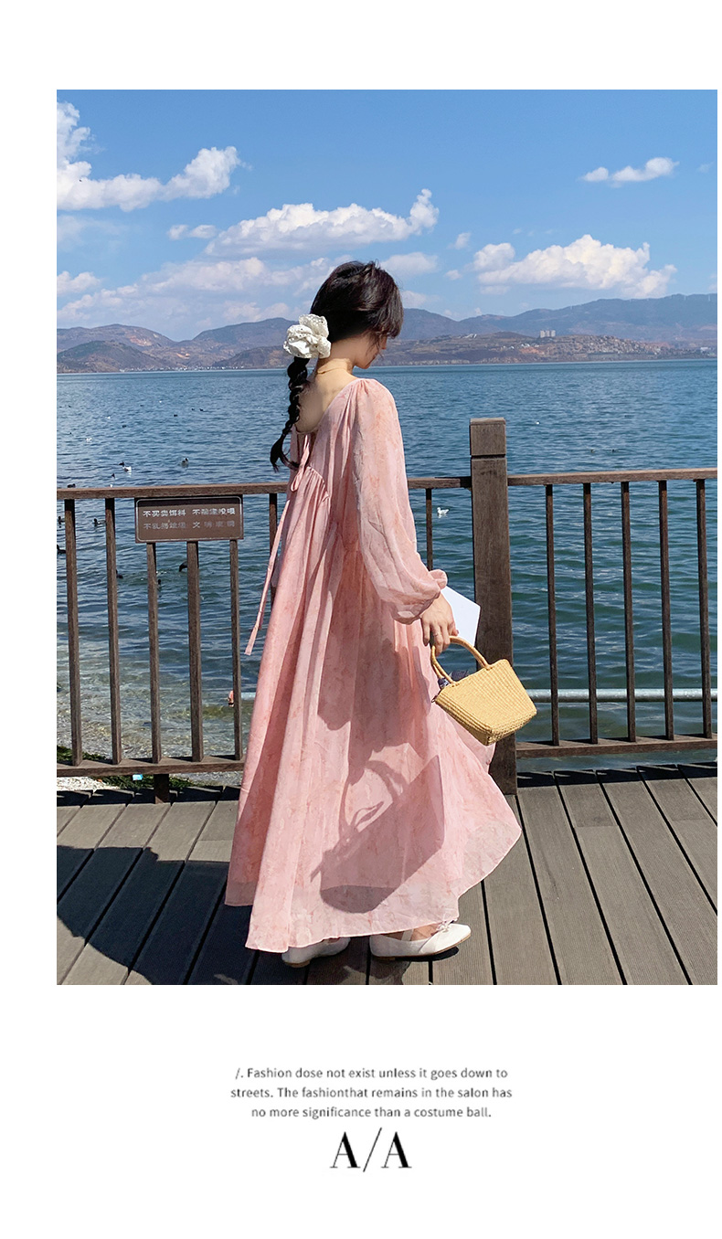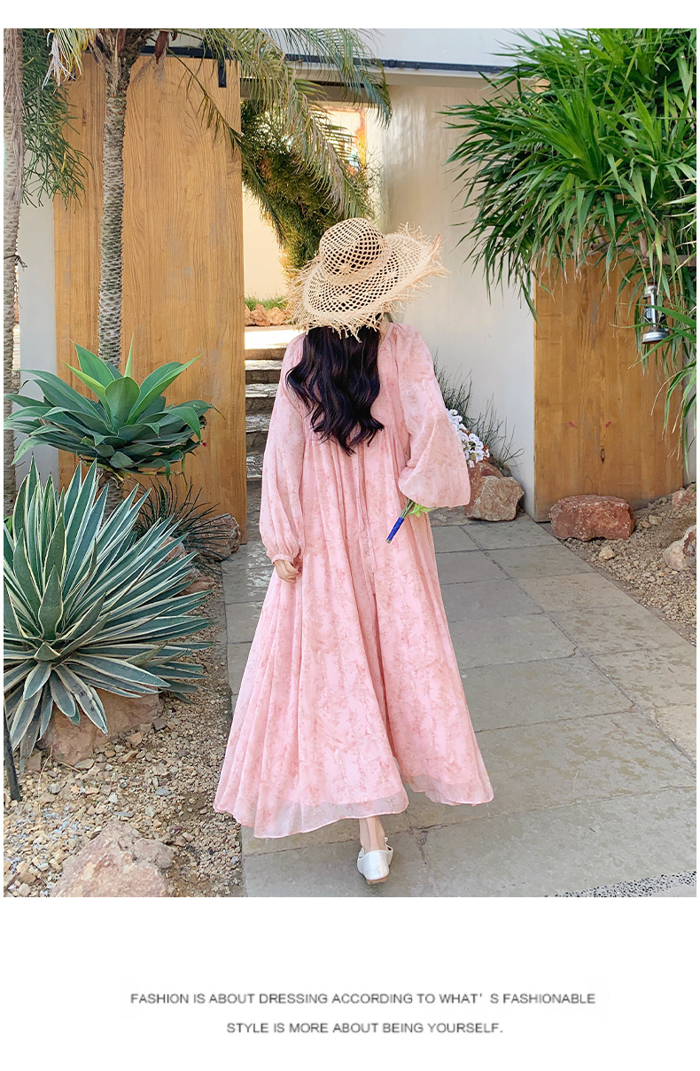 【ワンピース】フェミニン 長袖 花柄ワンピース レディース 春夏秋 シフォン バックオープン ロング丈【SHシリーズ】