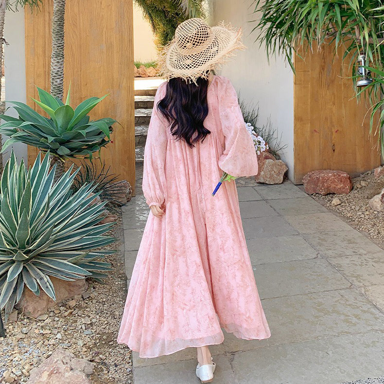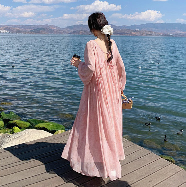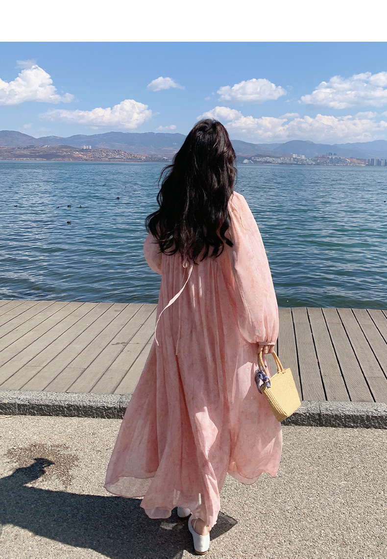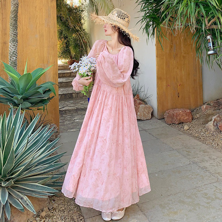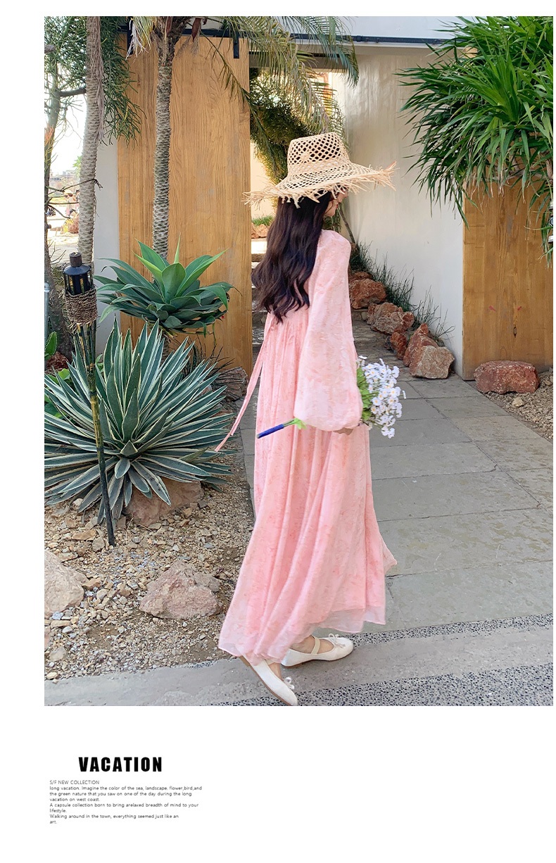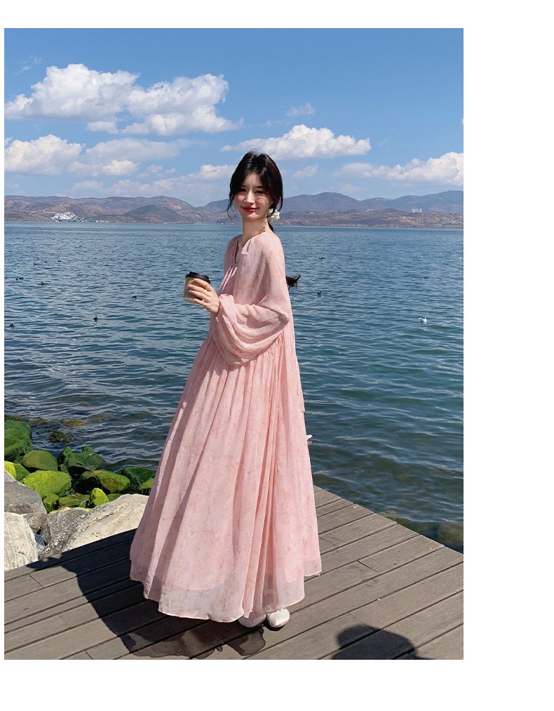 【ワンピース】フェミニン 長袖 花柄ワンピース レディース 春夏秋 シフォン バックオープン ロング丈【SHシリーズ】