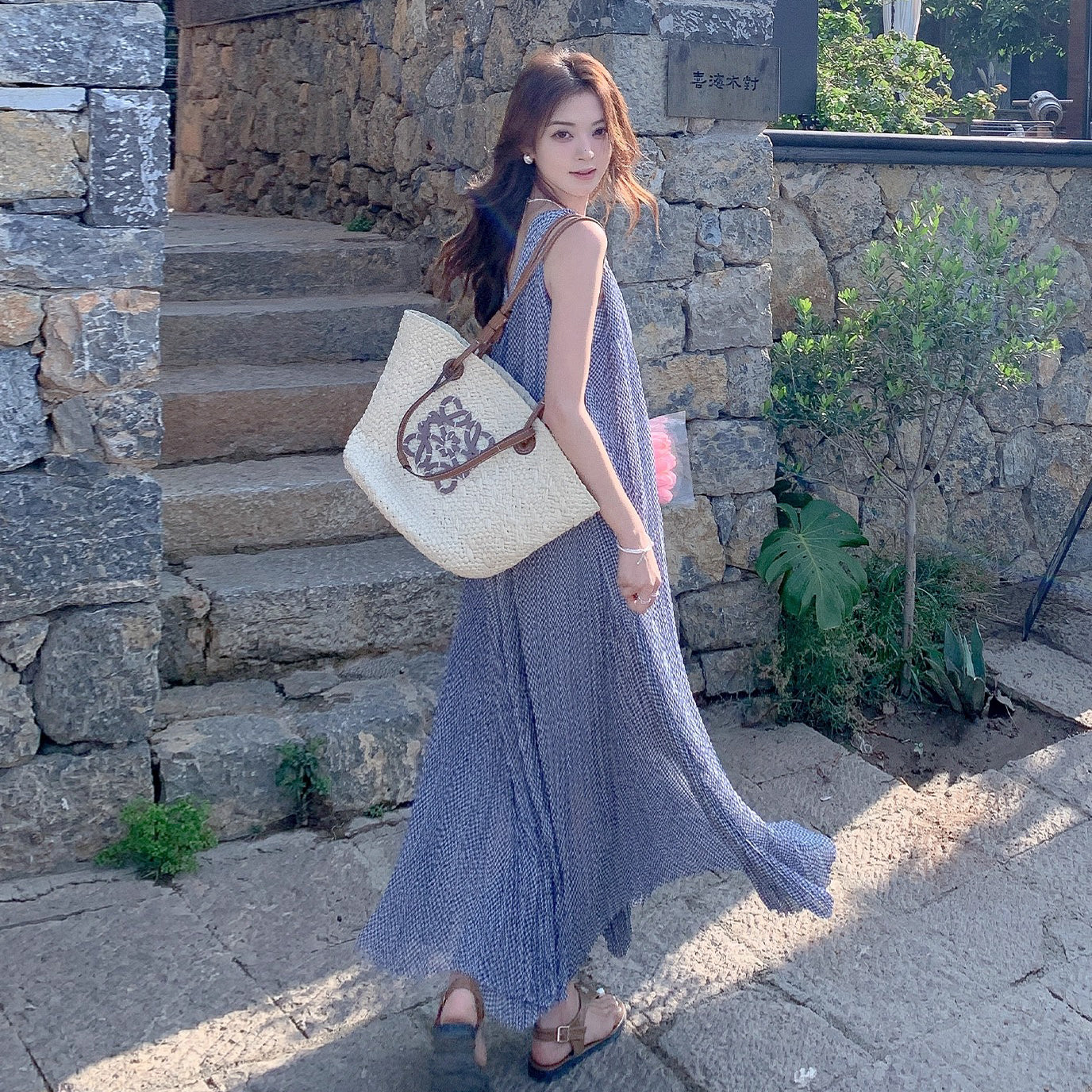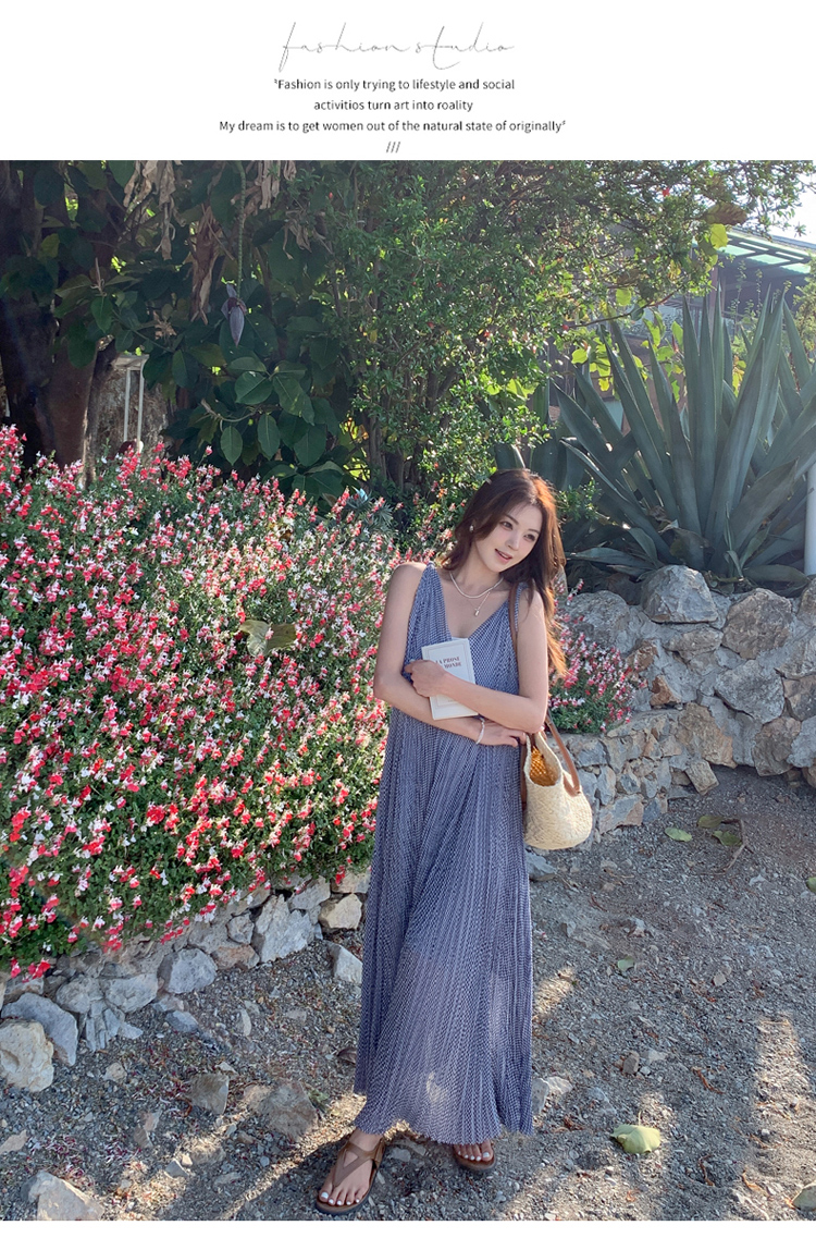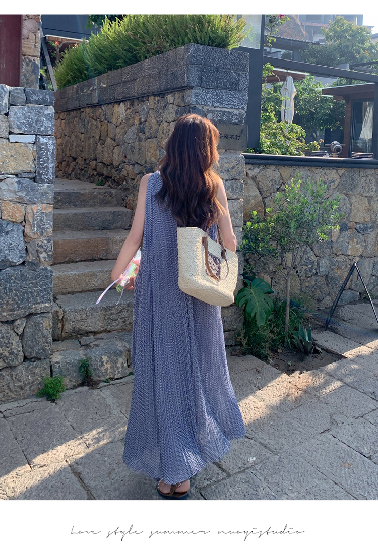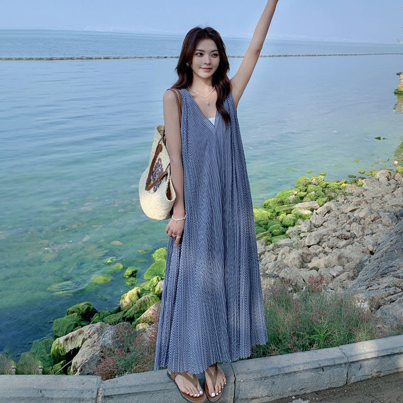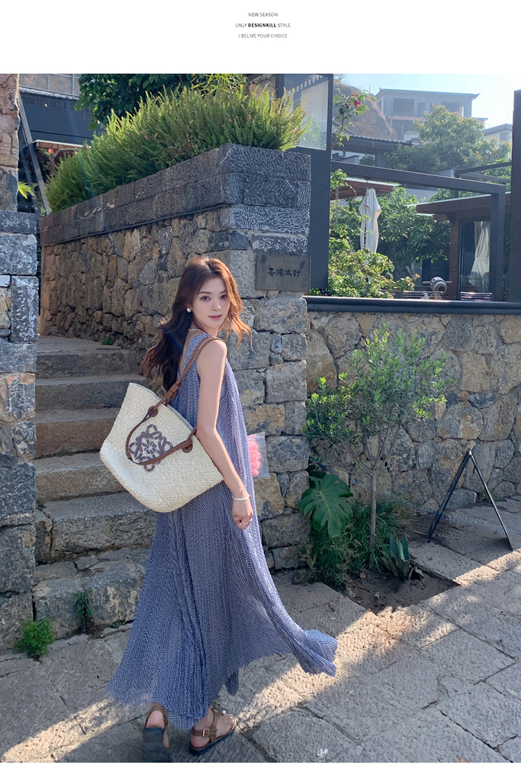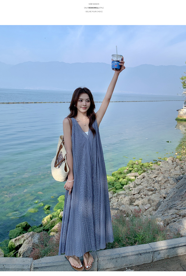 【商品名】【ワンピース】韓国風 千鳥格 ノースリーブワンピース レディース 夏 大きめ裾 ロング丈 高見え【SHシリーズ】