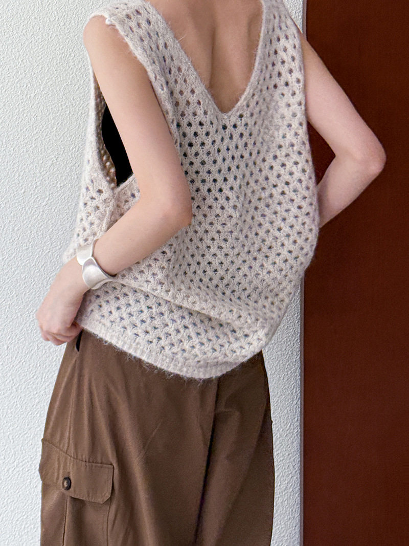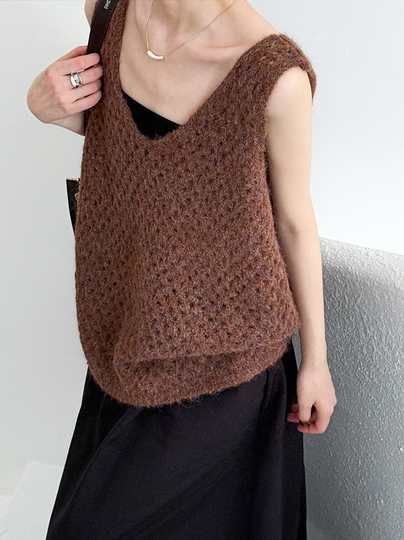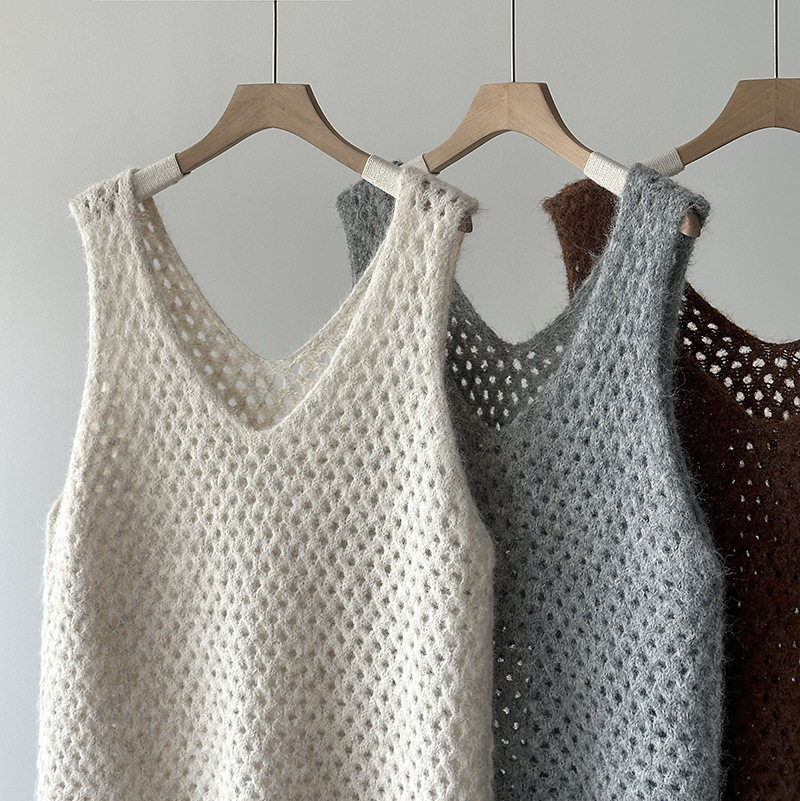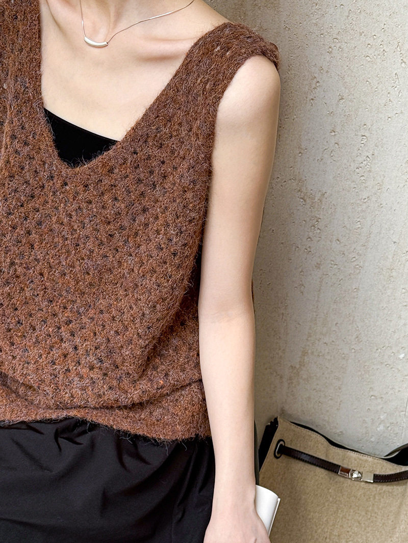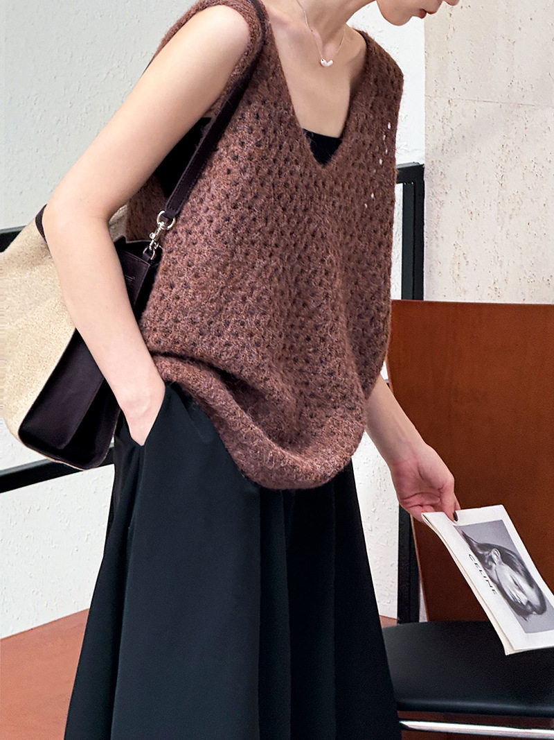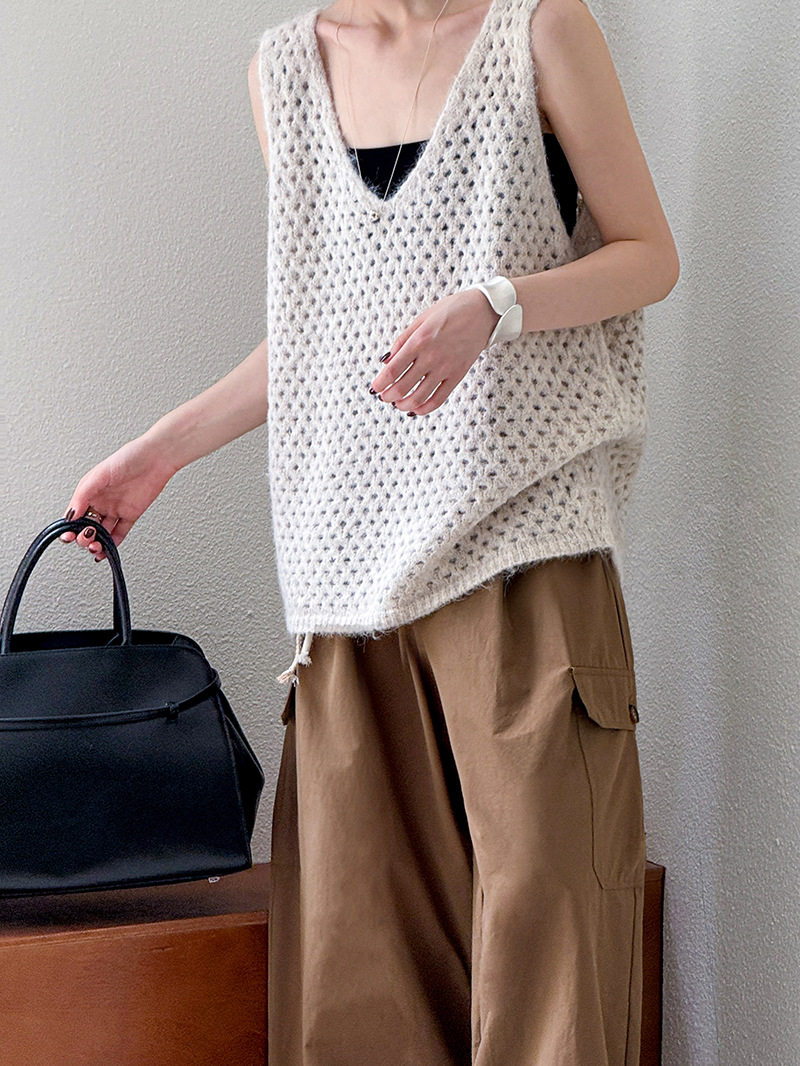 【トップス】秋先取り ゆるっと着られるレイヤードニットベスト 透かしデザイン【JZシリーズ】