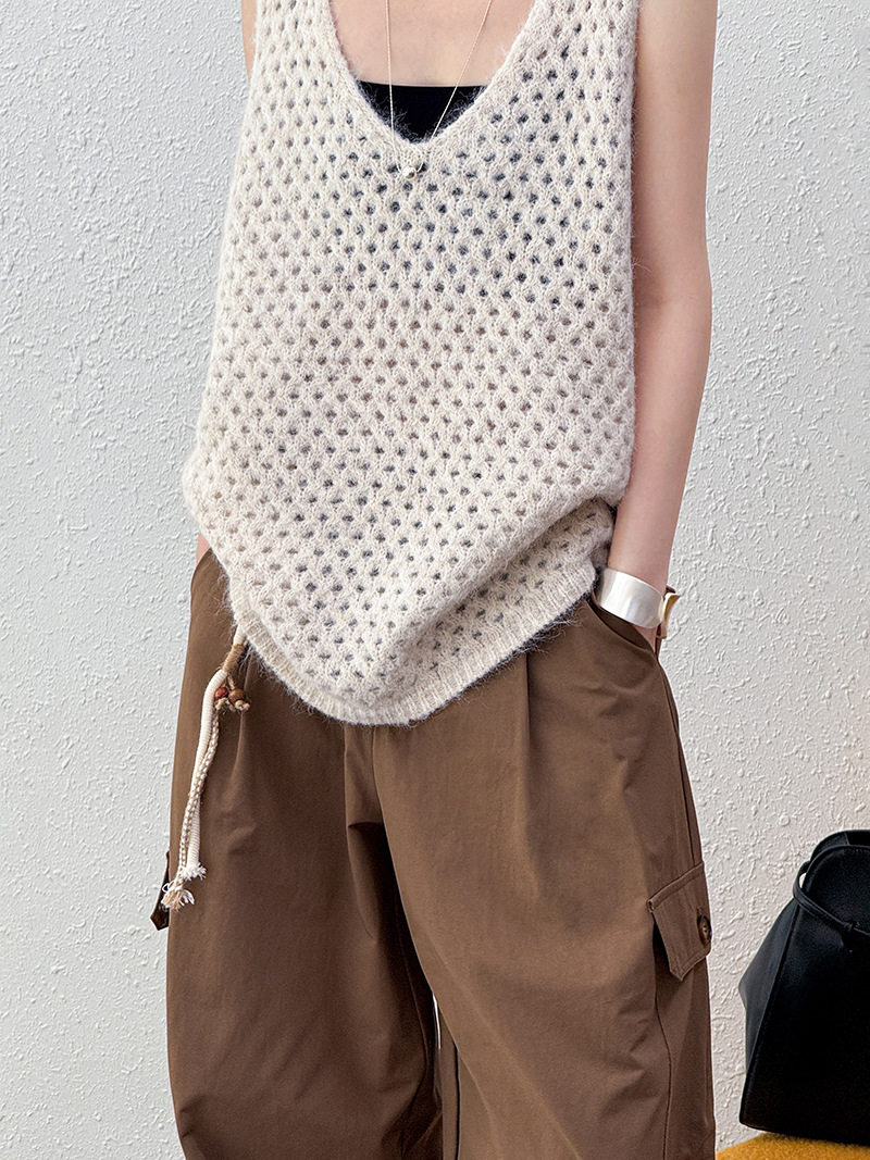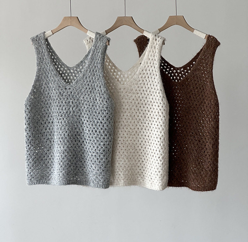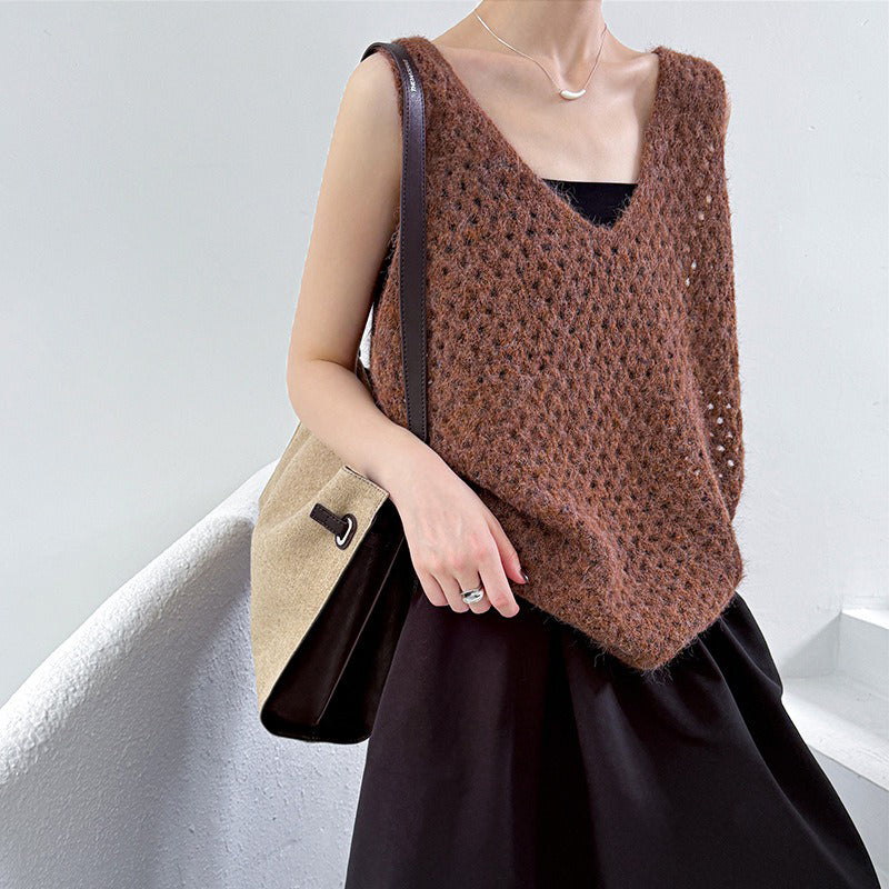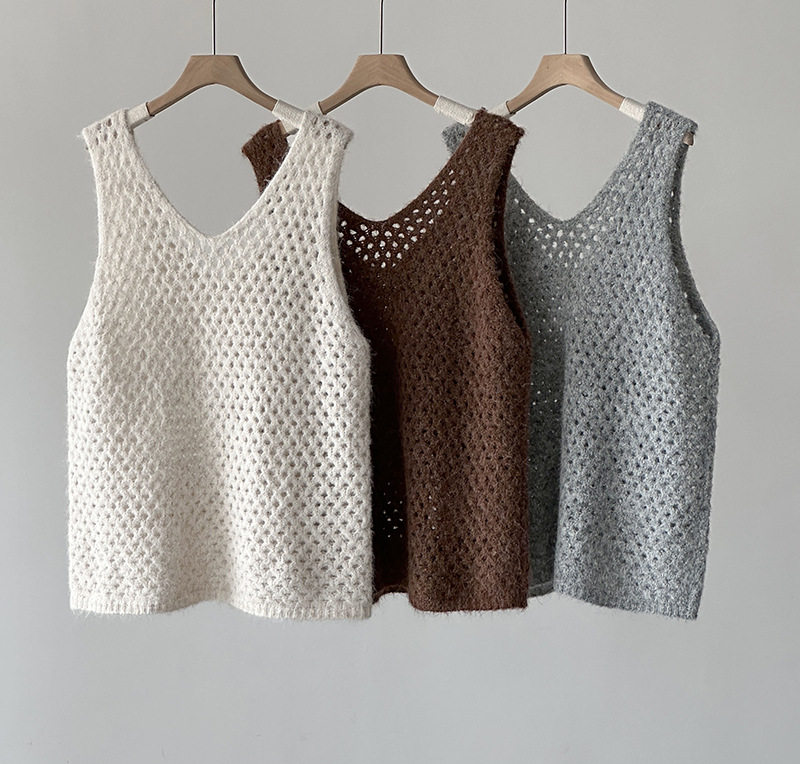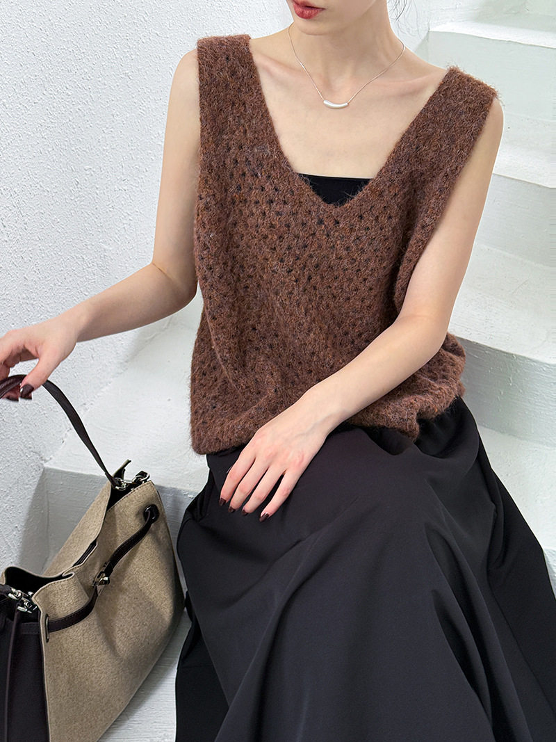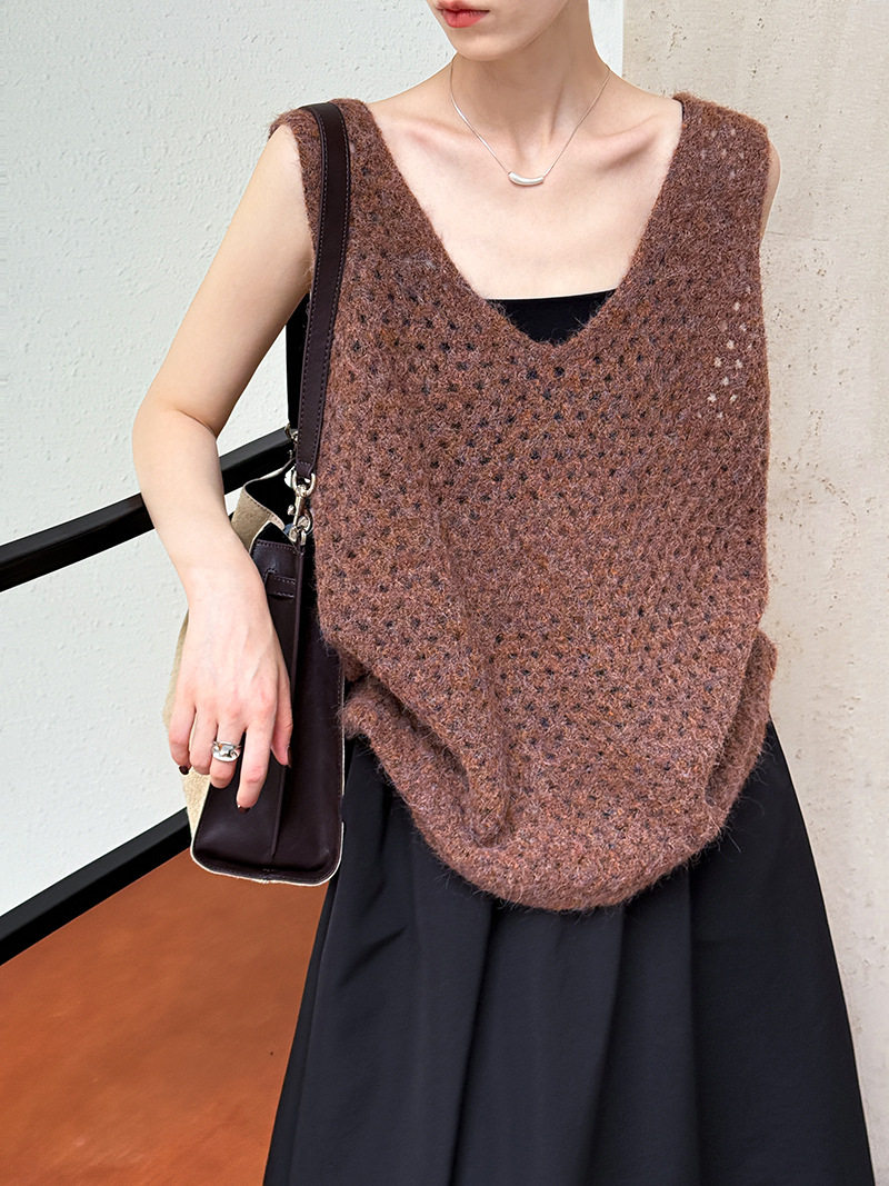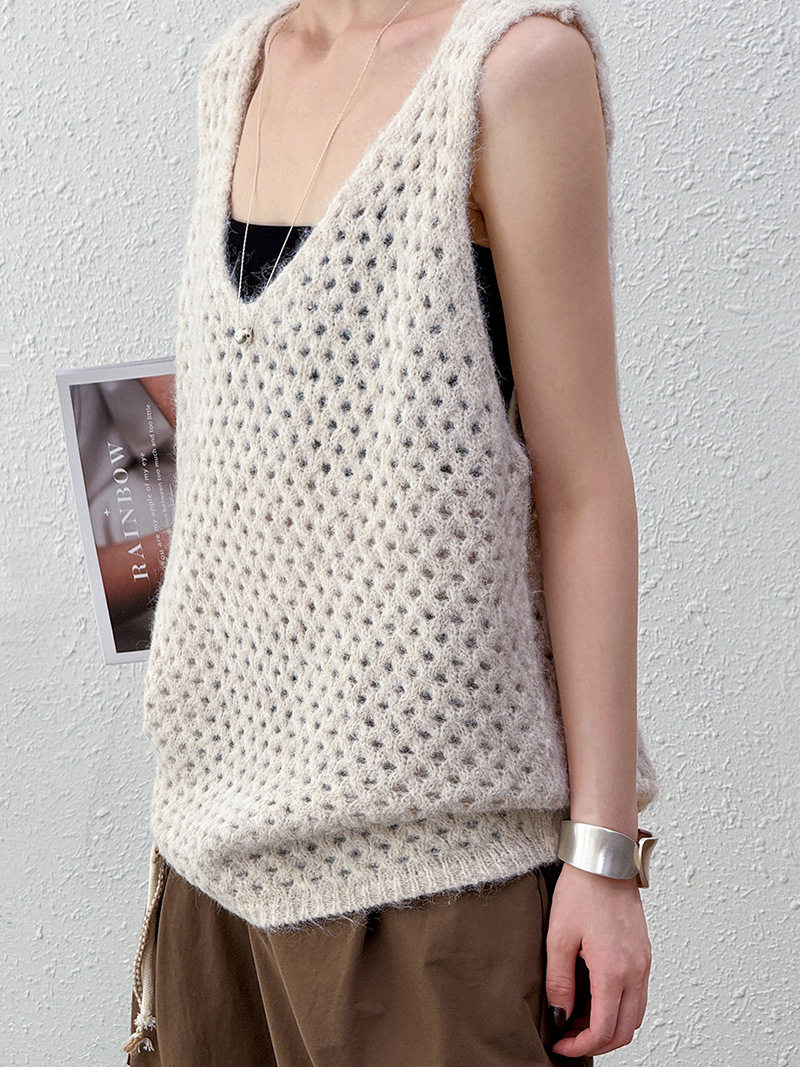 【トップス】秋先取り ゆるっと着られるレイヤードニットベスト 透かしデザイン【JZシリーズ】