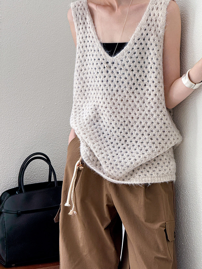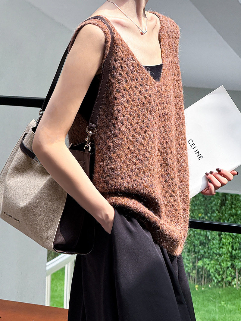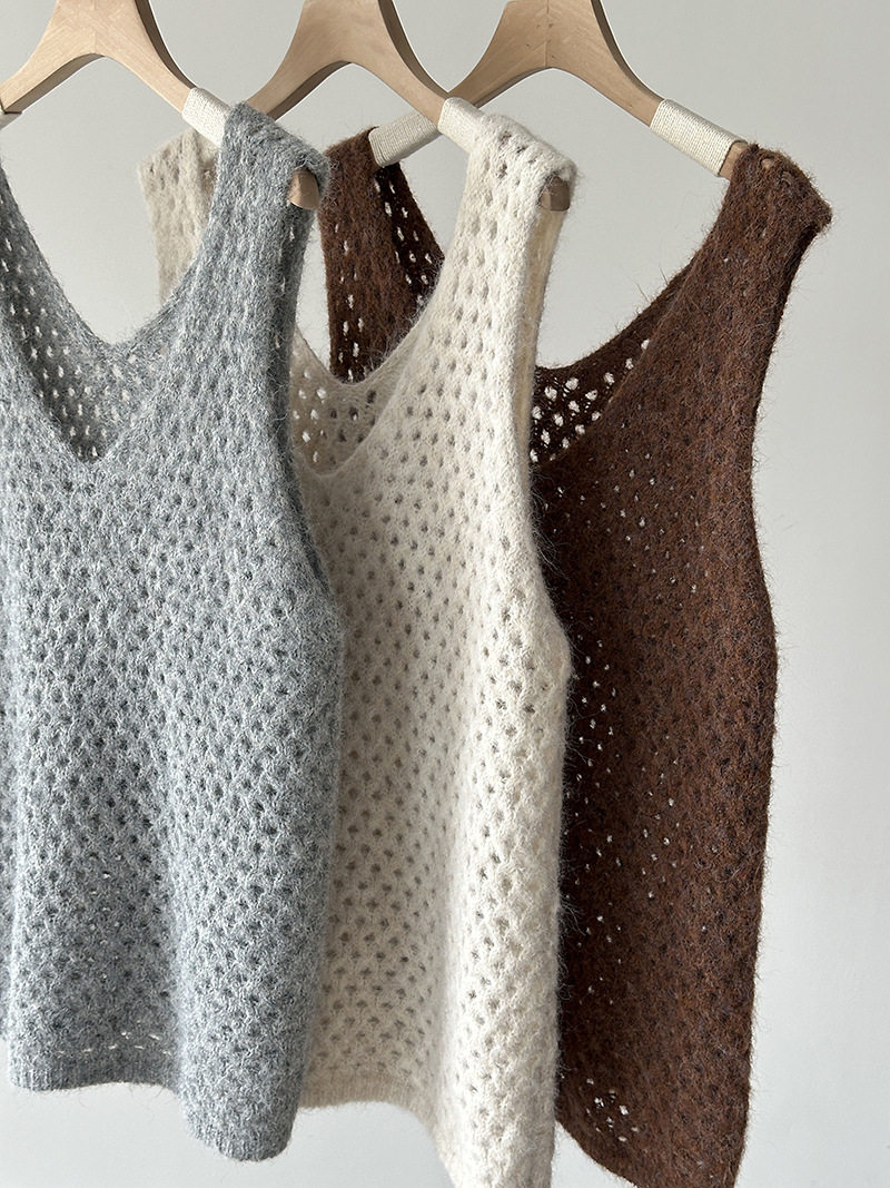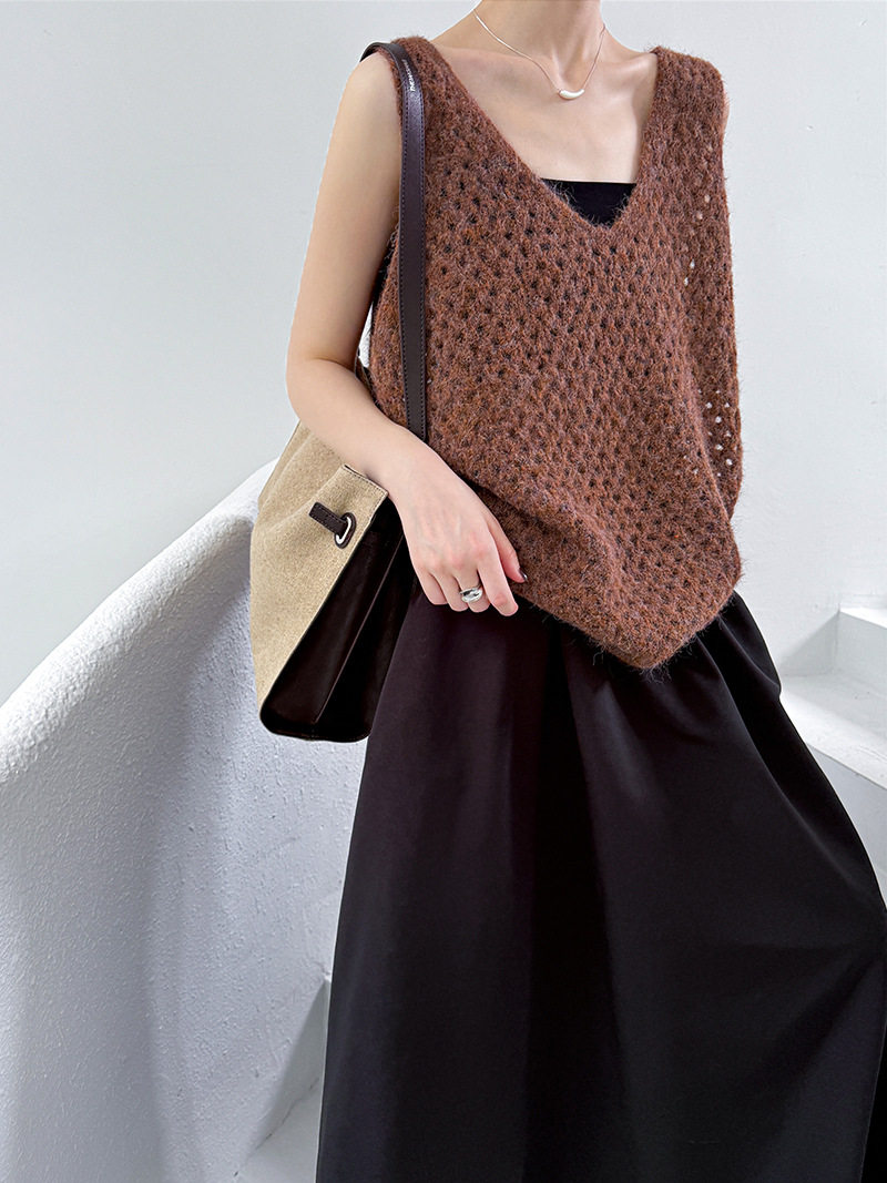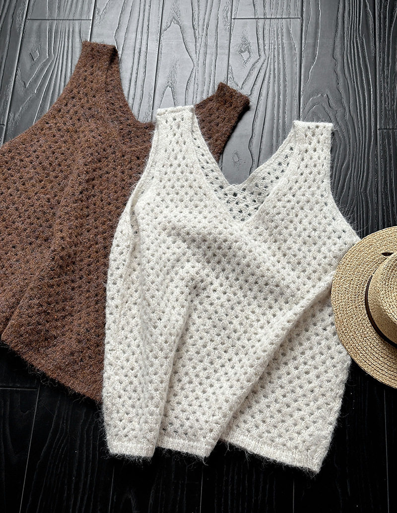 【トップス】秋先取り ゆるっと着られるレイヤードニットベスト 透かしデザイン【JZシリーズ】