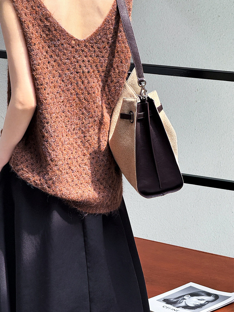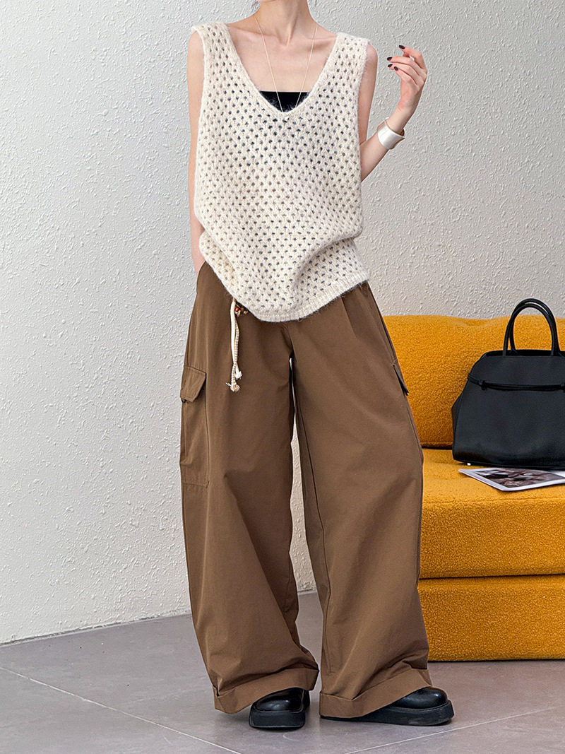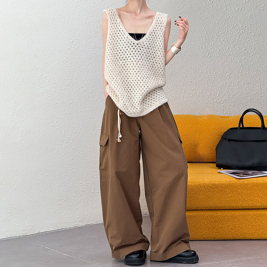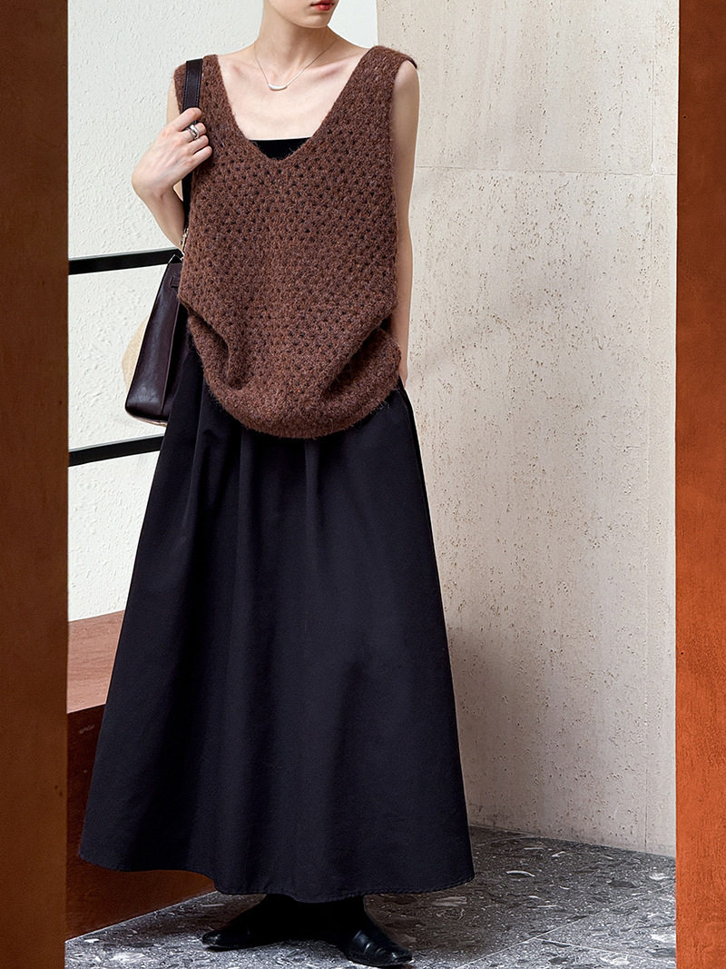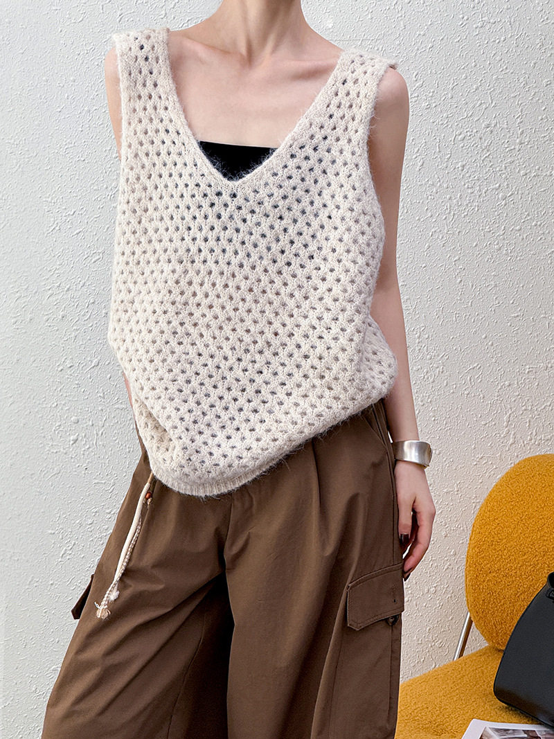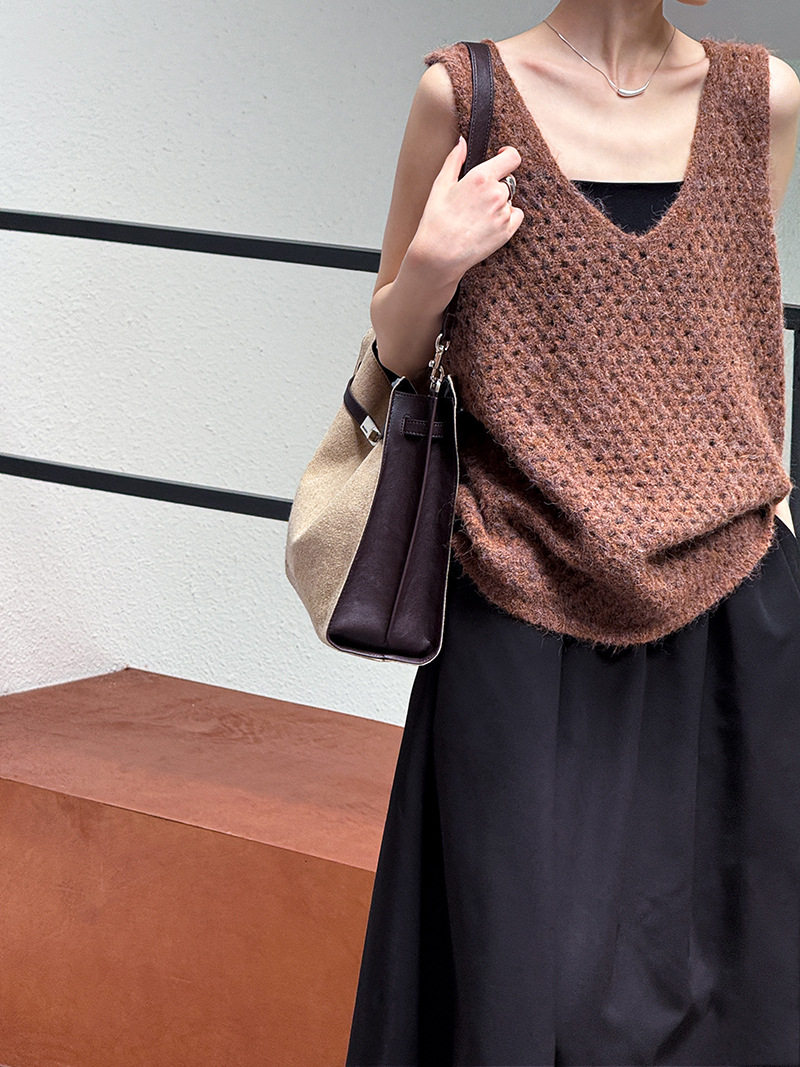 【トップス】秋先取り ゆるっと着られるレイヤードニットベスト 透かしデザイン【JZシリーズ】