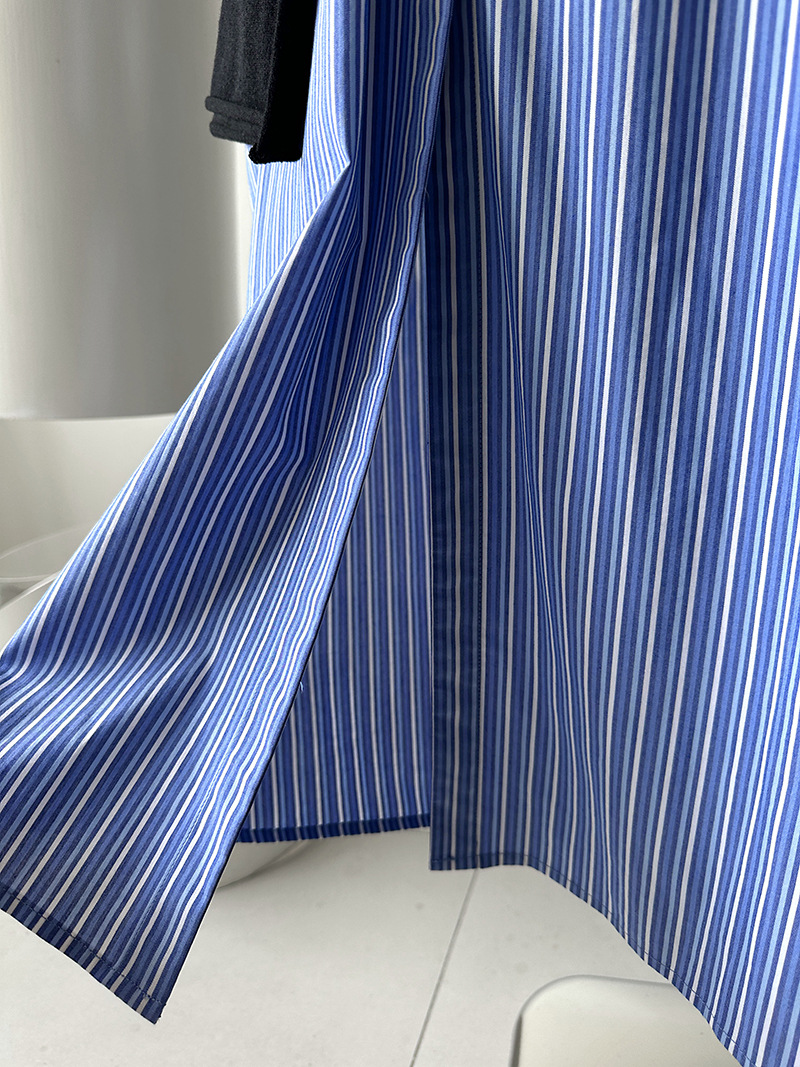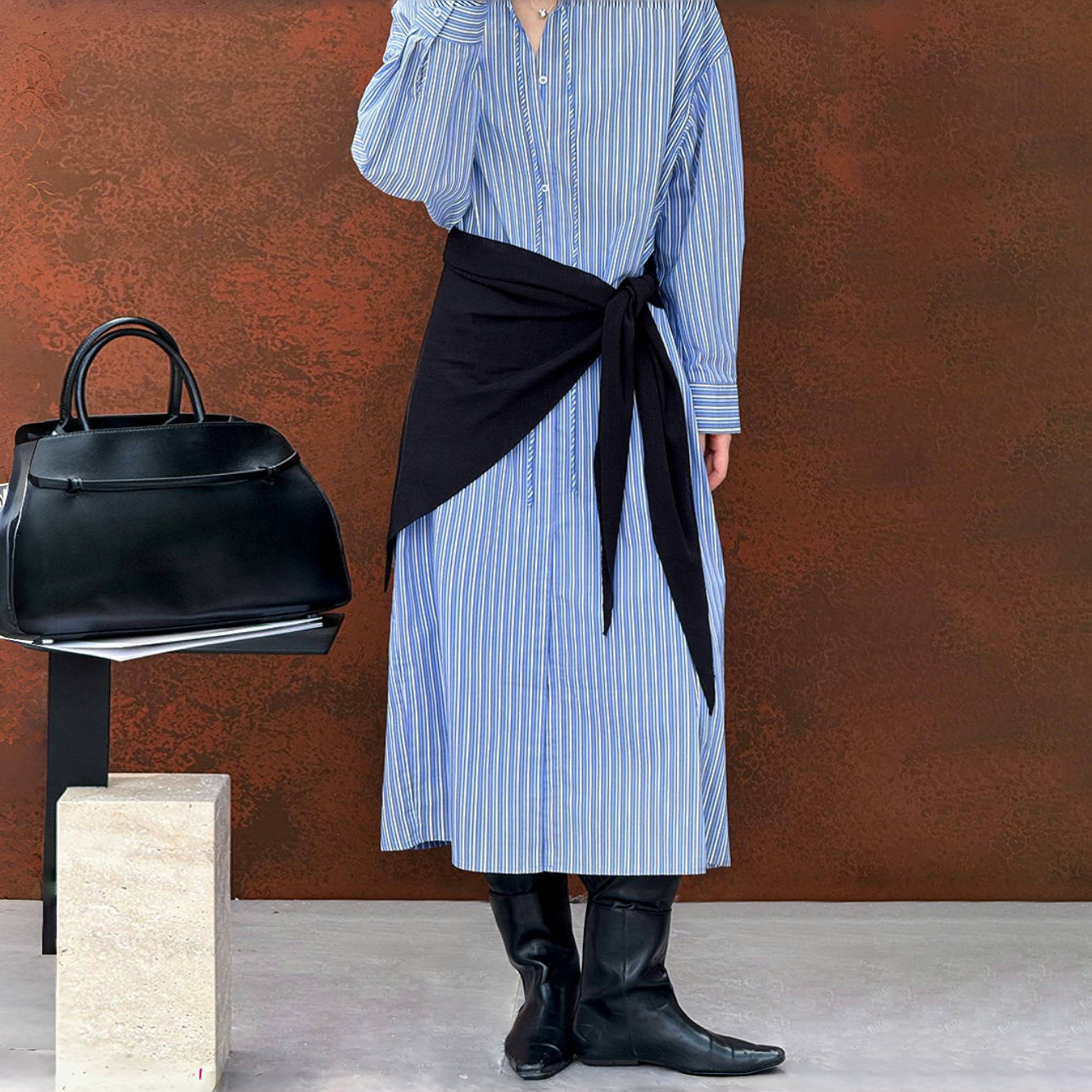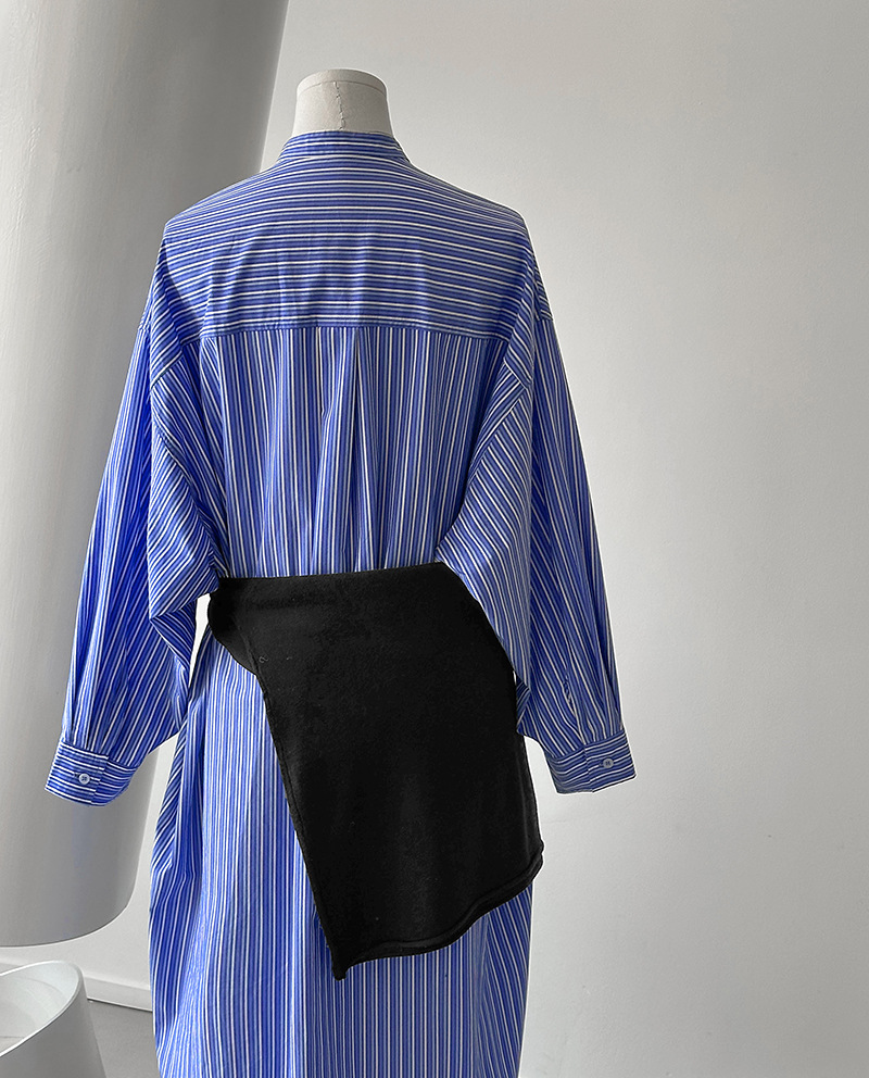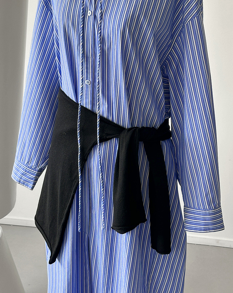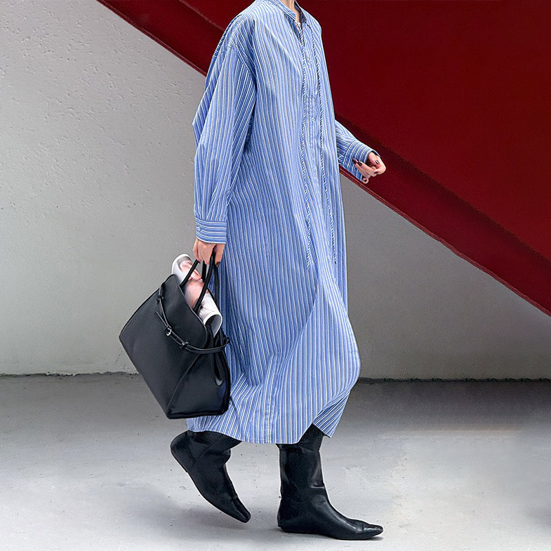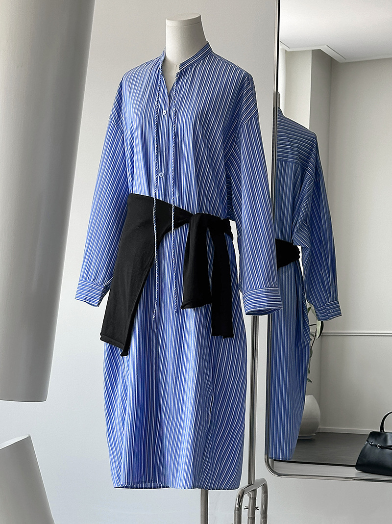 【ワンピース】秋先取り ロング丈 ストライプ 開襟長袖 シャツワンピース ゆるっとおしゃれ 着痩せデザイン【JZシリーズ】