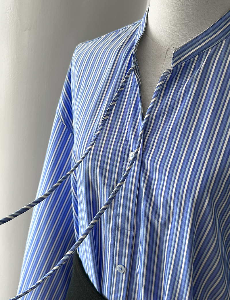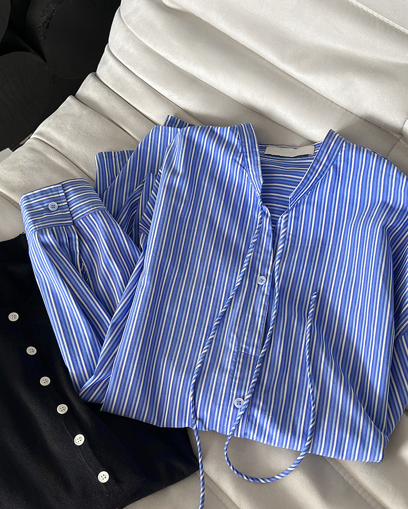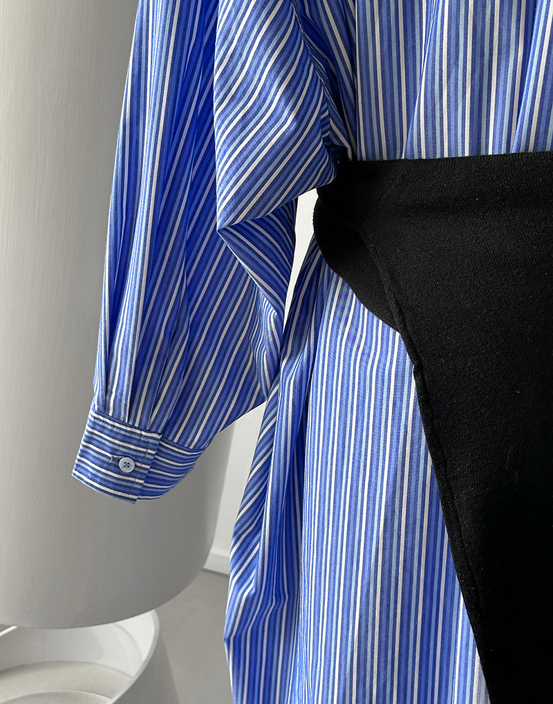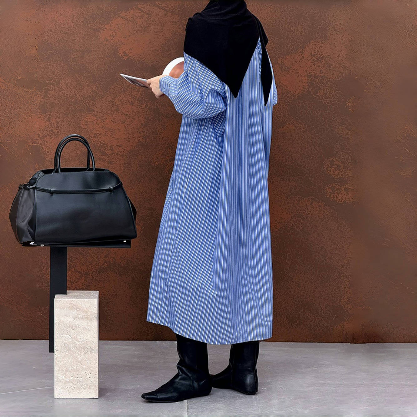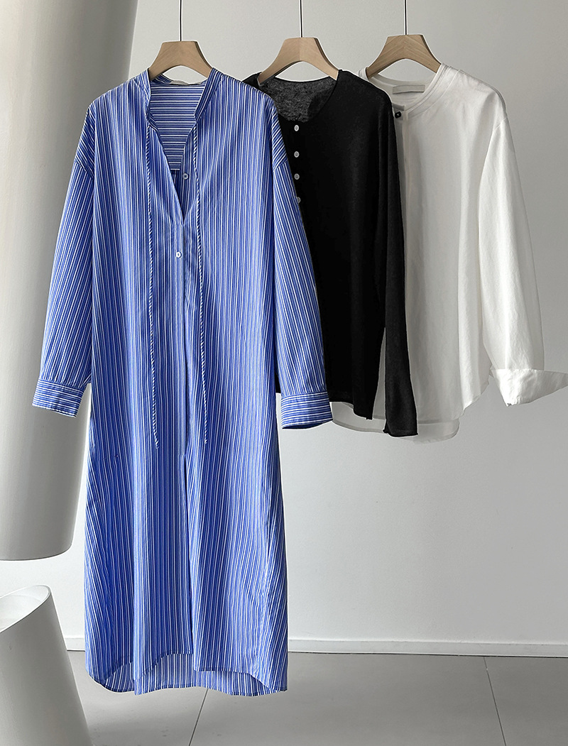 【ワンピース】秋先取り ロング丈 ストライプ 開襟長袖 シャツワンピース ゆるっとおしゃれ 着痩せデザイン【JZシリーズ】