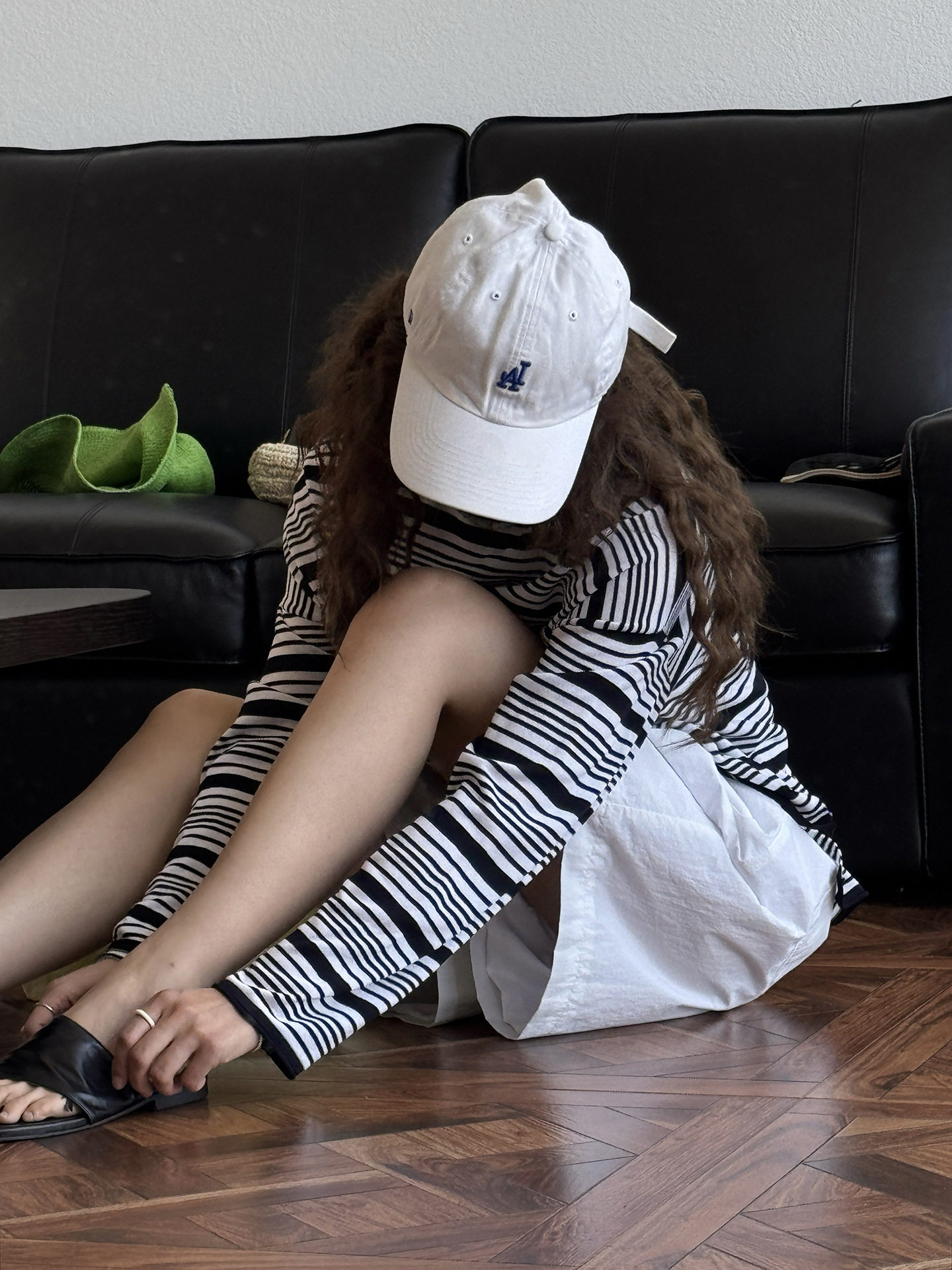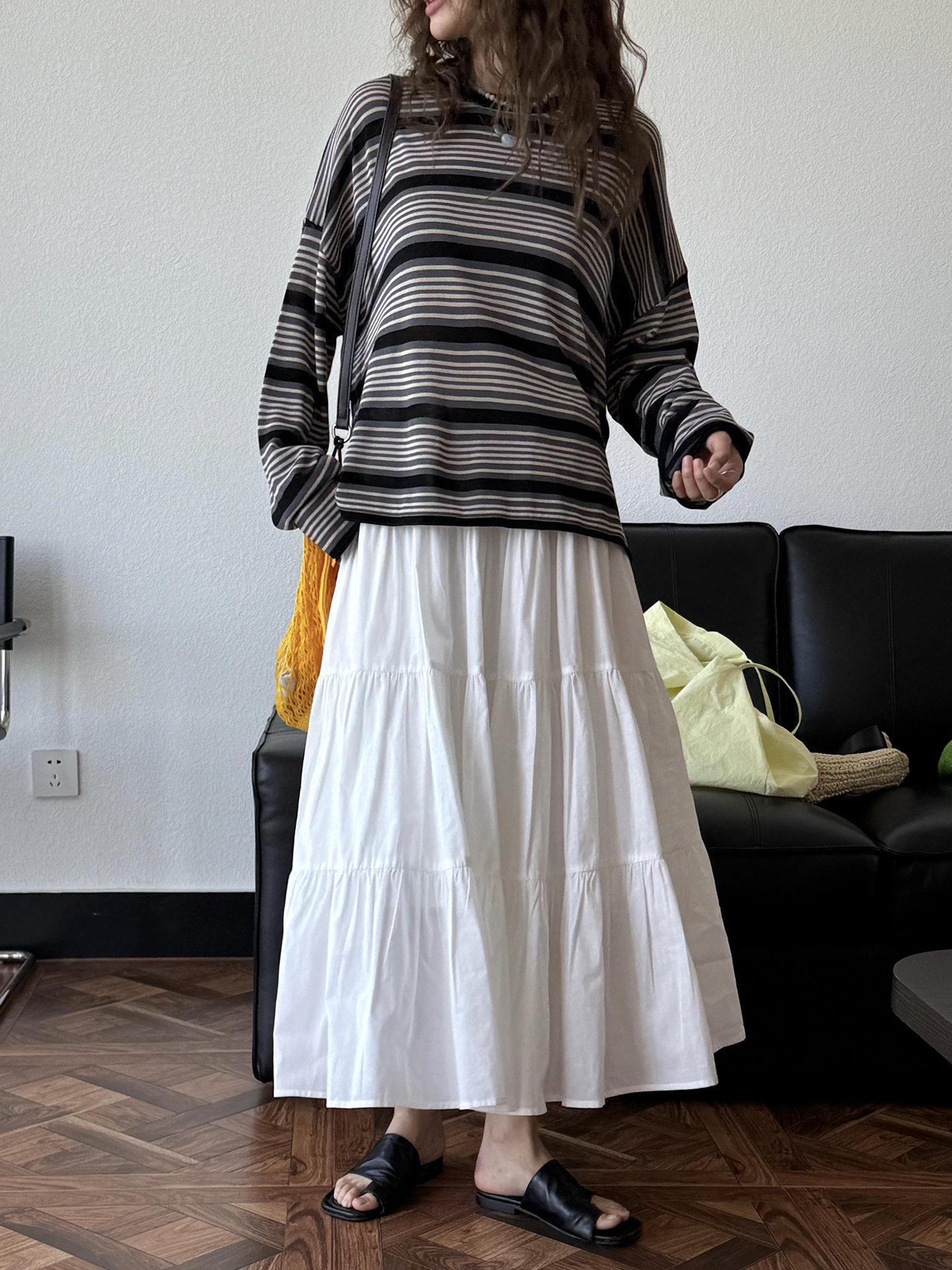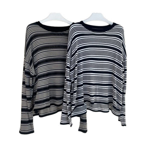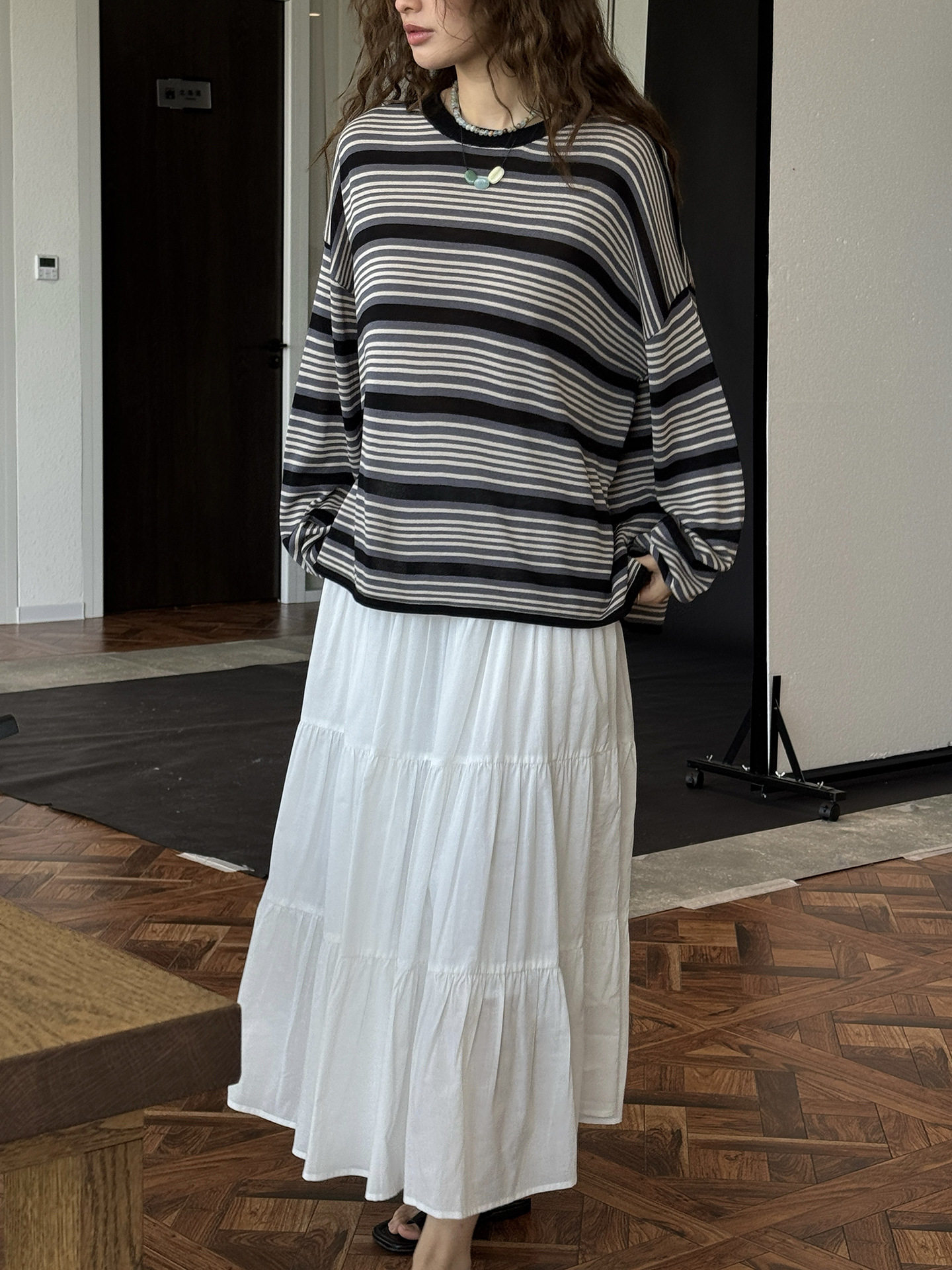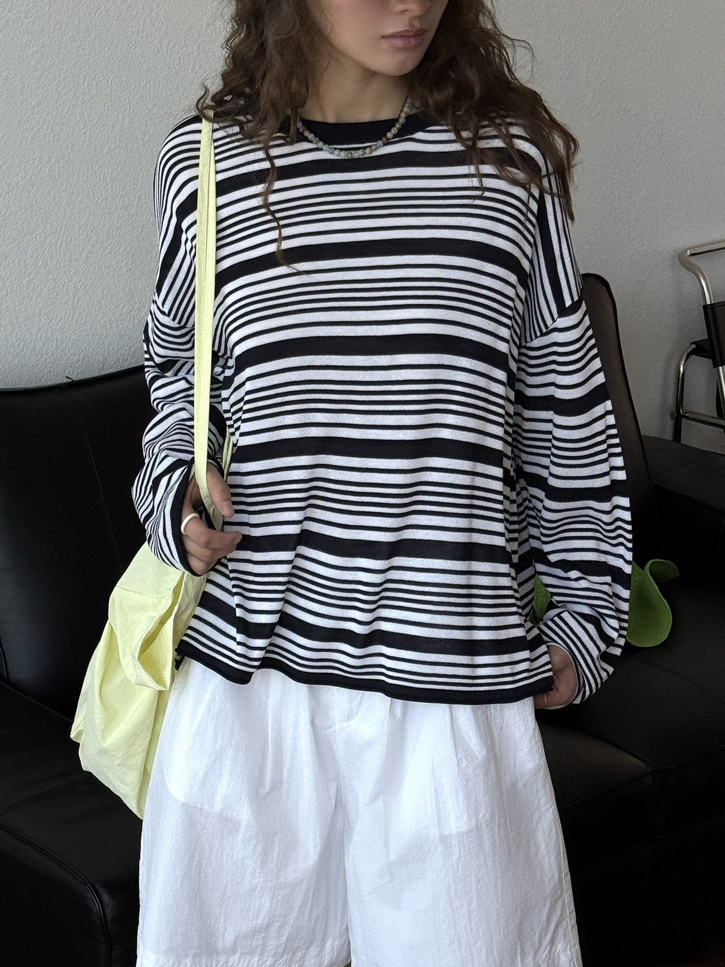 【トップス】初秋新作 韓国風ゆる感シルエット×ランダムボーダー柄 Tシャツ【JZシリーズ】
