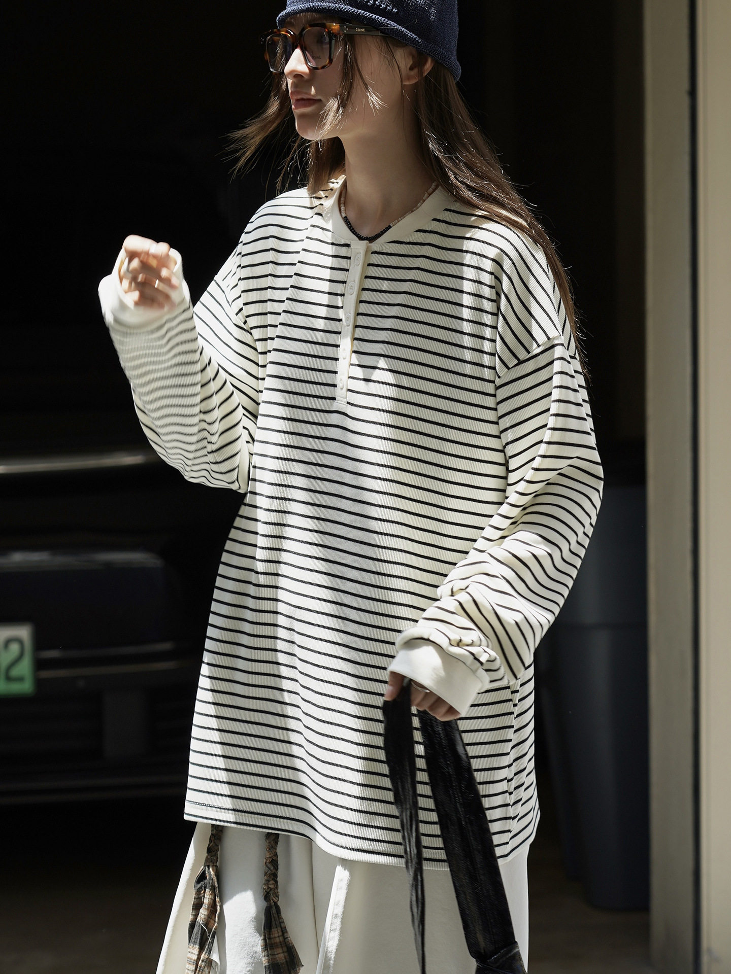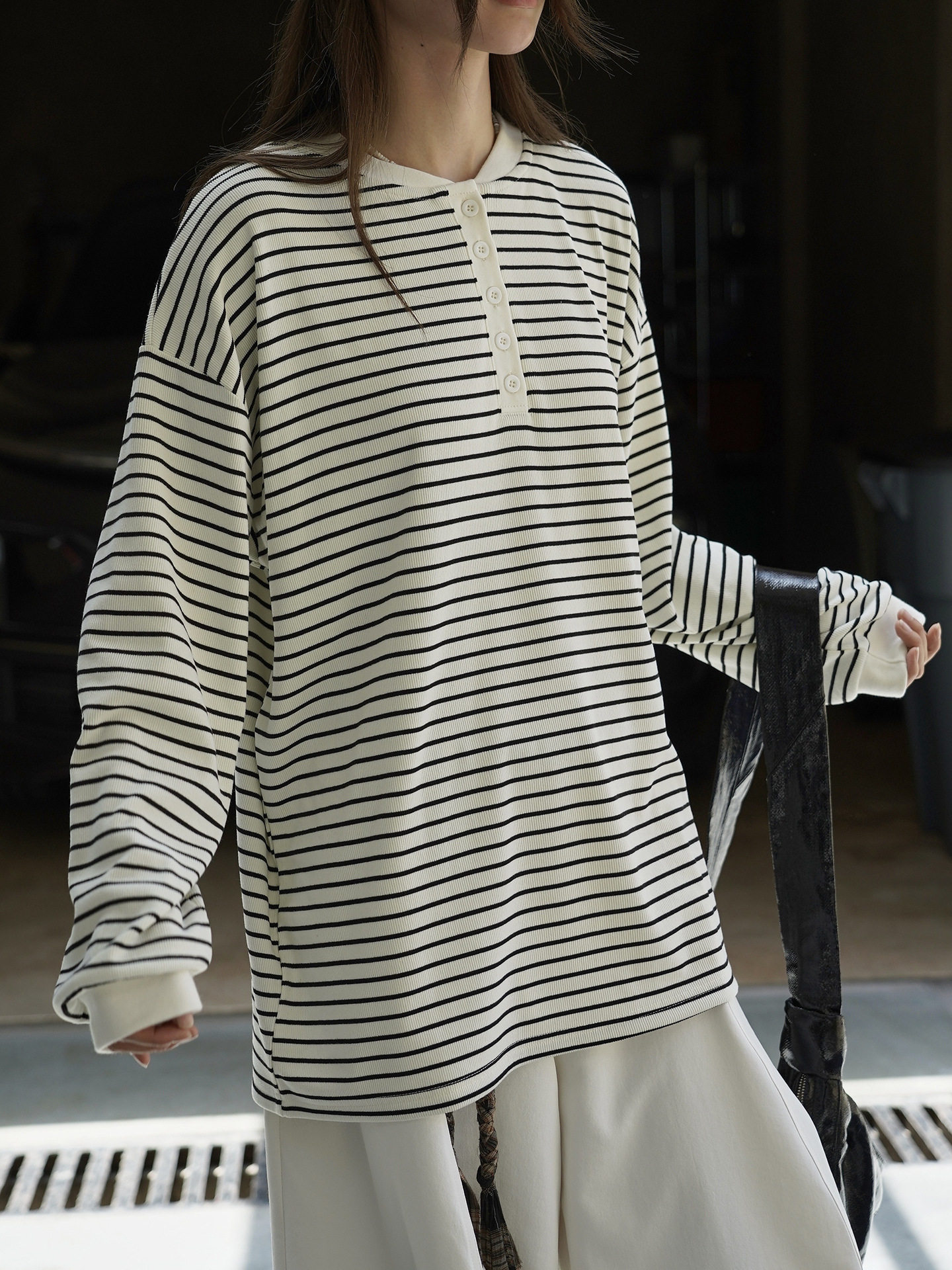 【商品名】【トップス】初秋新作 韓国風ゆる感 Tシャツクルーネック×体型カバーのルーズトップス【JZシリーズ】