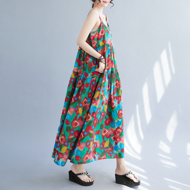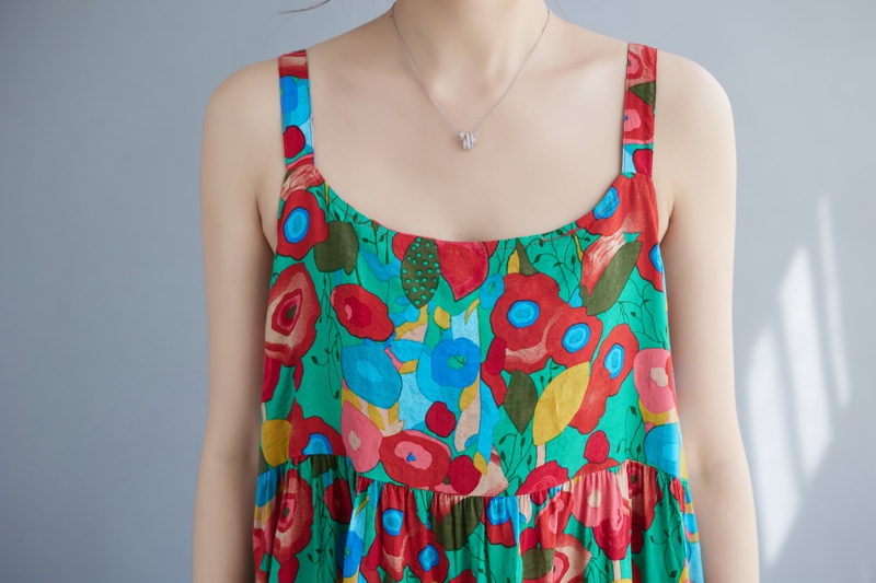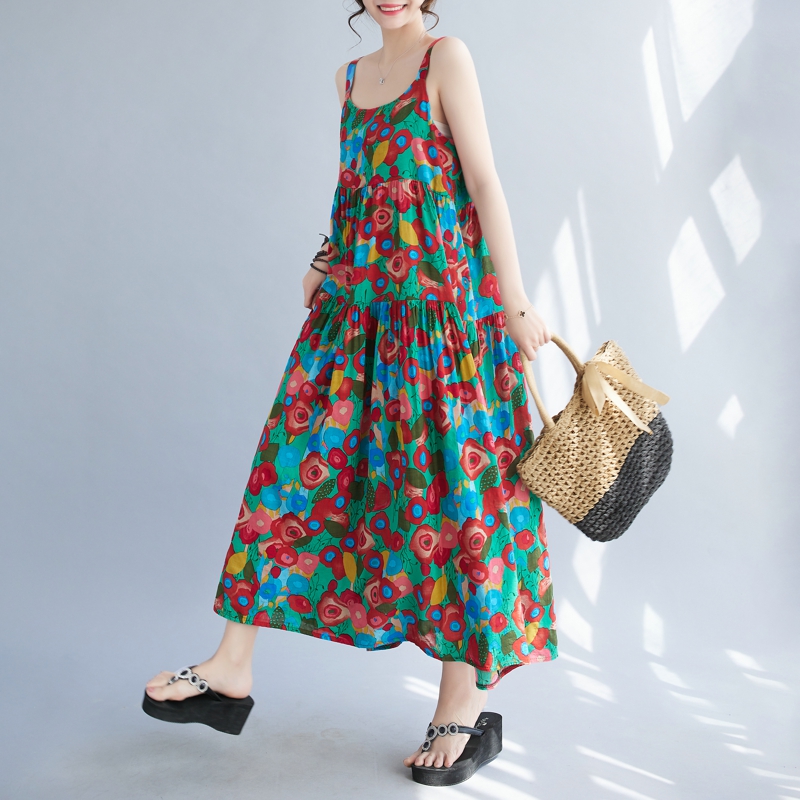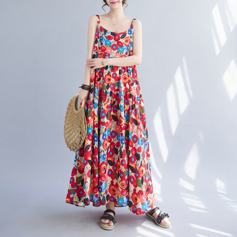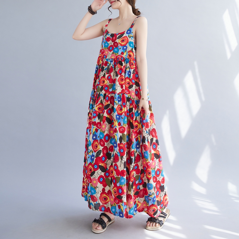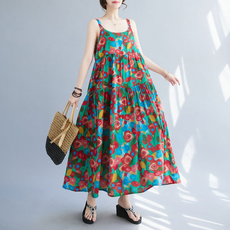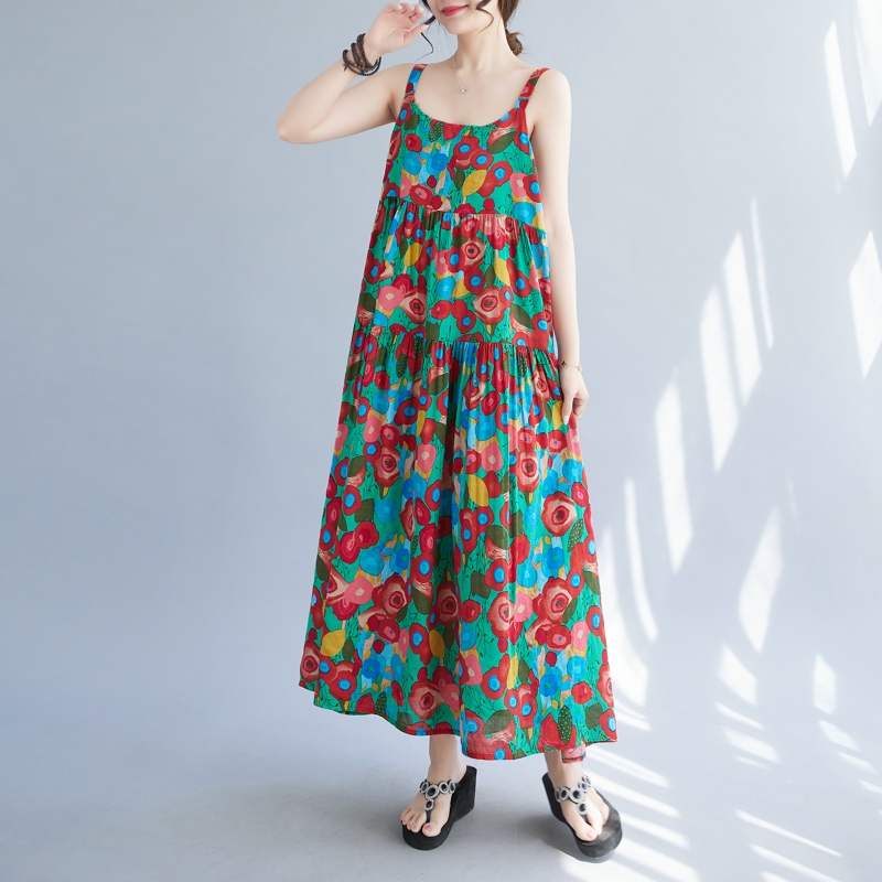 【ワンピース】体型カバー 花柄キャミワンピース|ゆったり大きめサイズ ヴィンテージ風ロングノースリーブワンピース【SHシリーズ】