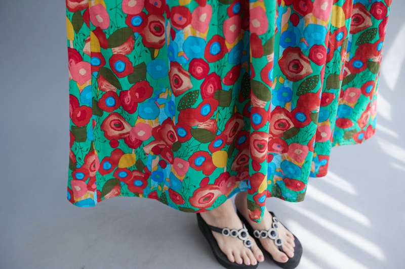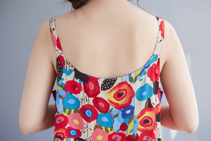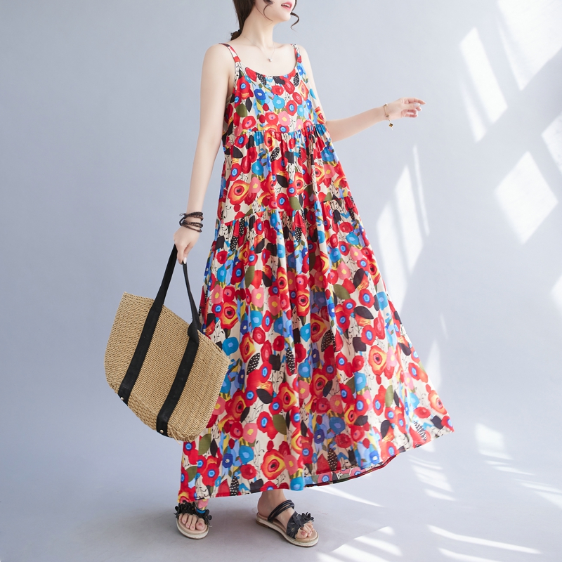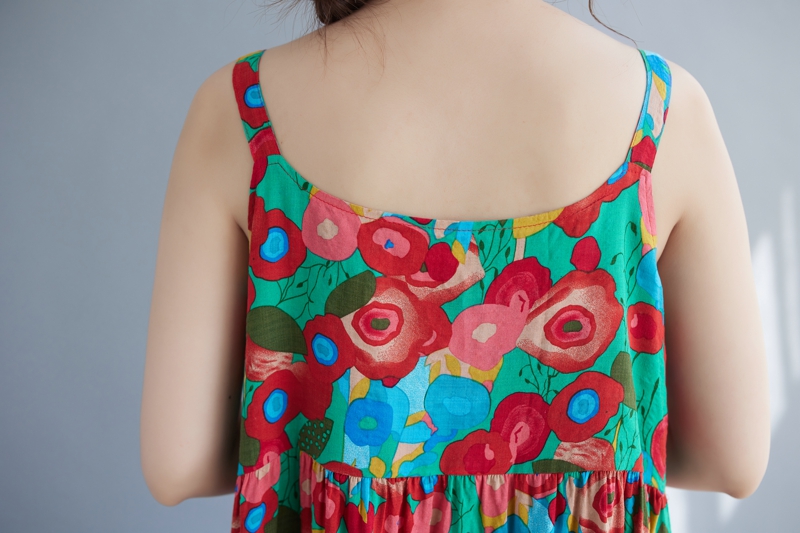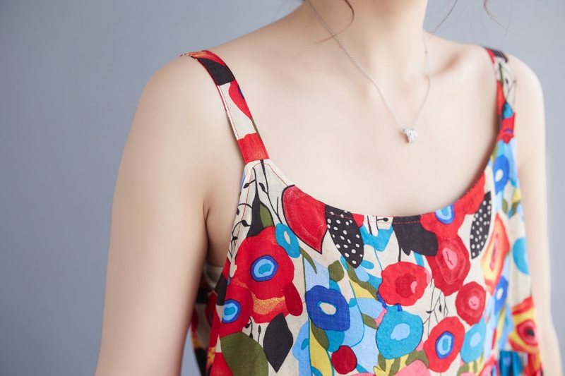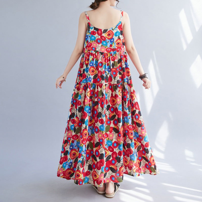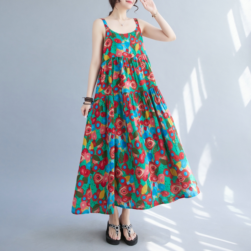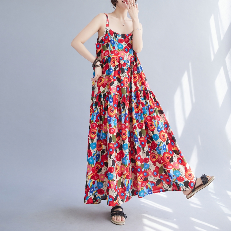 【ワンピース】体型カバー 花柄キャミワンピース|ゆったり大きめサイズ ヴィンテージ風ロングノースリーブワンピース【SHシリーズ】