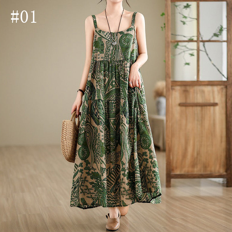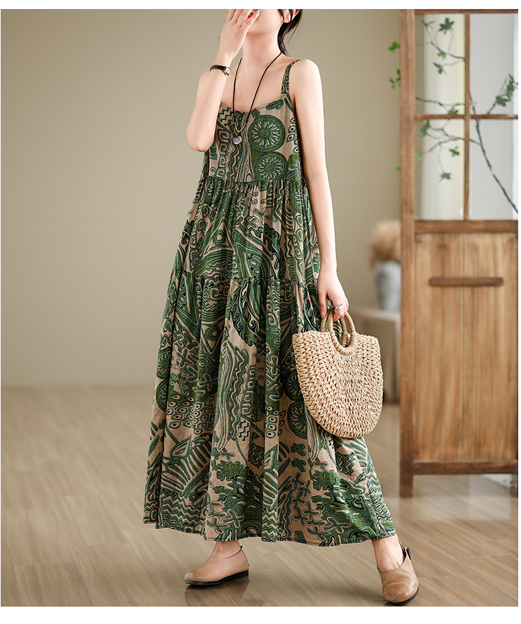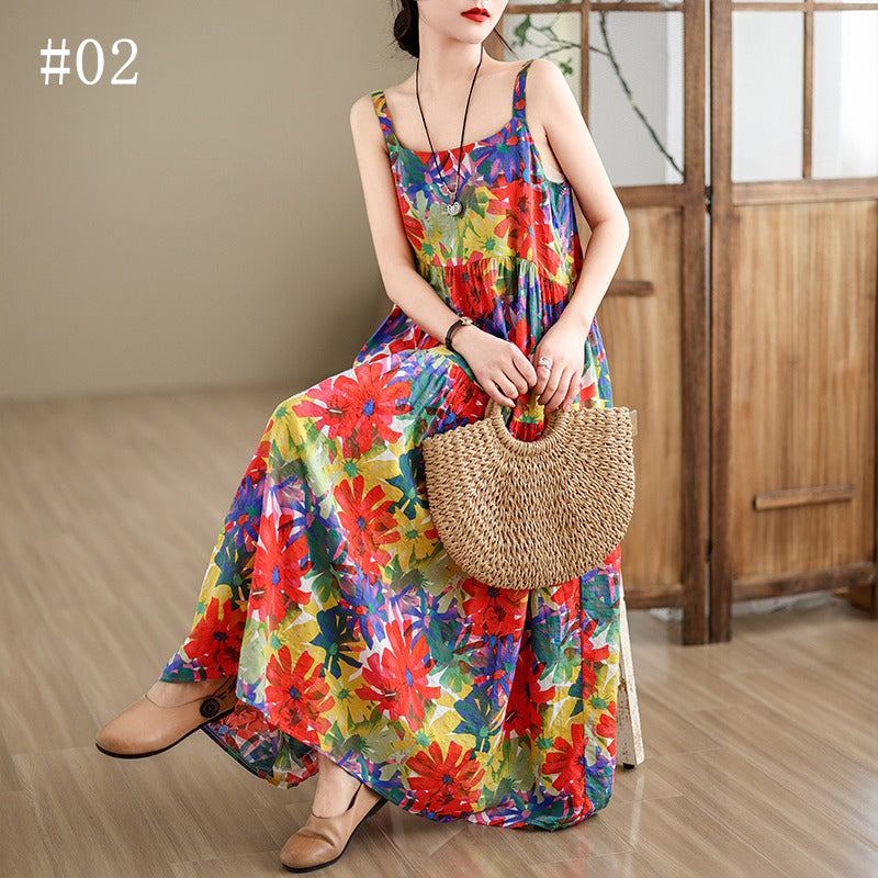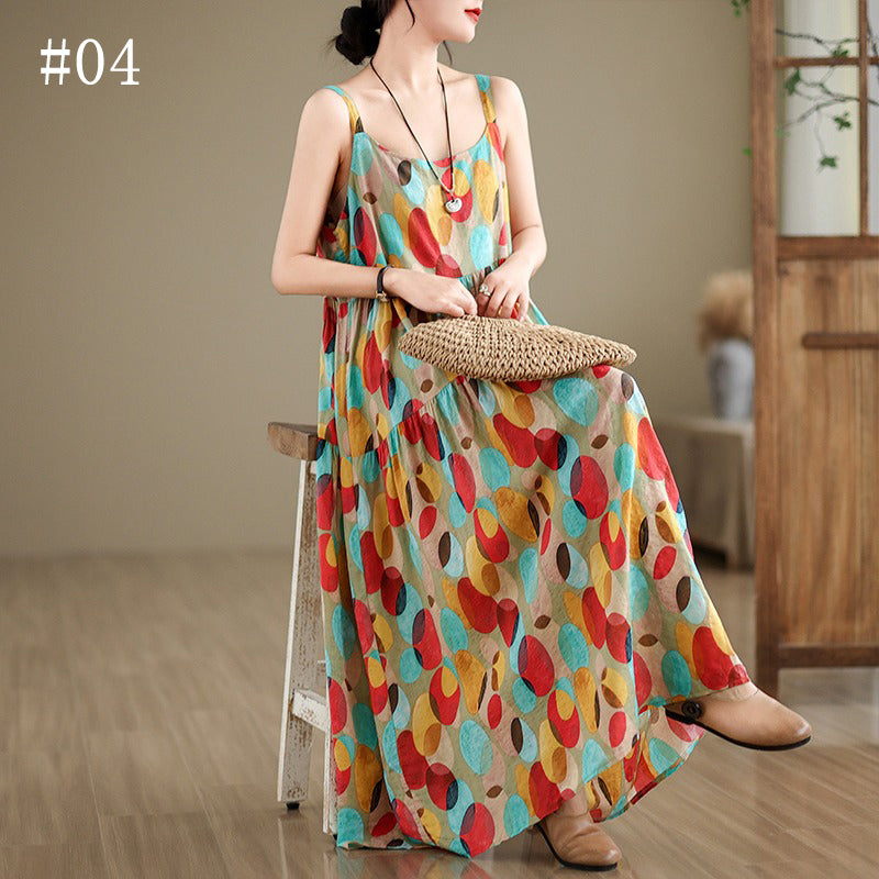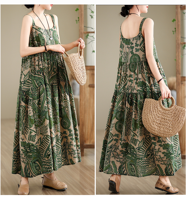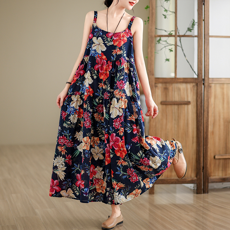 全6柄展開【ワンピース】綿麻素材 花柄キャミロングワンピース|ゆったり大きめサイズ ノースリーブワンピース【SHシリーズ】