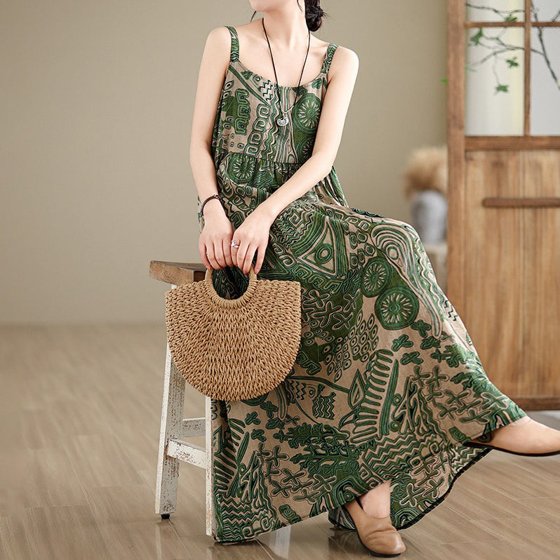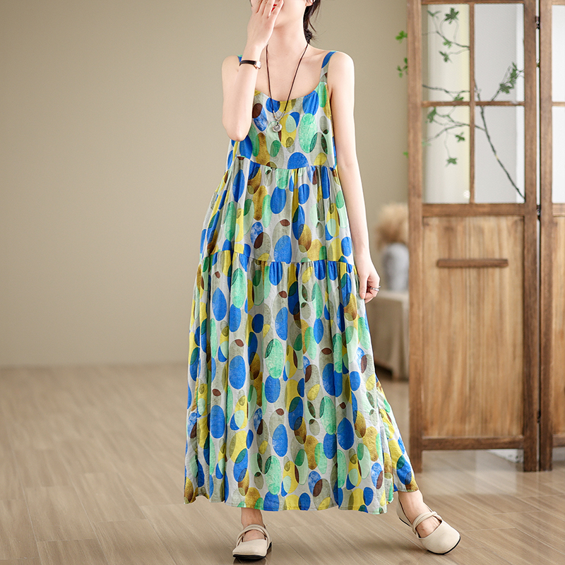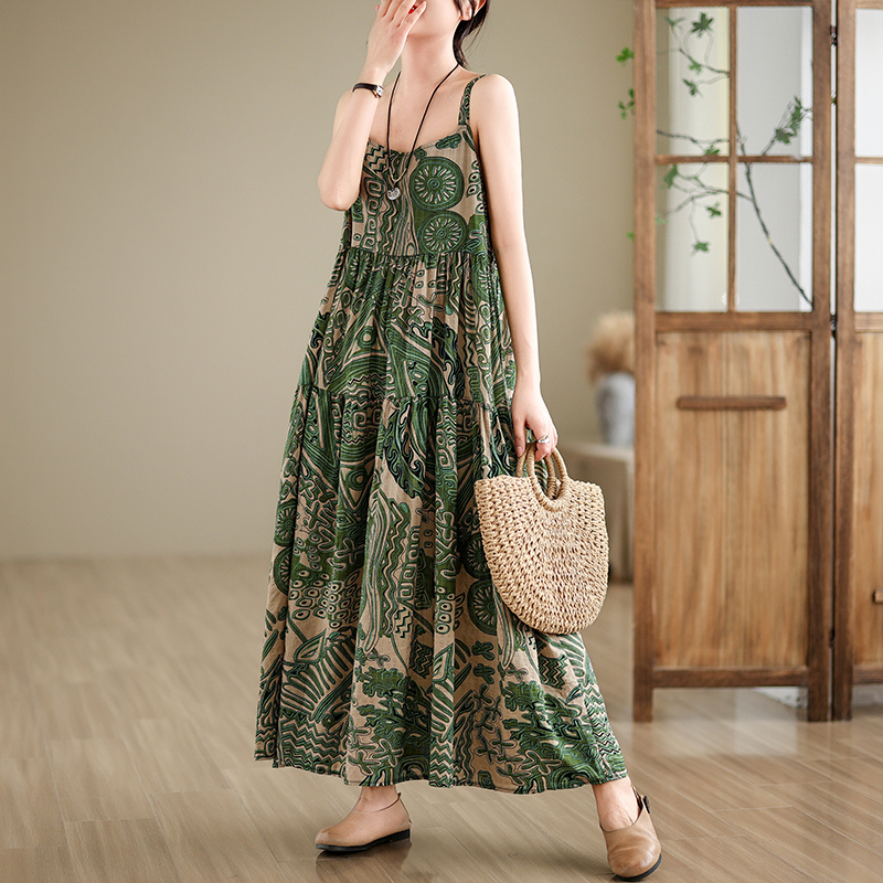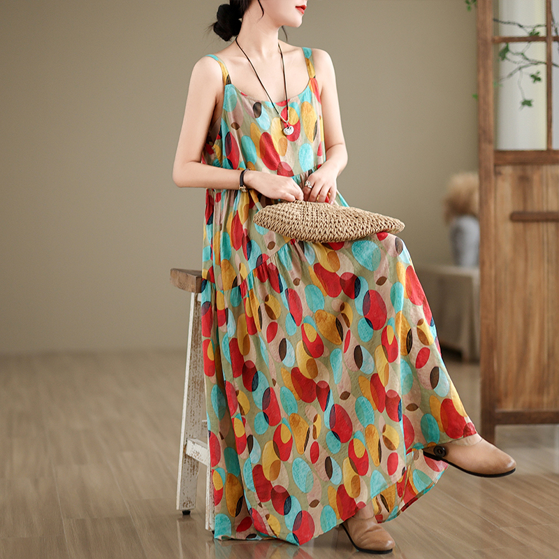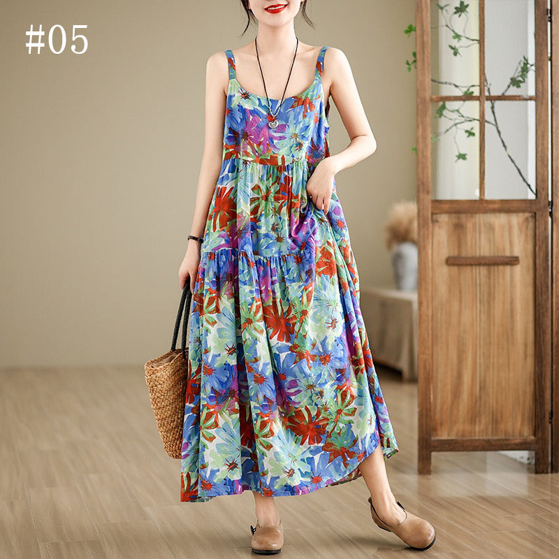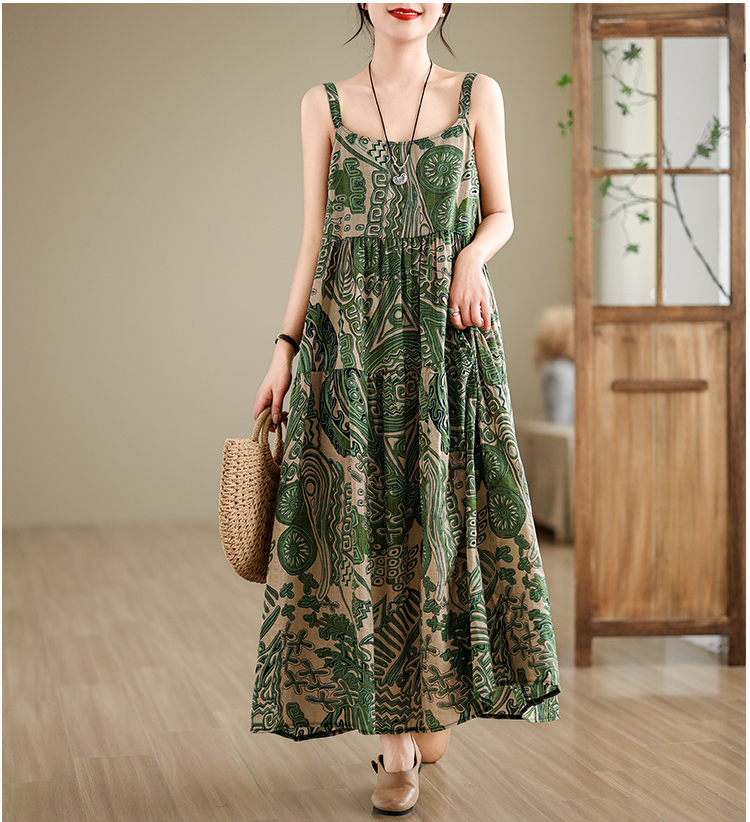 全6柄展開【ワンピース】綿麻素材 花柄キャミロングワンピース|ゆったり大きめサイズ ノースリーブワンピース【SHシリーズ】