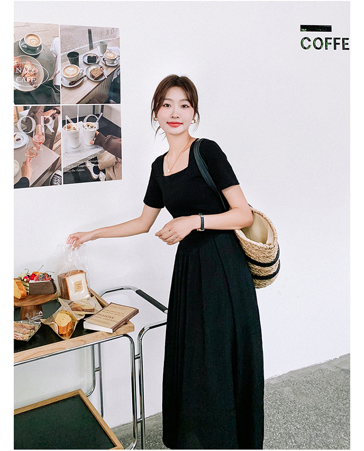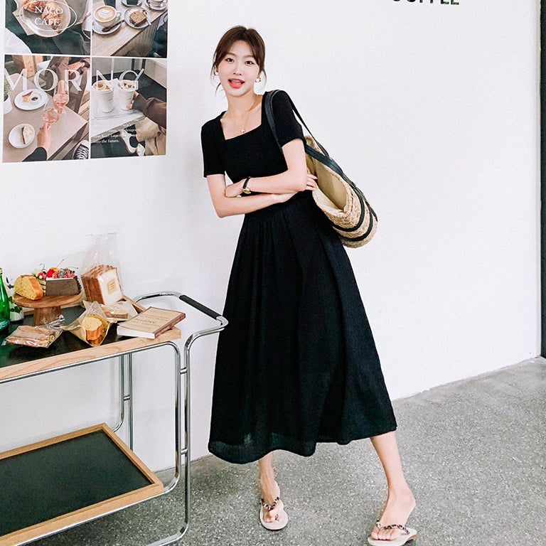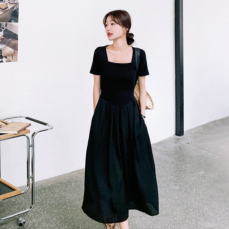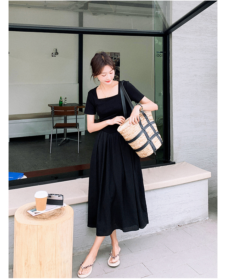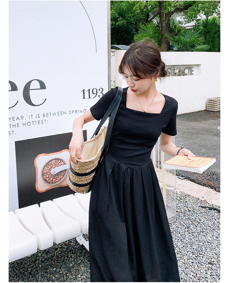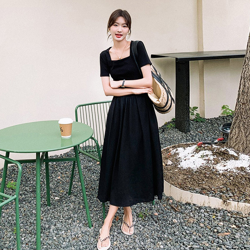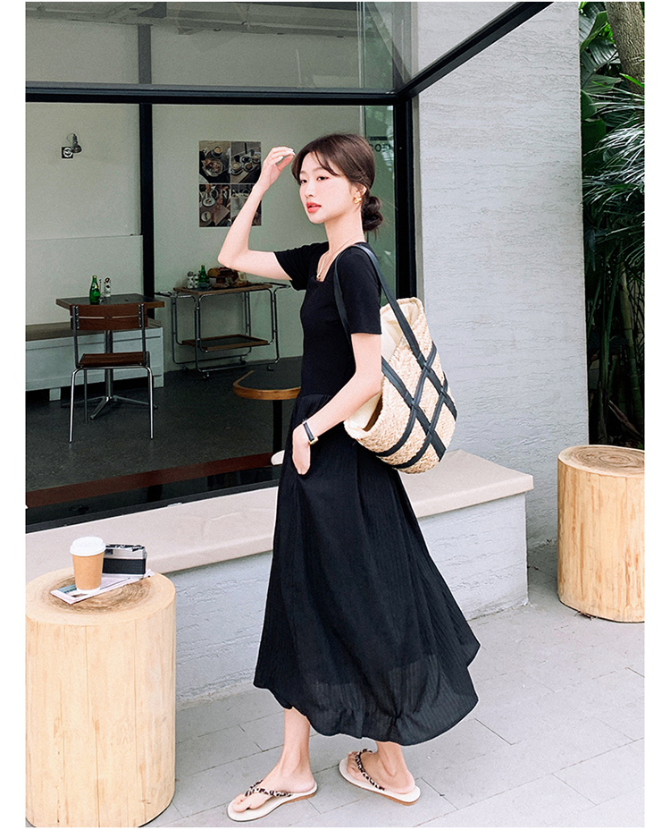 【ワンピース】こなれ感満点 半袖ワンピース スリム見え◎大人上品な黒ワンピ【JZシリーズ】