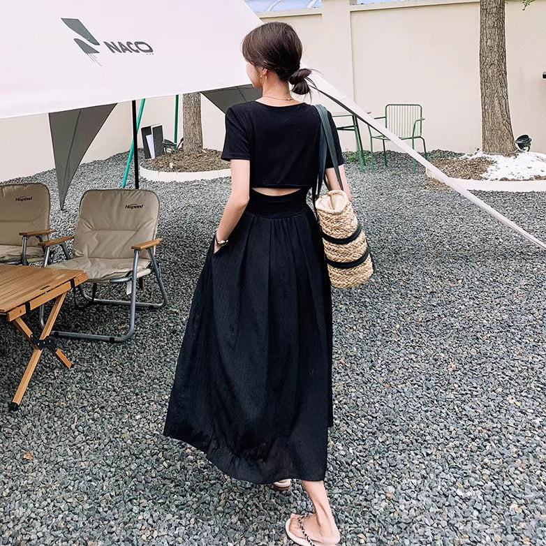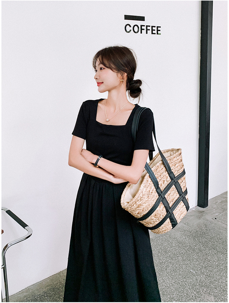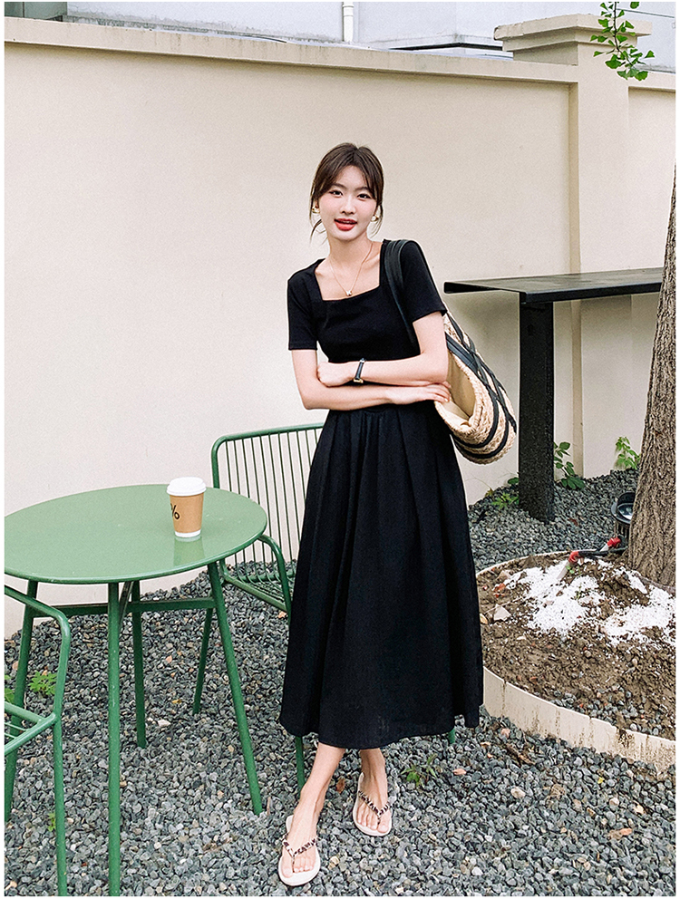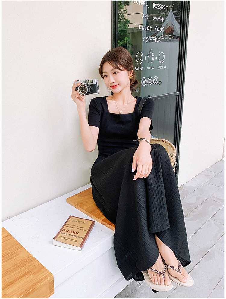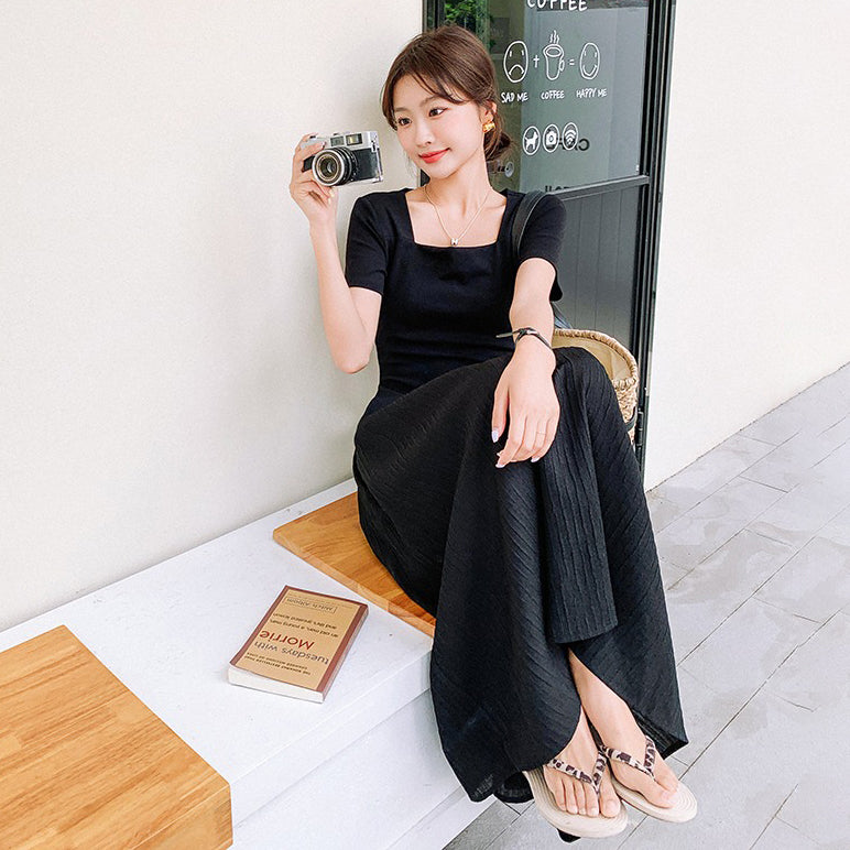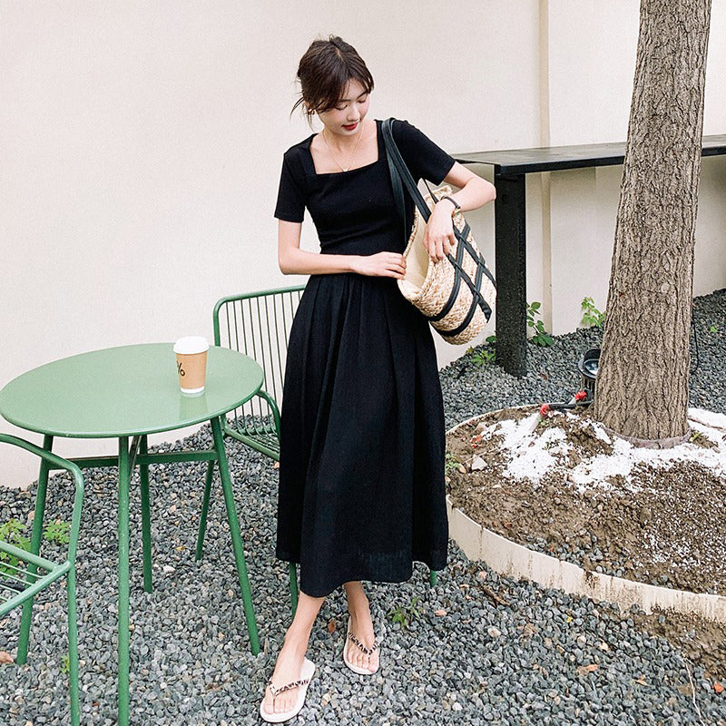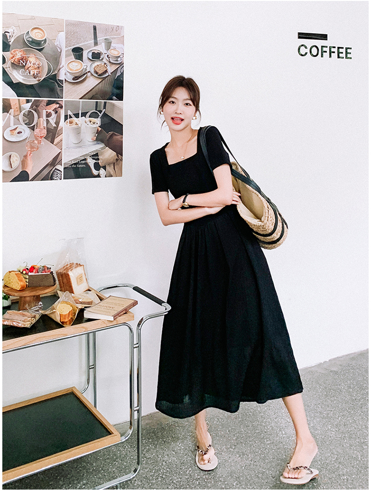 【ワンピース】こなれ感満点 半袖ワンピース スリム見え◎大人上品な黒ワンピ【JZシリーズ】