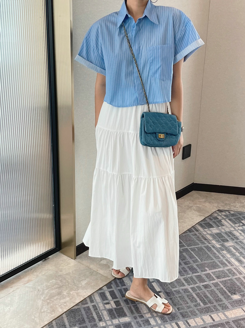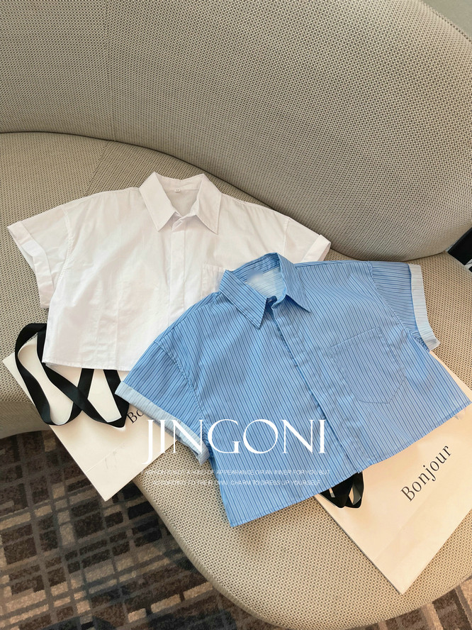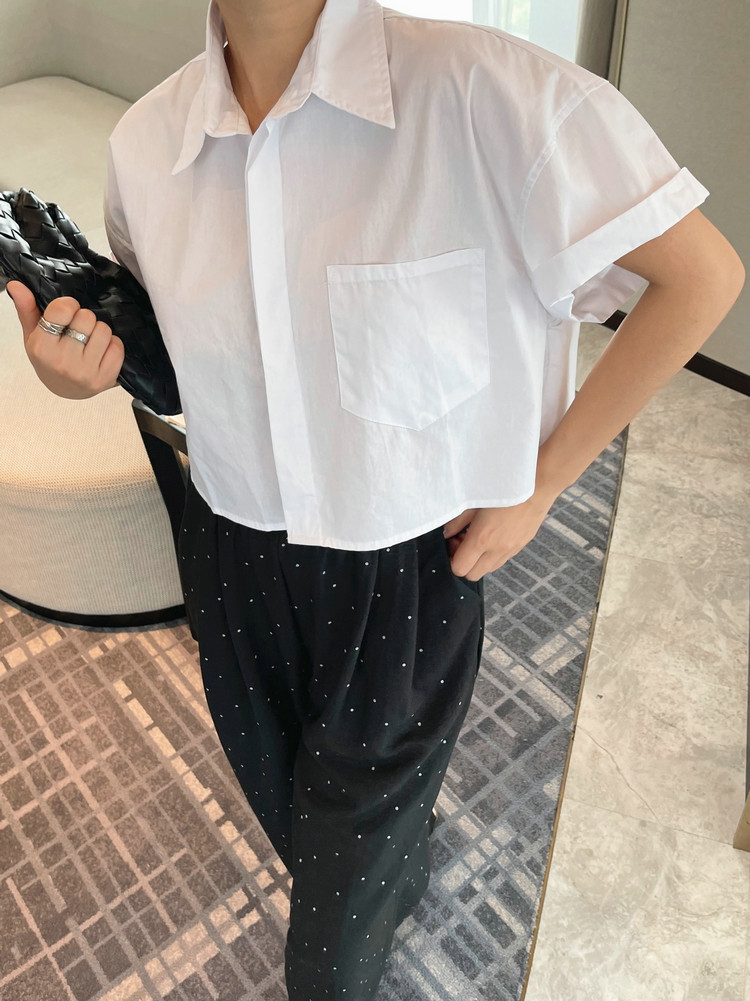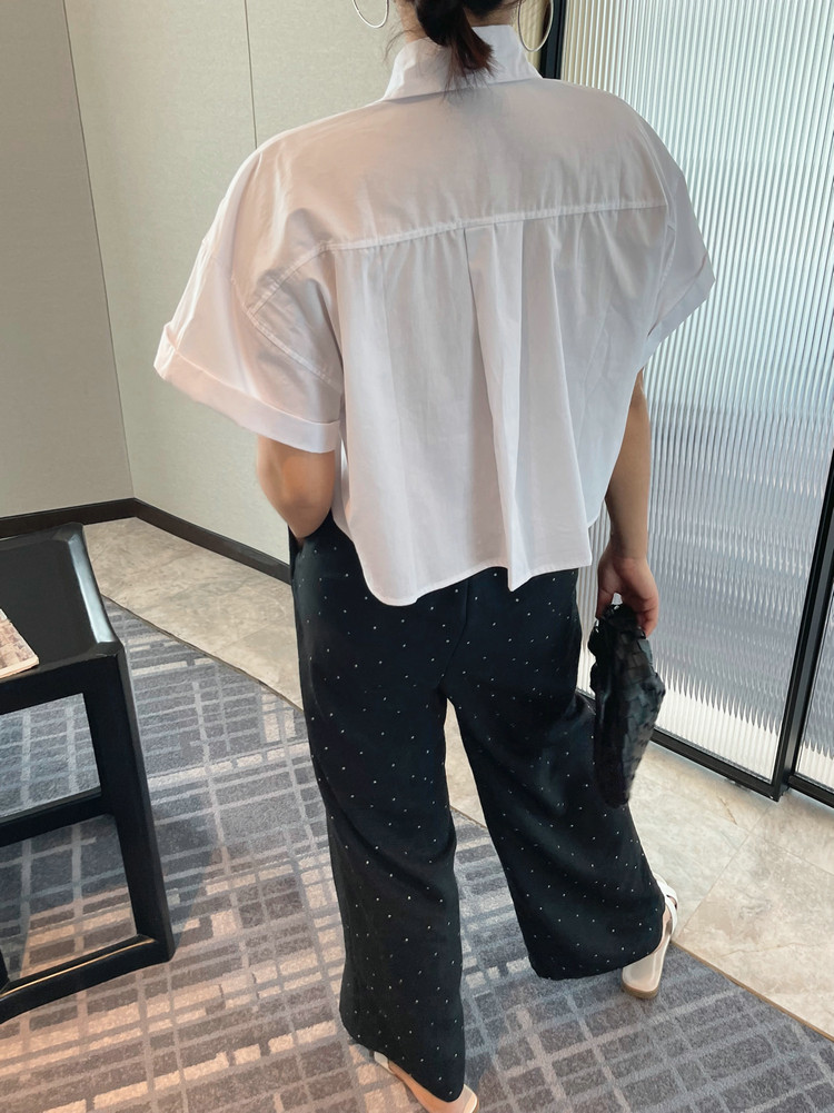 【トップス】ロールアップスリーブ半袖シャツ 夏 ゆったり ファッション カジュアル スリム見え ショート丈 フレンチシャツ【JZシリーズ】
