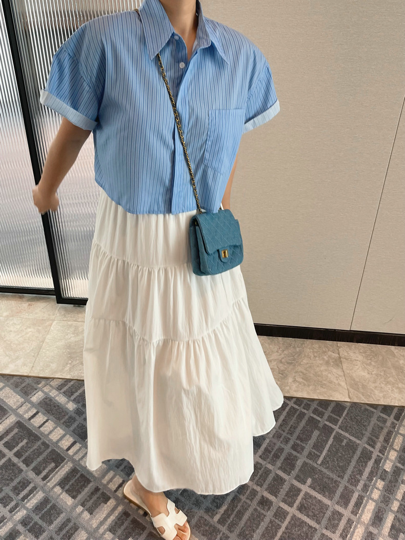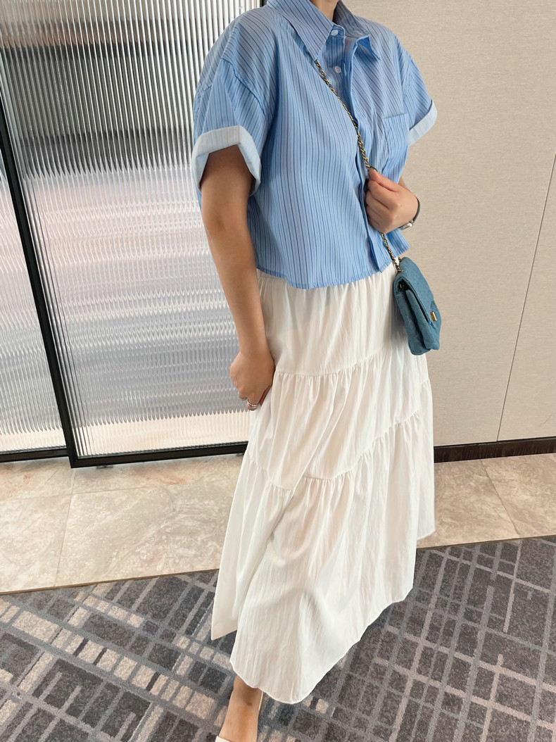 【商品名】【トップス】ロールアップスリーブ半袖シャツ 夏 ゆったり ファッション カジュアル スリム見え ショート丈 フレンチシャツ【JZシリーズ】