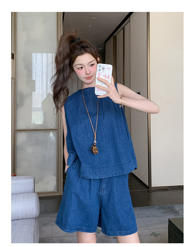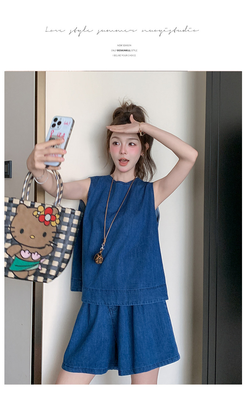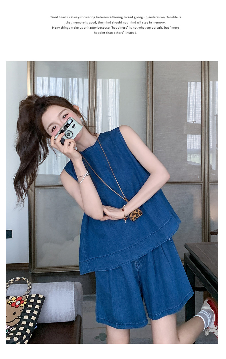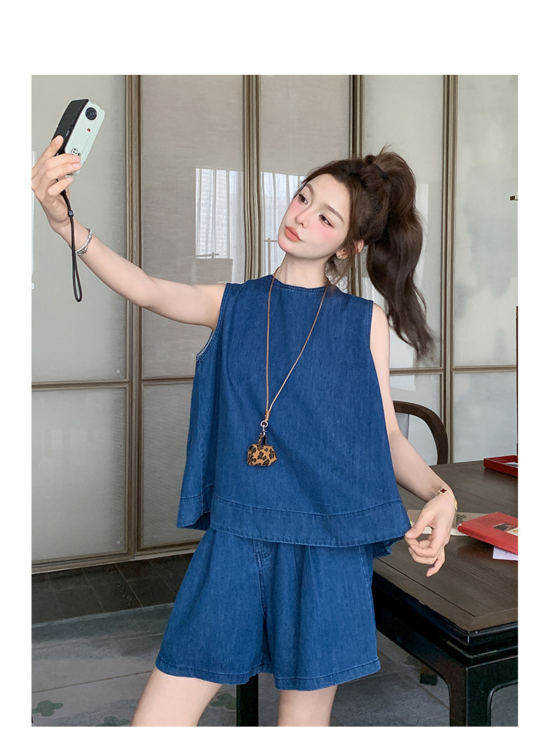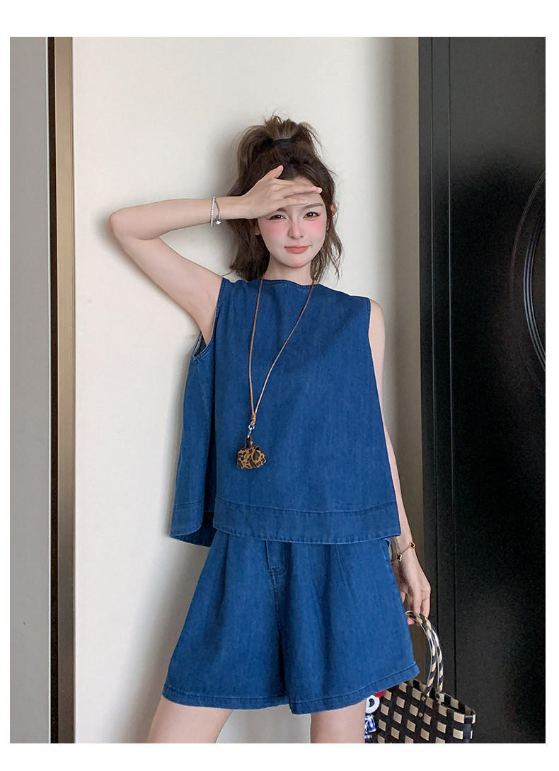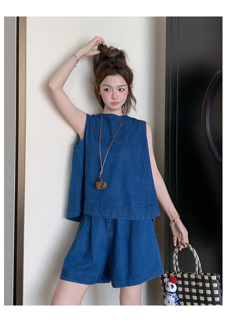 2点セット!【セットアップ】テンセルデニム背中開きトップス+ショートパンツ 上下セット レディース 夏 韓国風 OOTD【JZシリーズ】