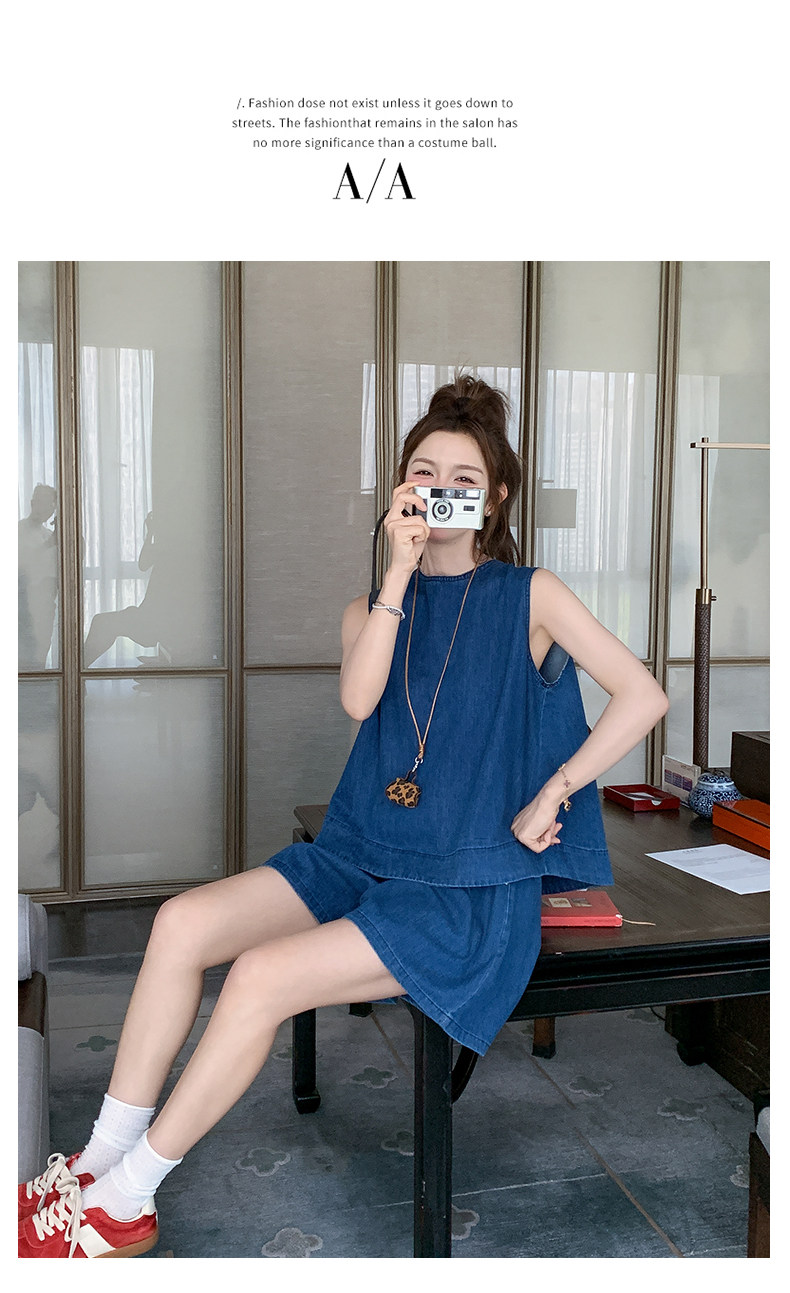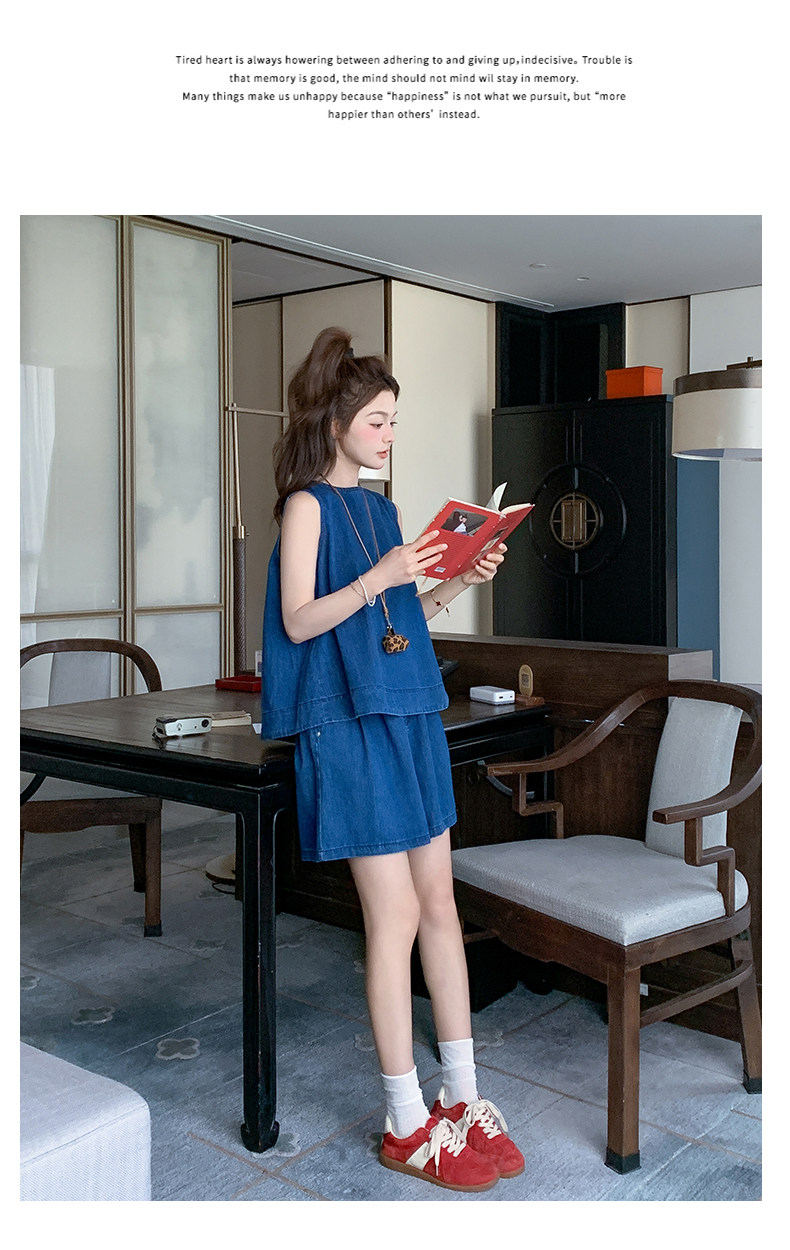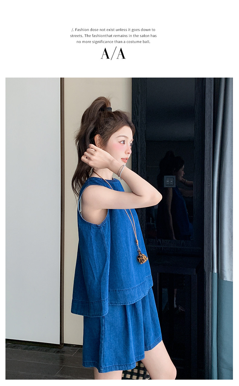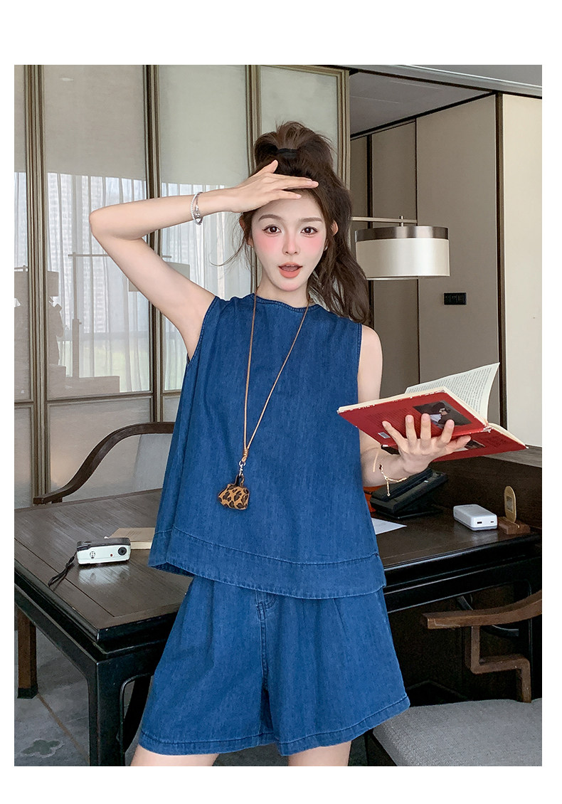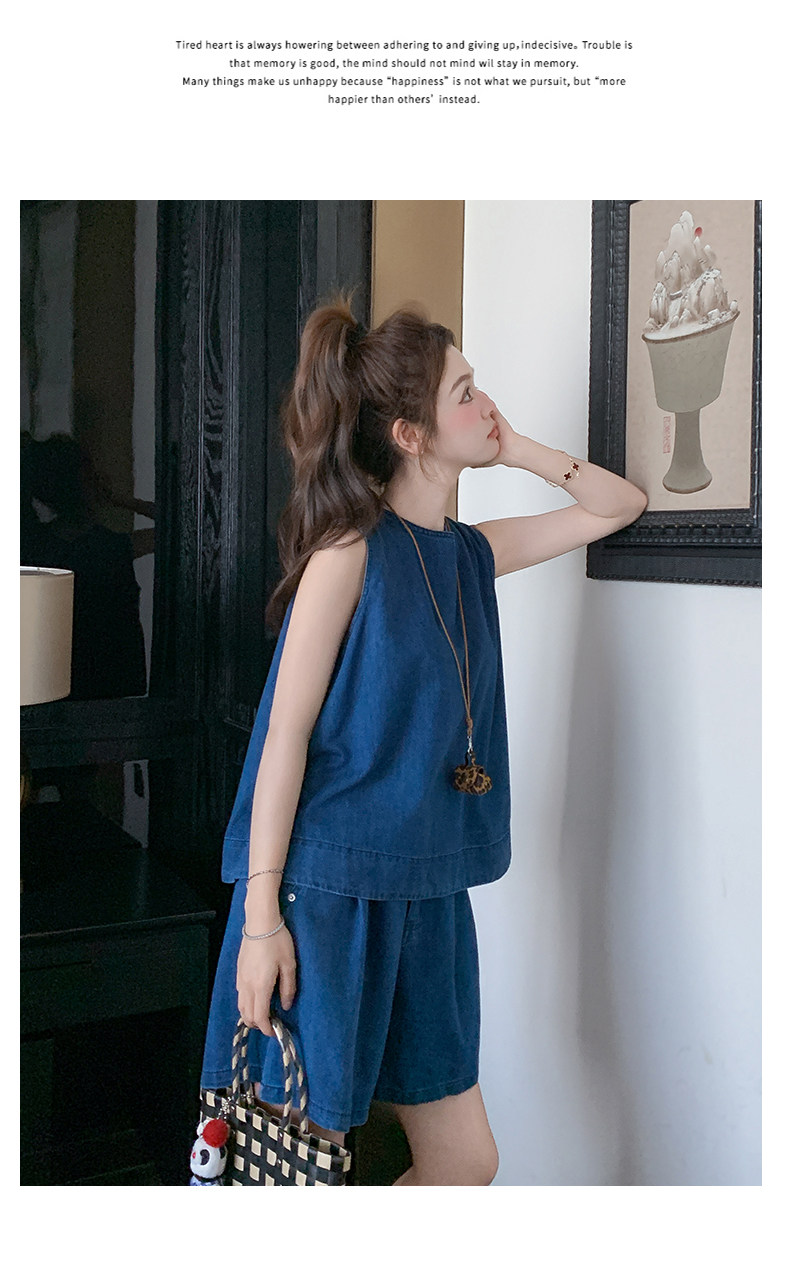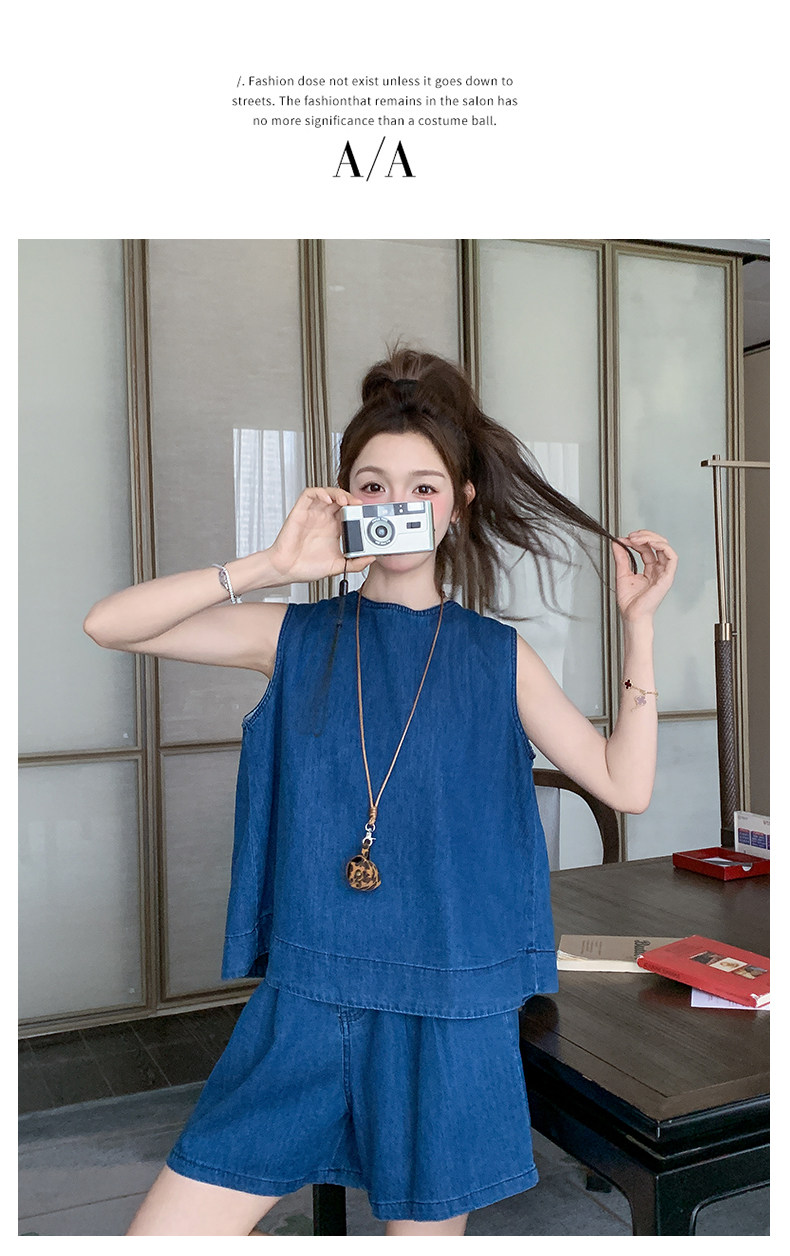 2点セット!【セットアップ】テンセルデニム背中開きトップス+ショートパンツ 上下セット レディース 夏 韓国風 OOTD【JZシリーズ】