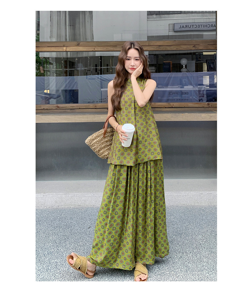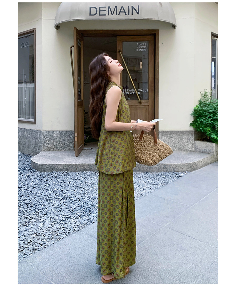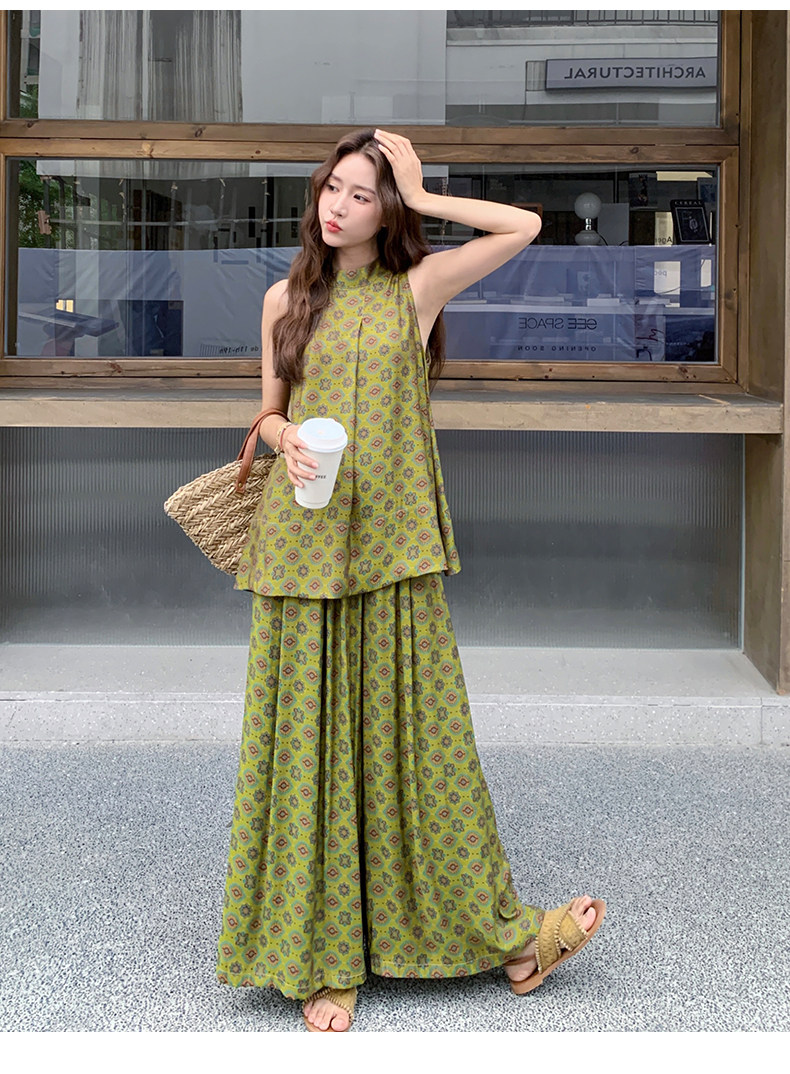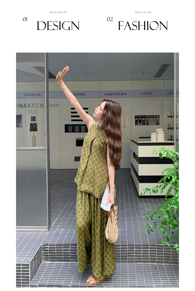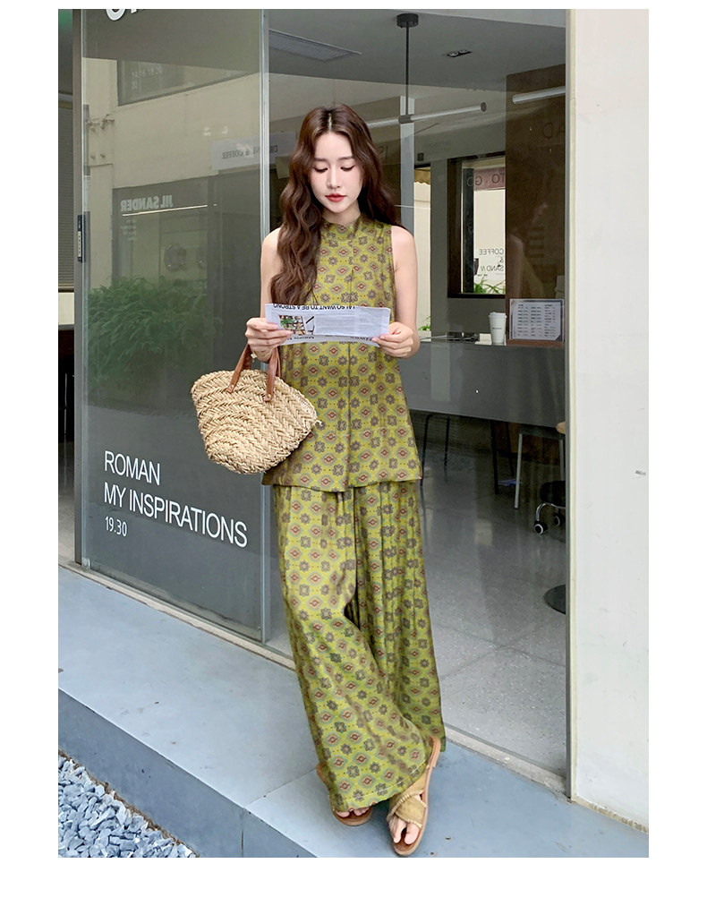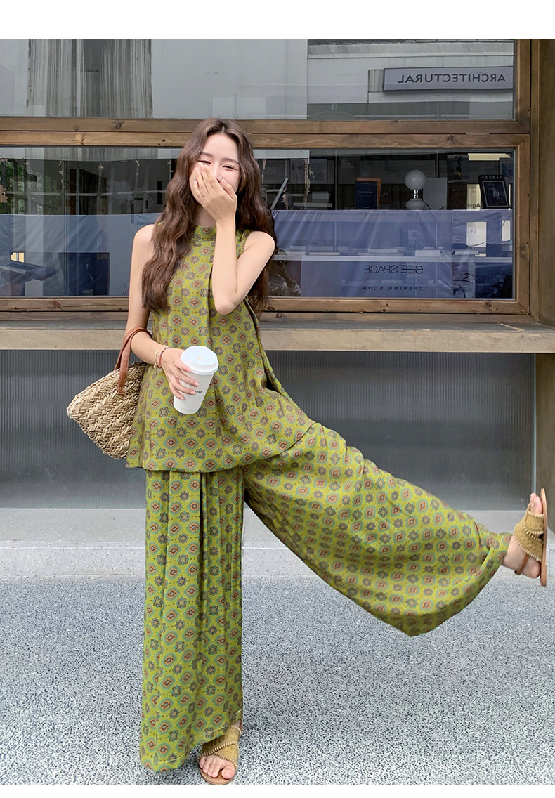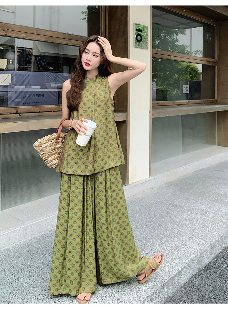 2点セット!【セットアップ】小花柄ノースリーブトップス+ワイドパンツ 上下セット レディース 夏用 おしゃれ映えコーデ【SHシリーズ】