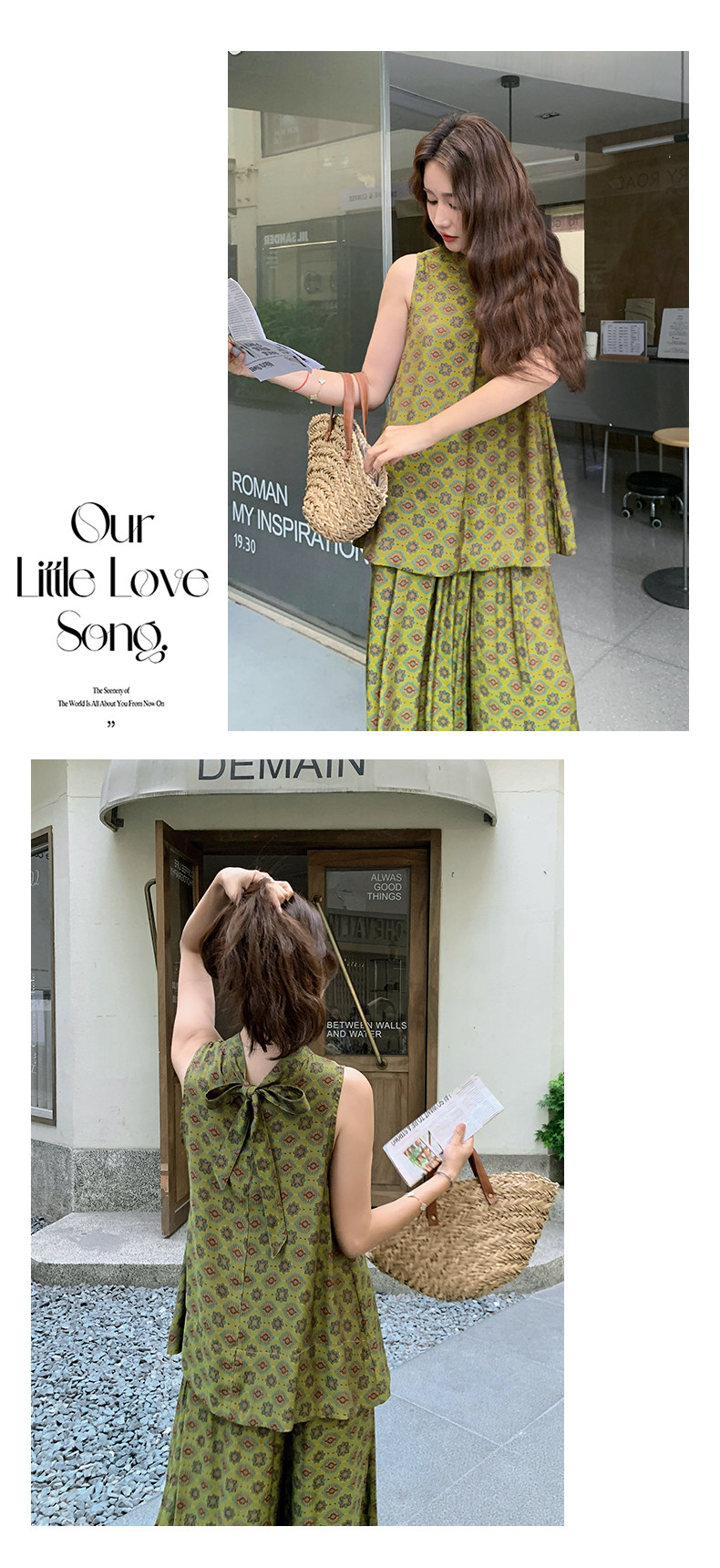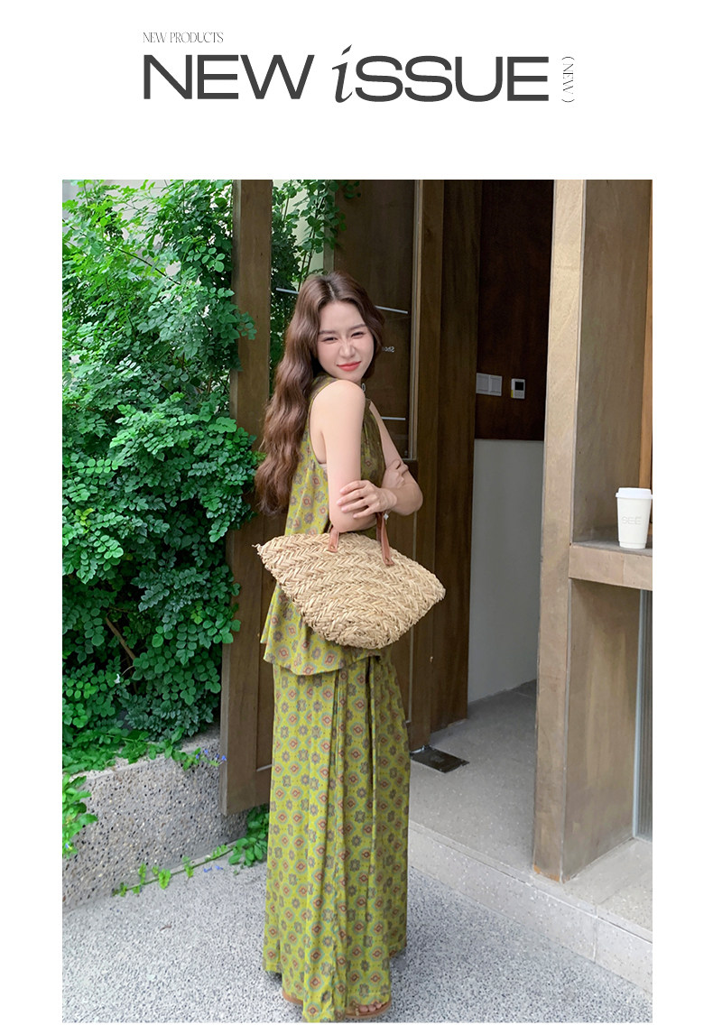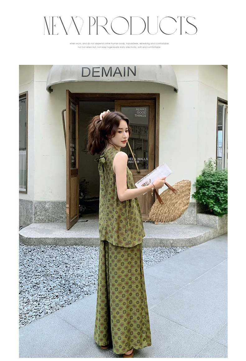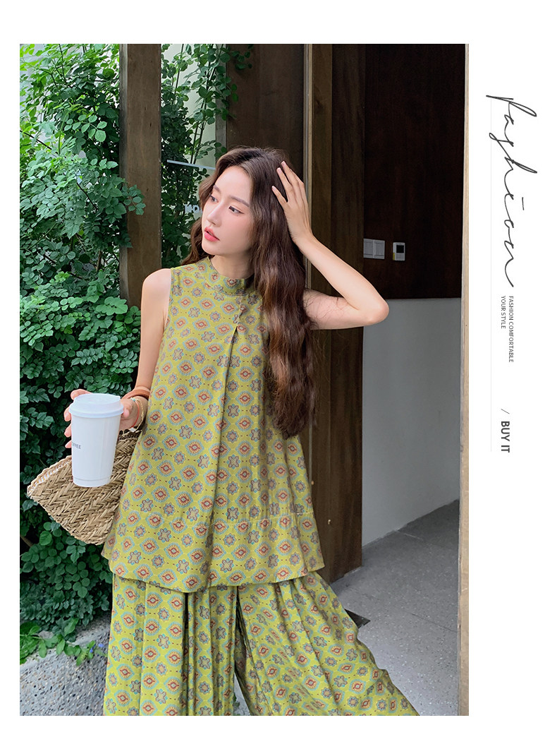 【商品名】2点セット!【セットアップ】小花柄ノースリーブトップス+ワイドパンツ 上下セット レディース 夏用 おしゃれ映えコーデ【SHシリーズ】