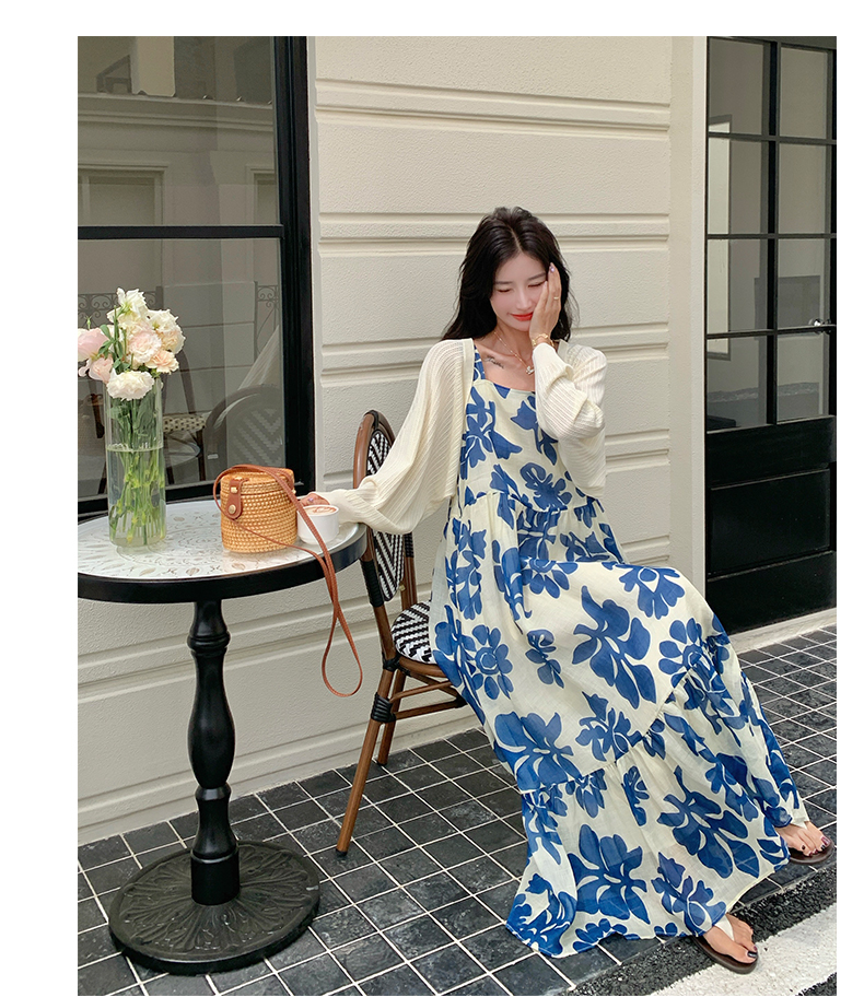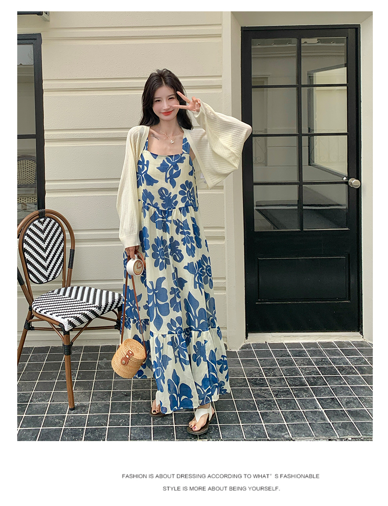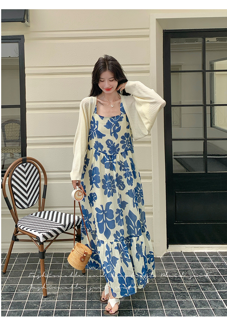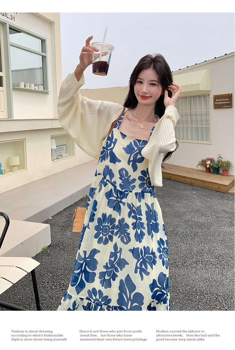2点セット!【セットアップ】甘かわブルー花柄 ノースリーブワンピース+UVカーデ セット レディース 夏 若見えスタイル【SHシリーズ】