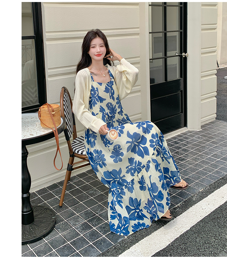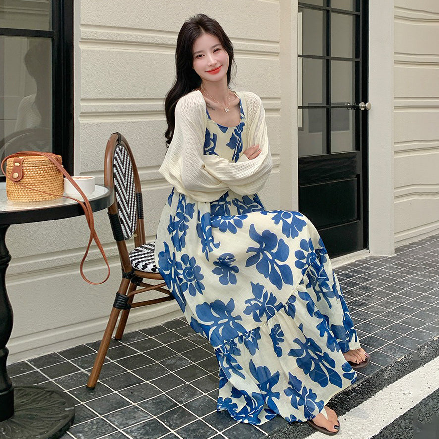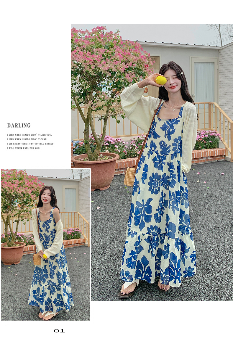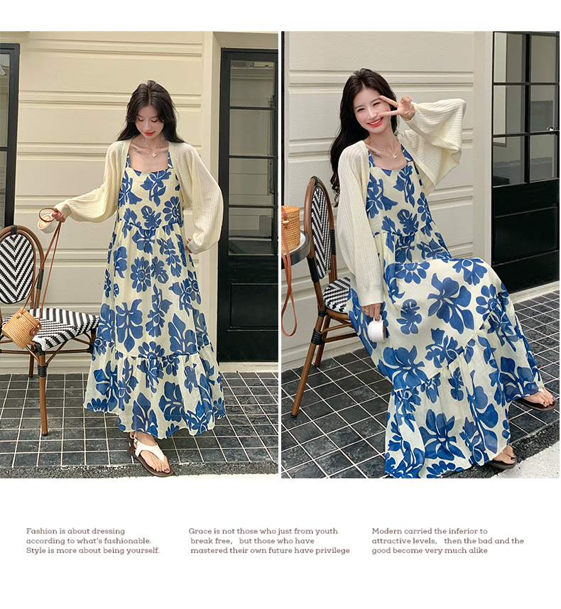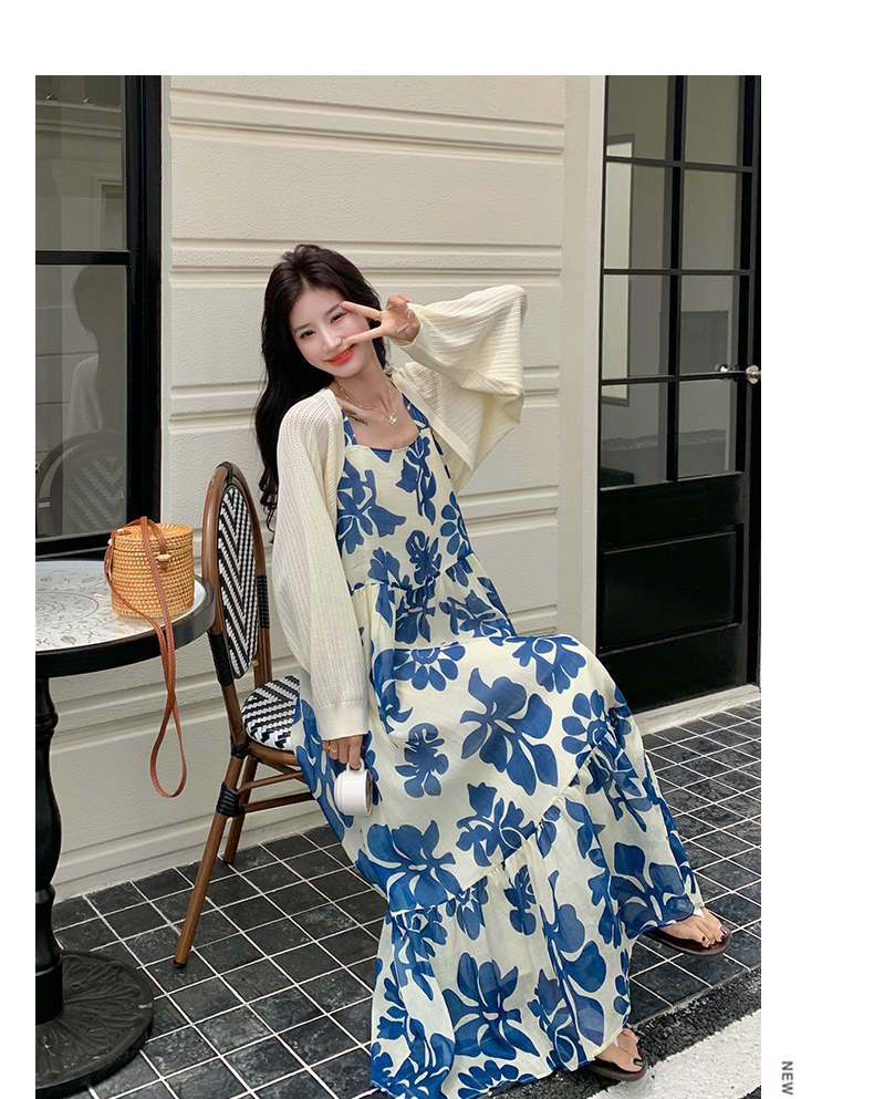 2点セット!【セットアップ】甘かわブルー花柄 ノースリーブワンピース+UVカーデ セット レディース 夏 若見えスタイル【SHシリーズ】