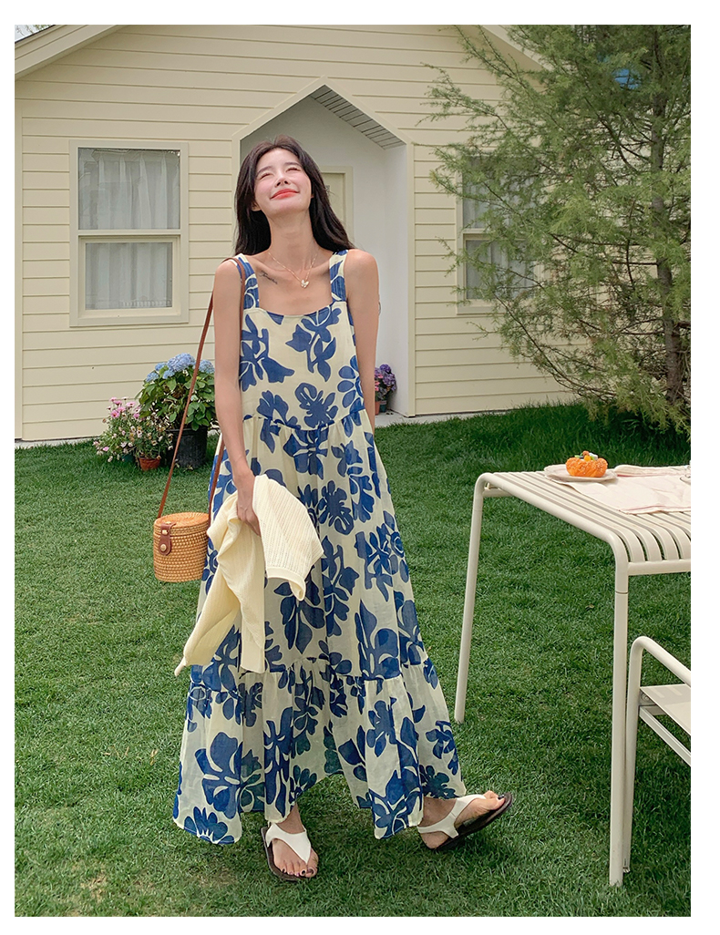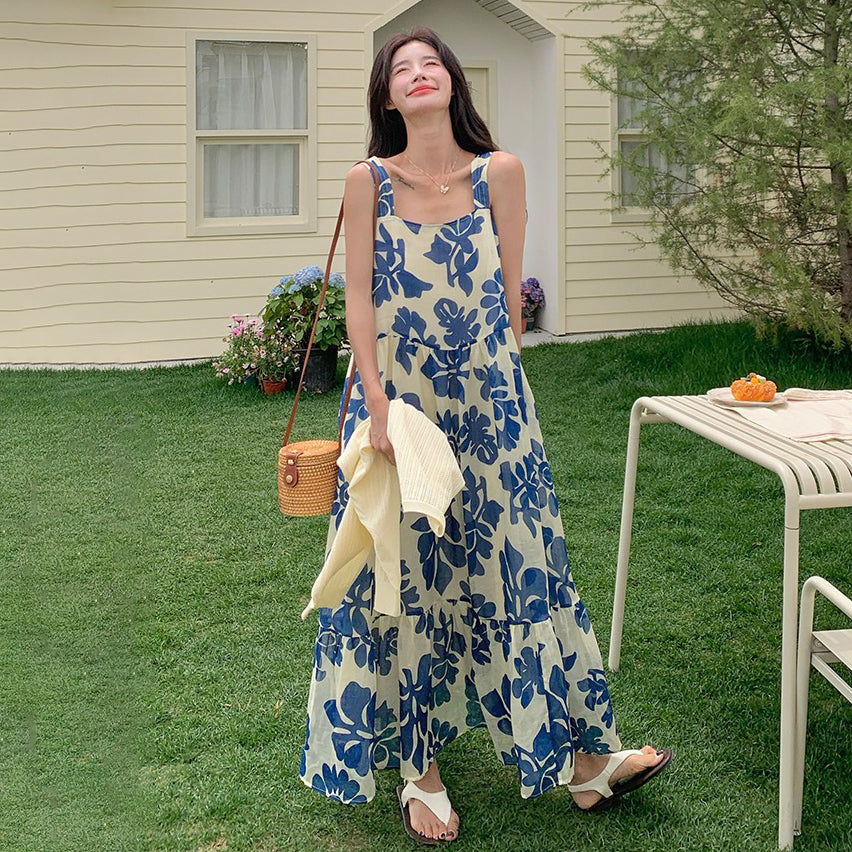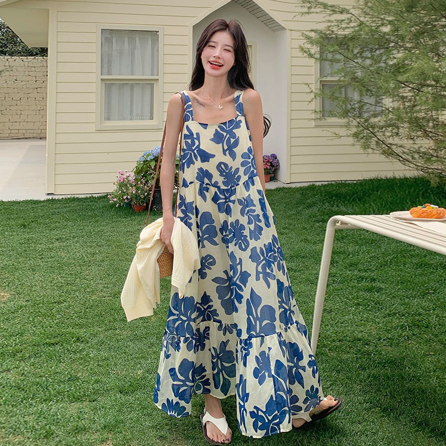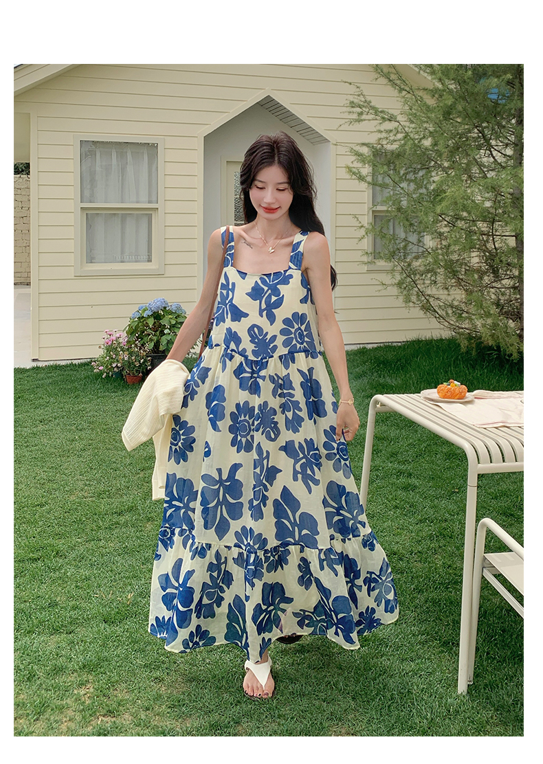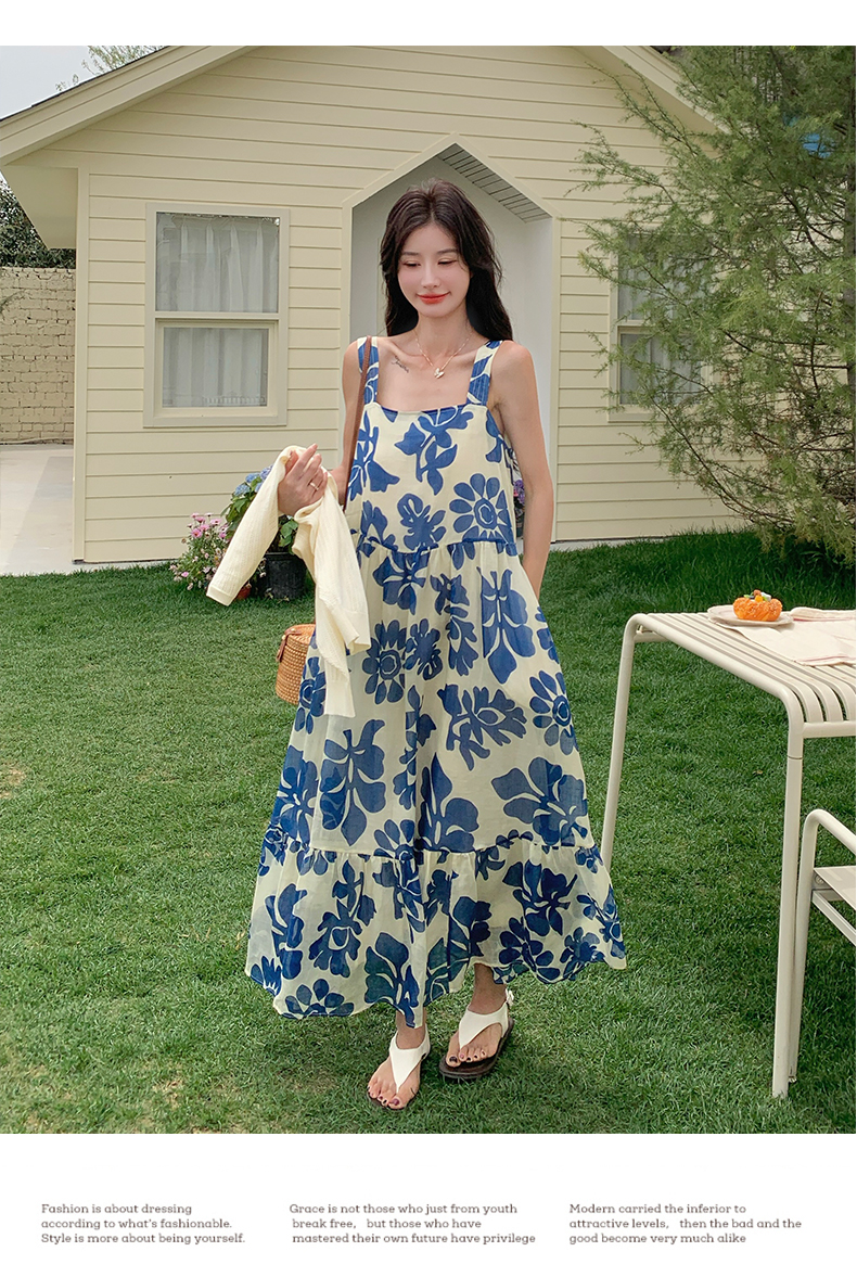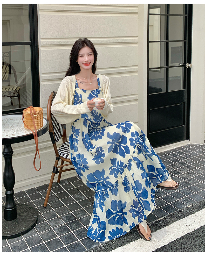 【商品名】【セットアップ】甘かわブルー花柄 ノースリーブワンピース+UVカーデ セット レディース 夏 若見えスタイル【SHシリーズ】