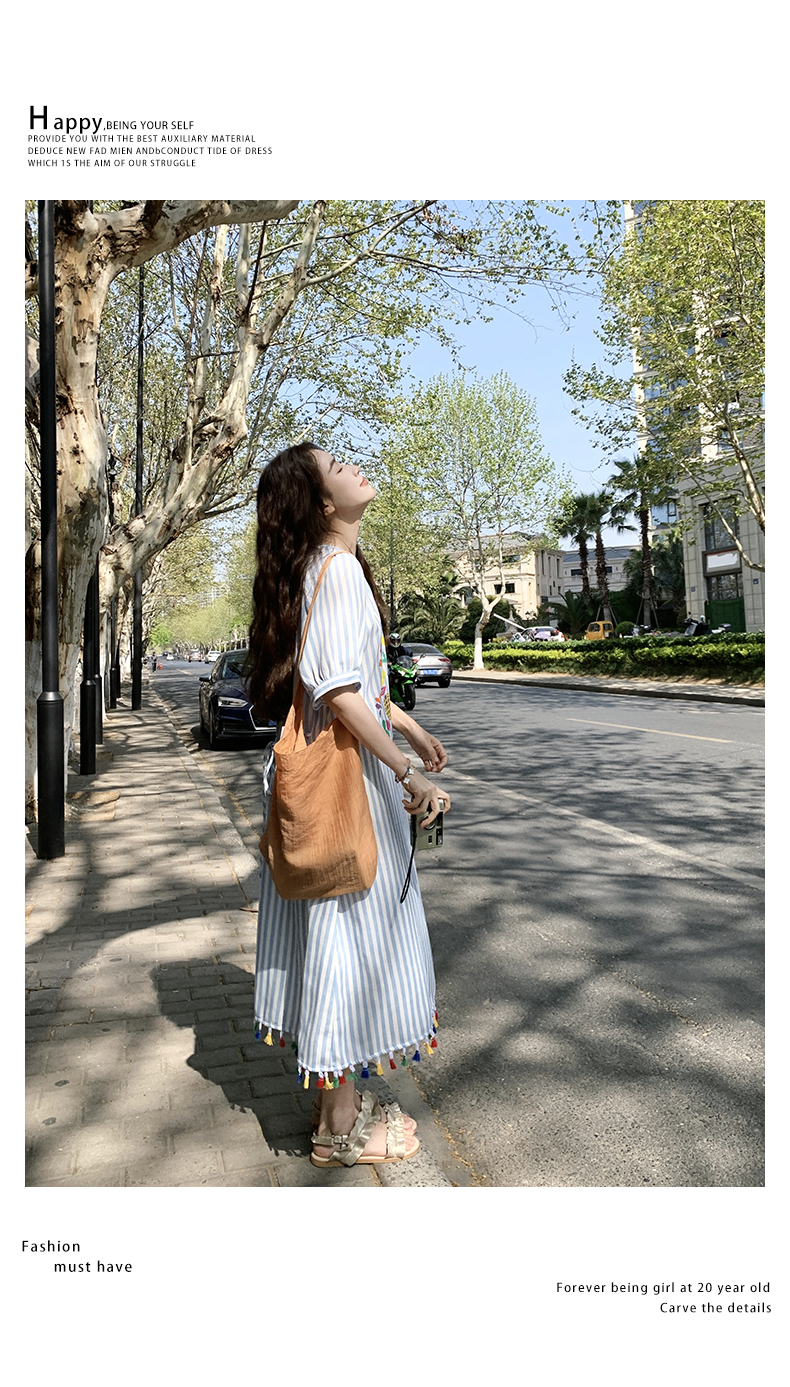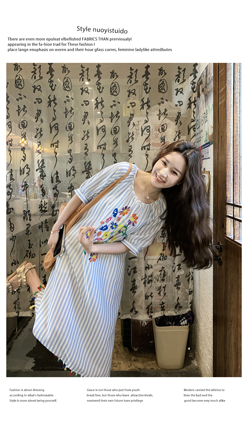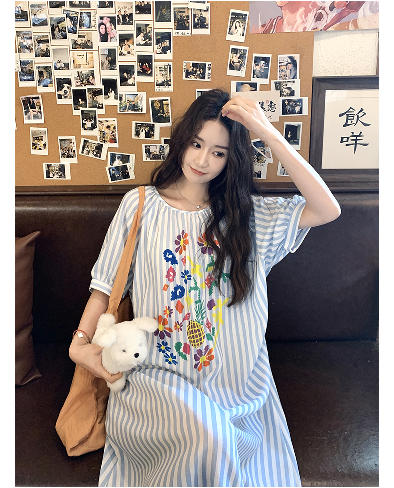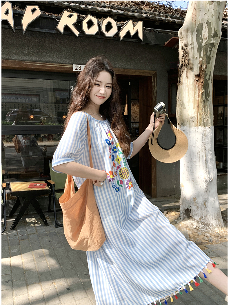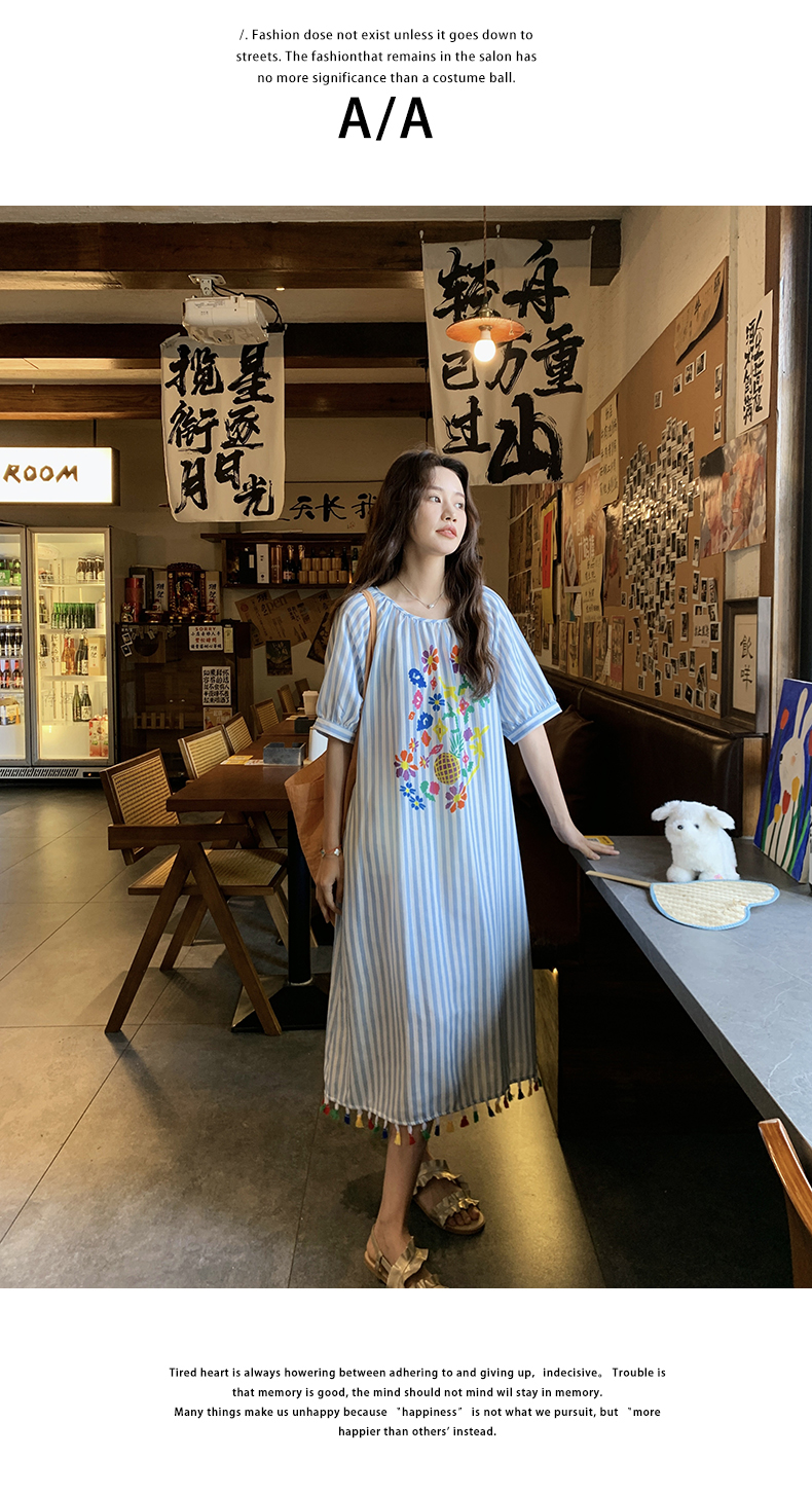 【ワンピース】韓国風 上品 リラックス感 ストライプ柄 半袖ワンピース レディース 夏用【SHシリーズ】
