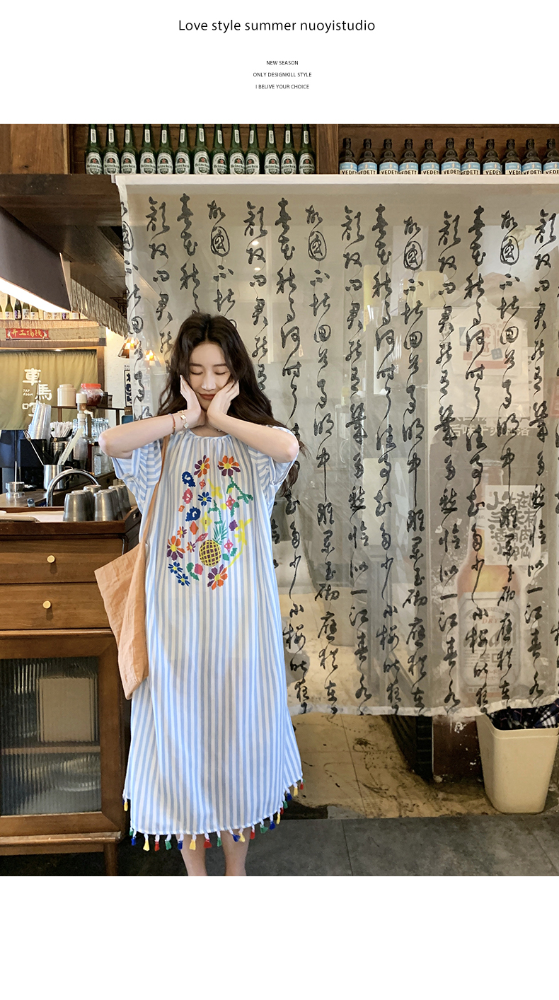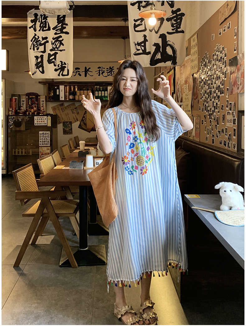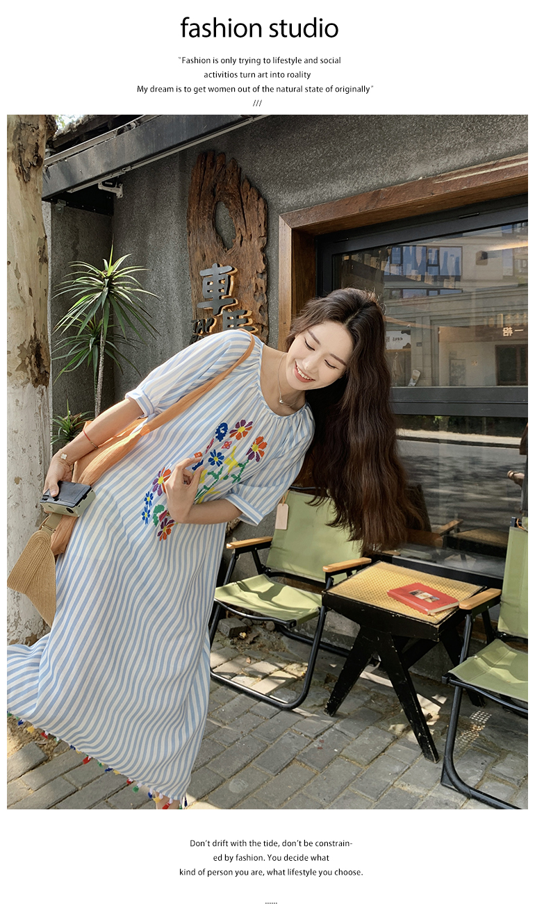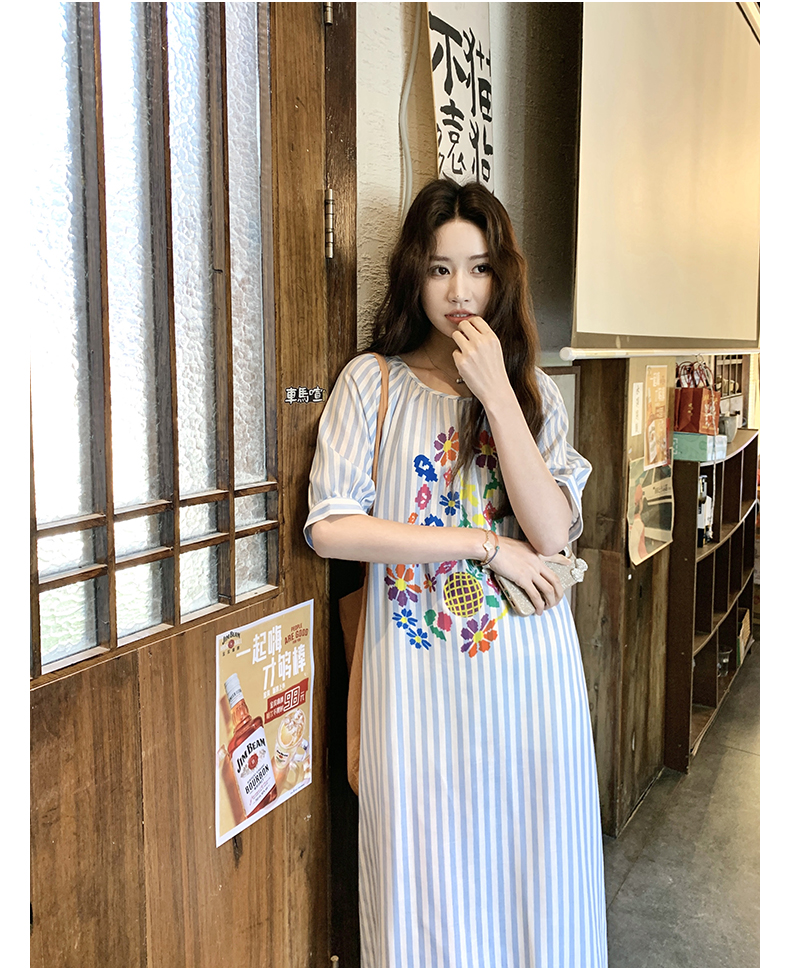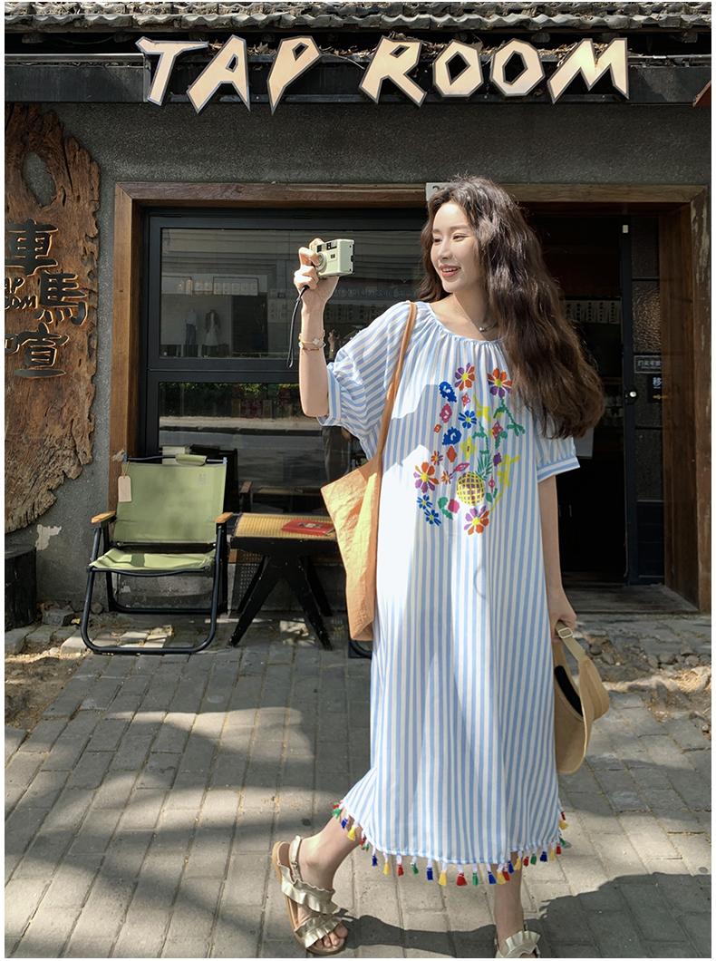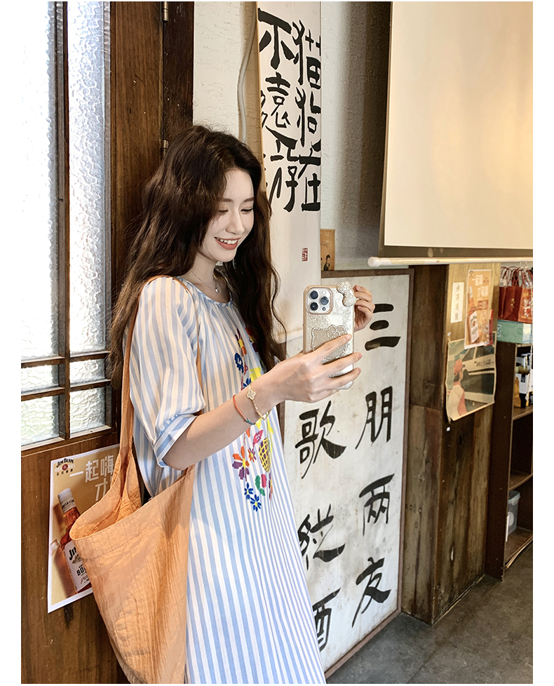 【ワンピース】韓国風 上品 リラックス感 ストライプ柄 半袖ワンピース レディース 夏用【SHシリーズ】