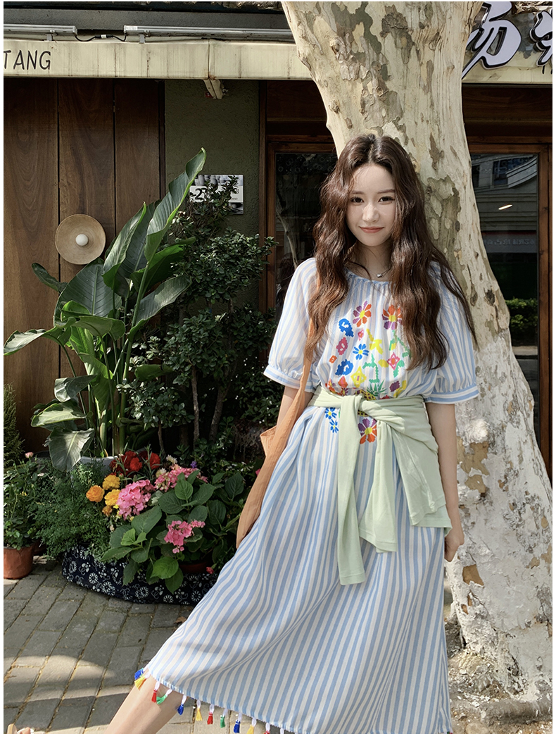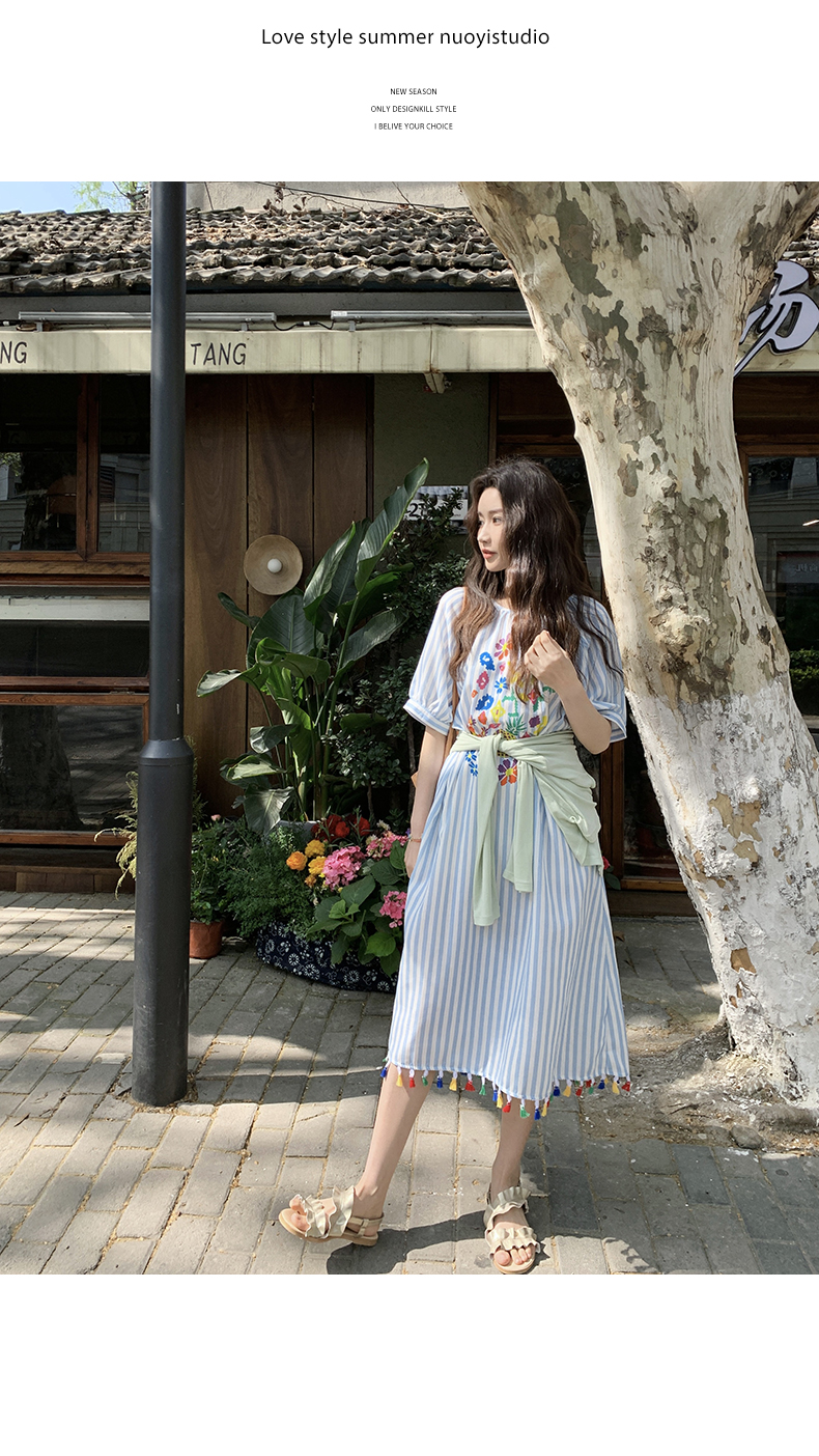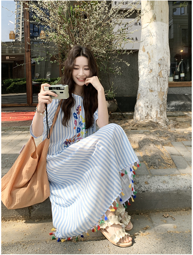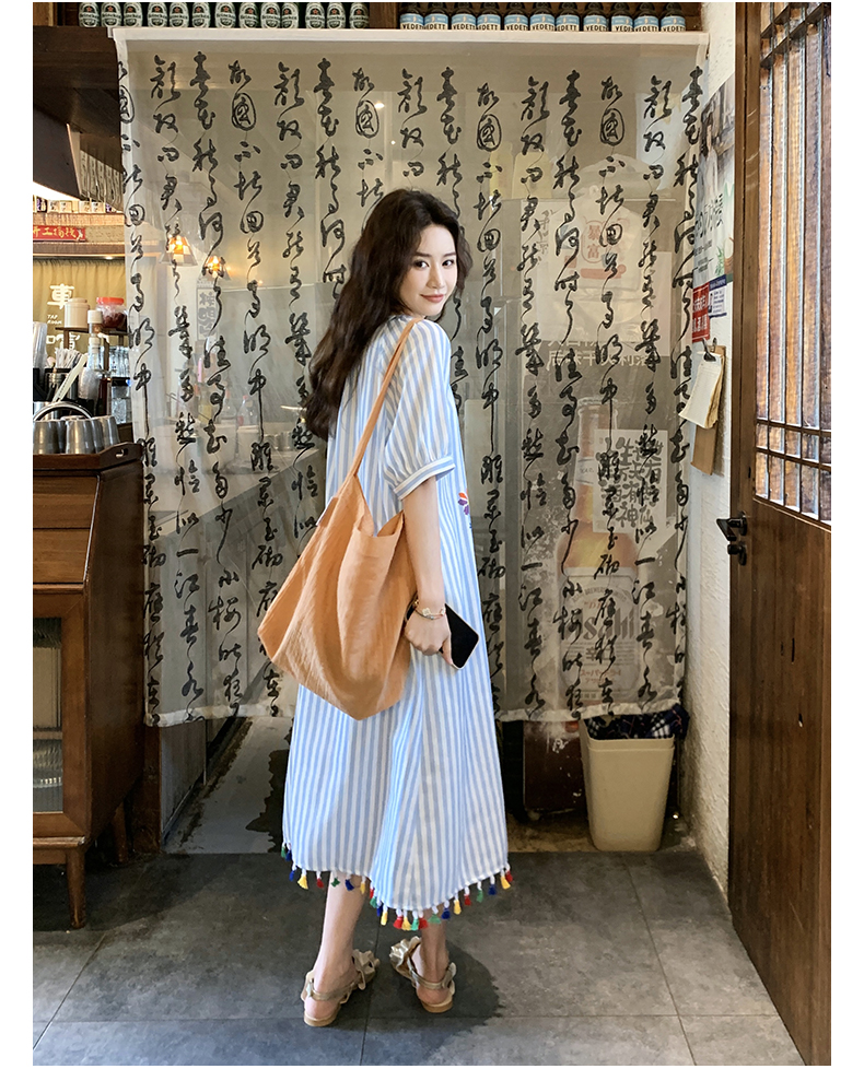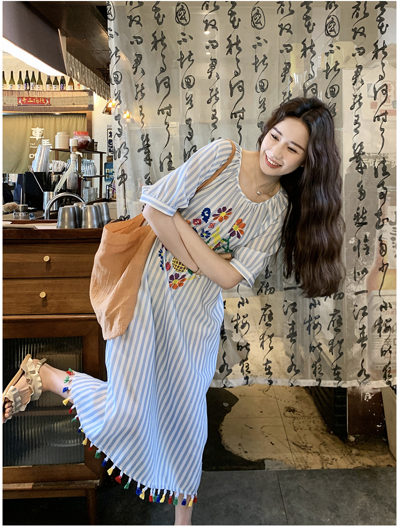 【ワンピース】韓国風 上品 リラックス感 ストライプ柄 半袖ワンピース レディース 夏用【SHシリーズ】