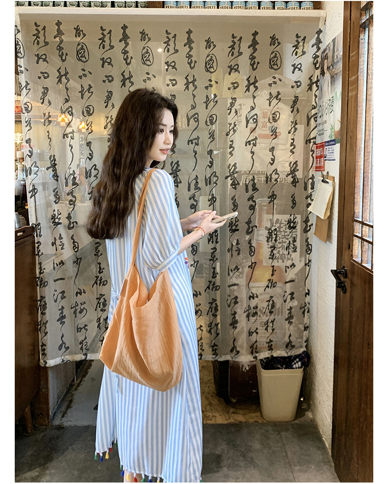 【商品名】【ワンピース】韓国風 上品 リラックス感 ストライプ柄 半袖ワンピース レディース 夏用【SHシリーズ】