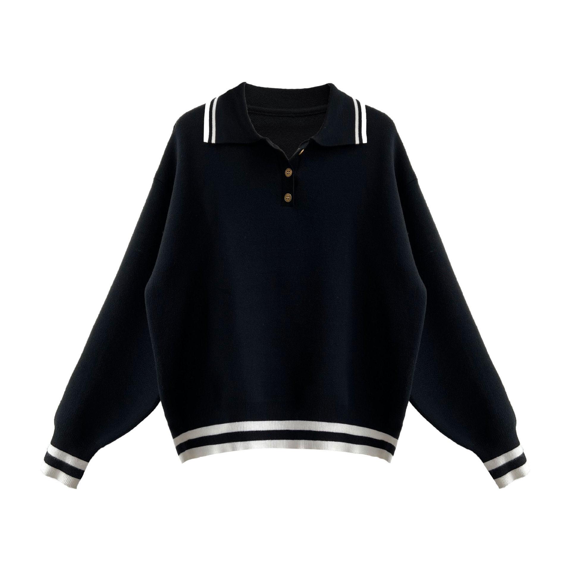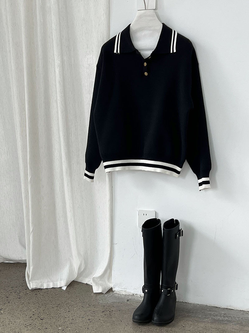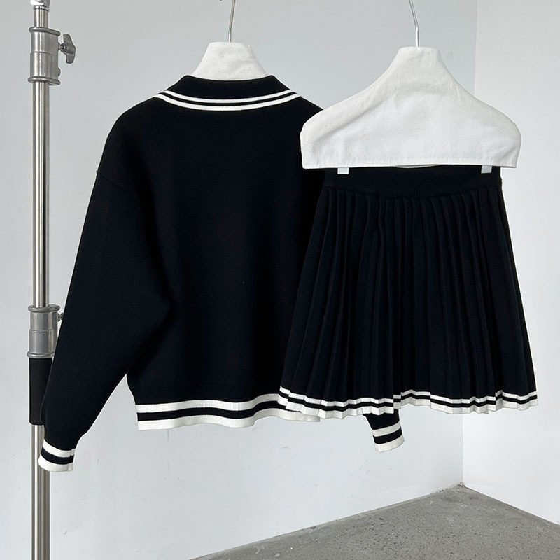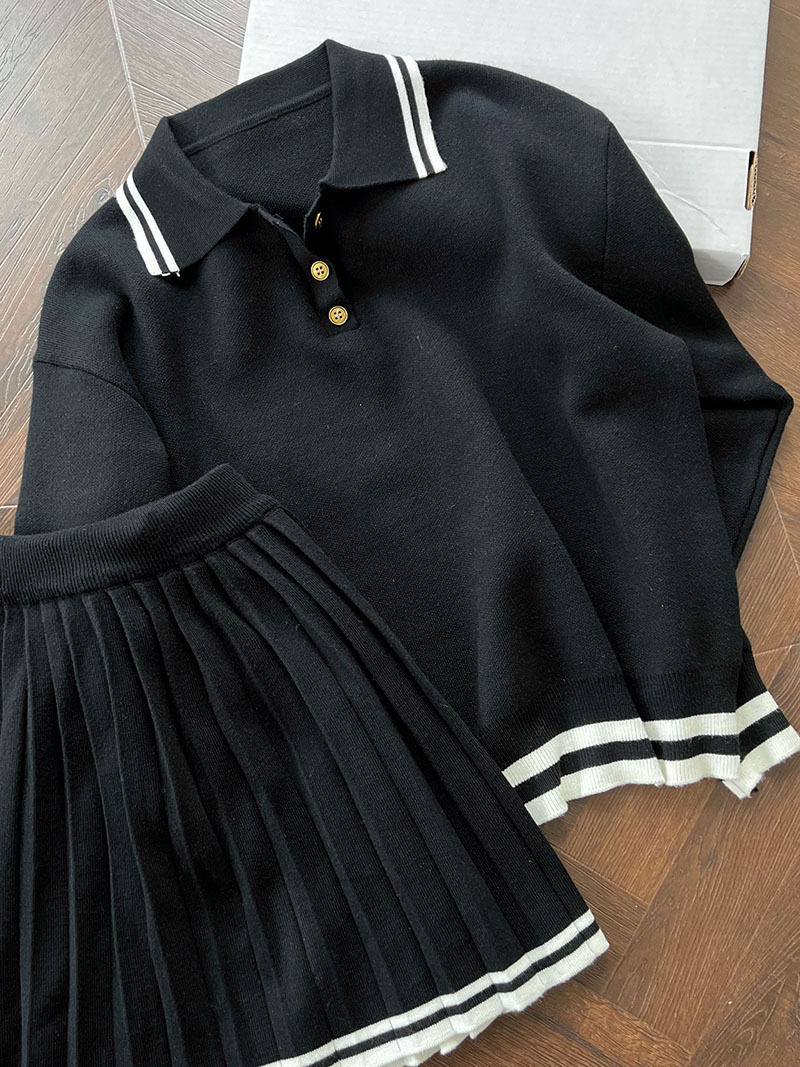 2点セット!【セットアップ】秋新作 学院風 上下セット ポロ襟スウェット+ハイウエストプリーツミニスカート【JZシリーズ】