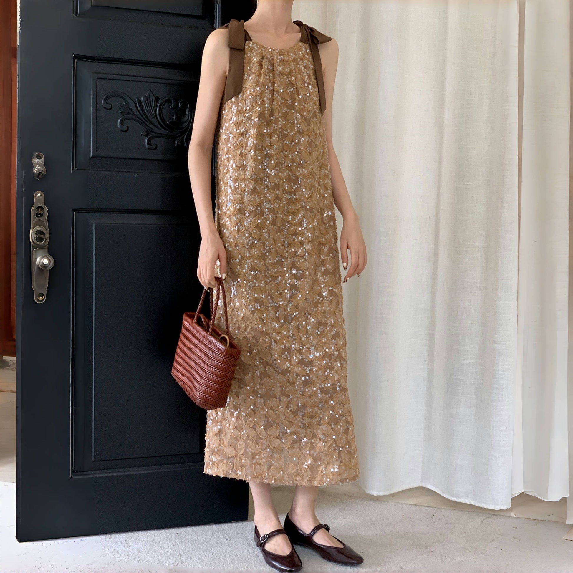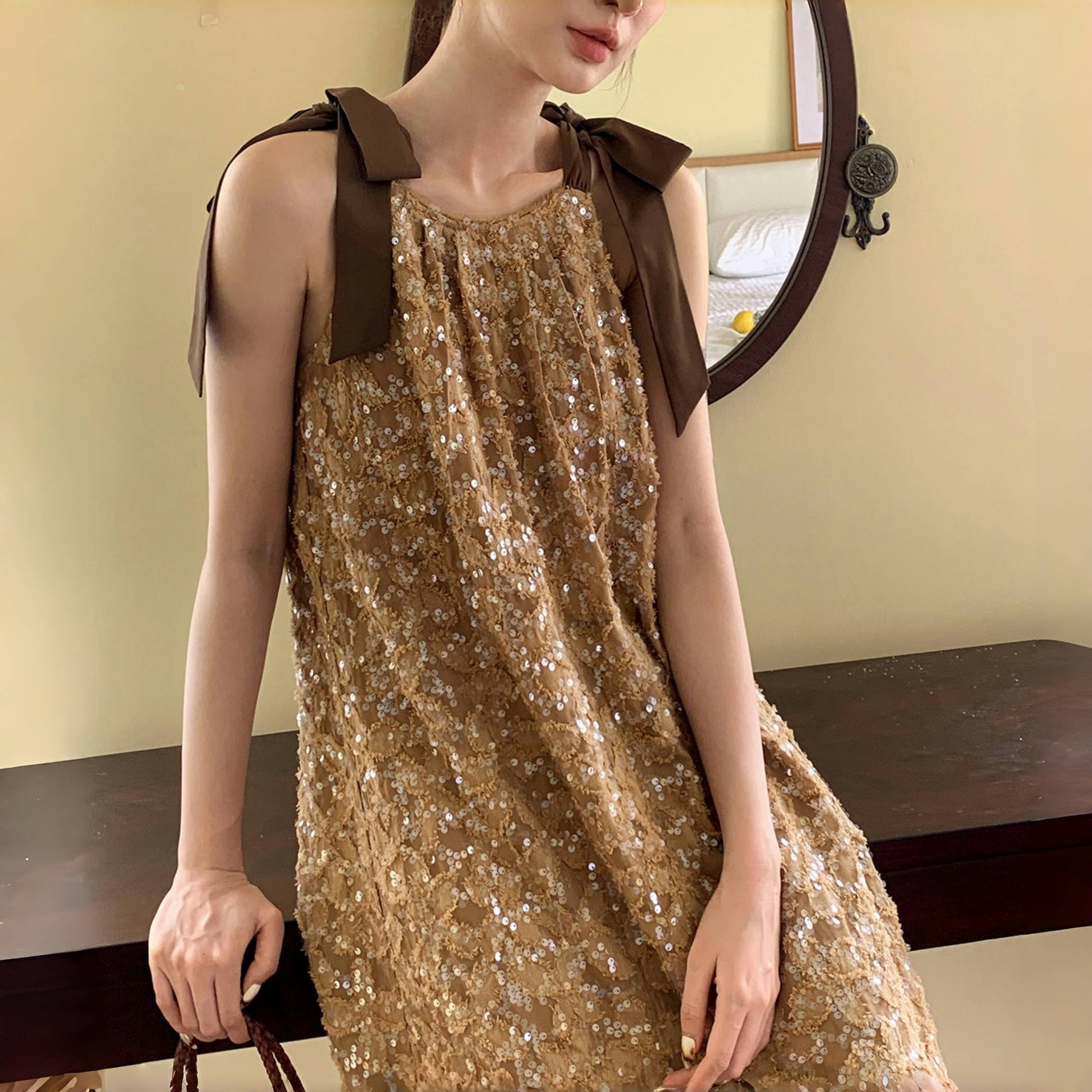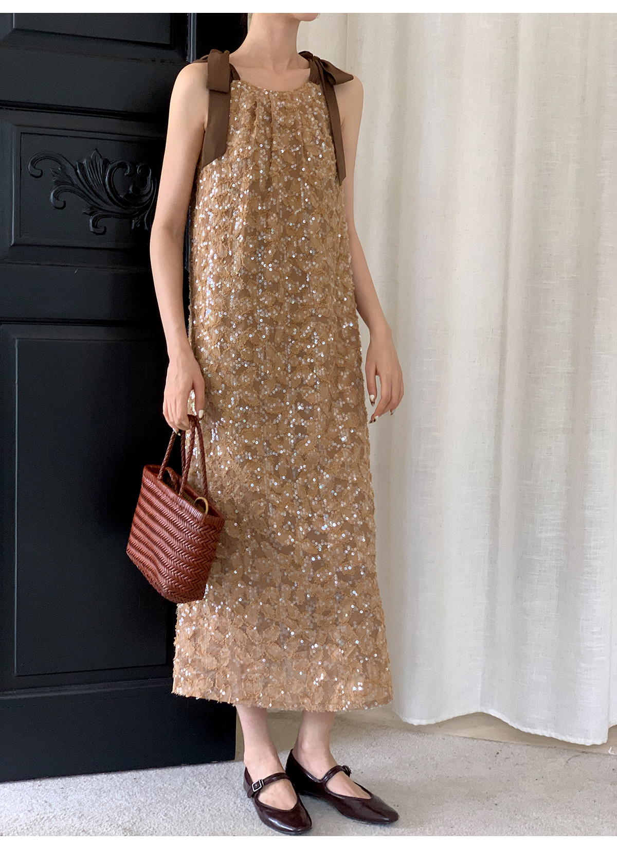 【商品名】【ワンピース】夏 金箔風 テクスチャ感 スパンコール キャミワンピース 【SHシリーズ】