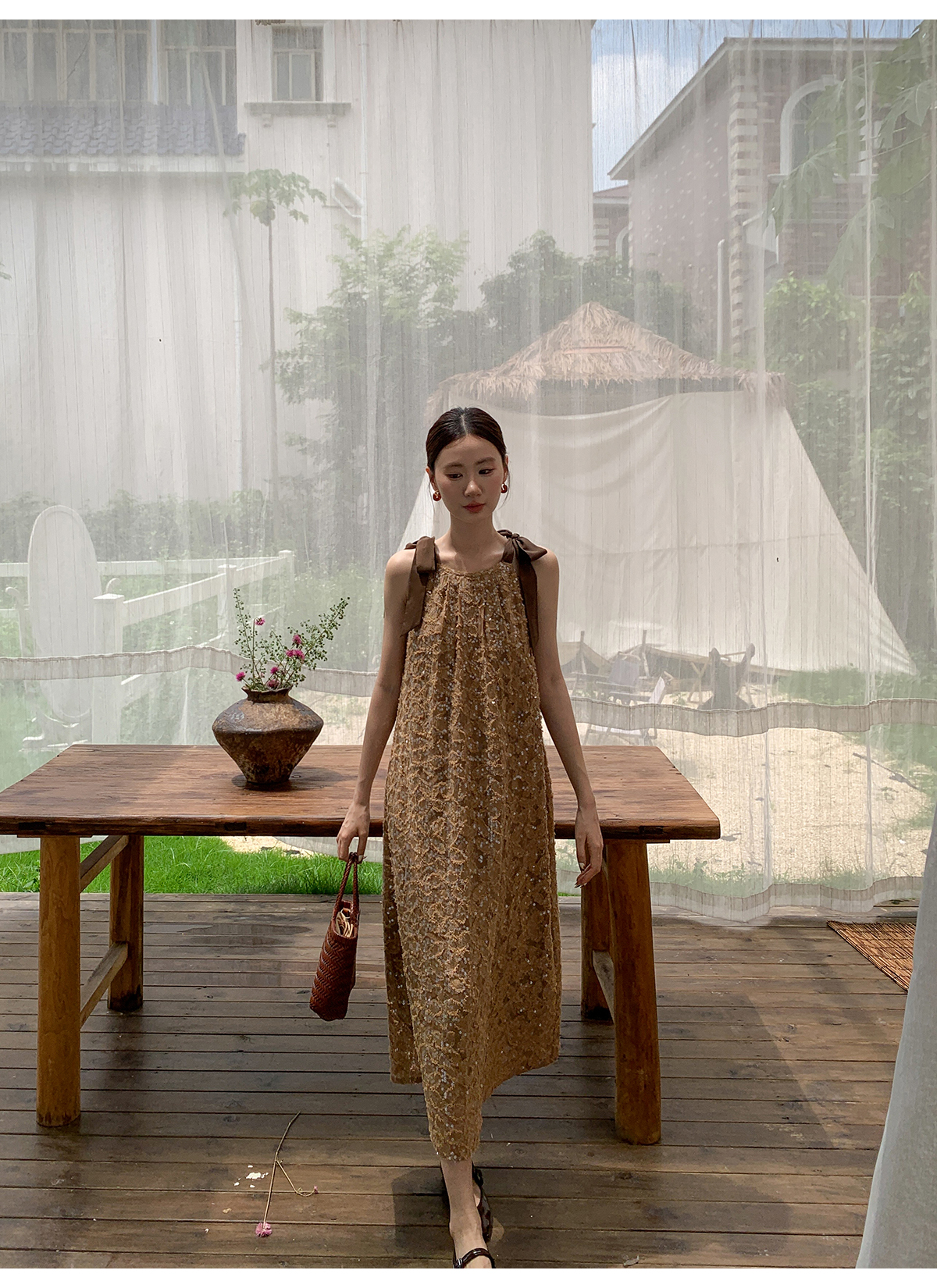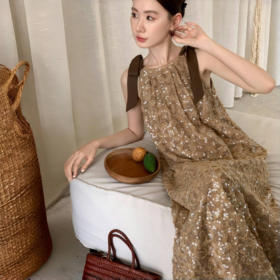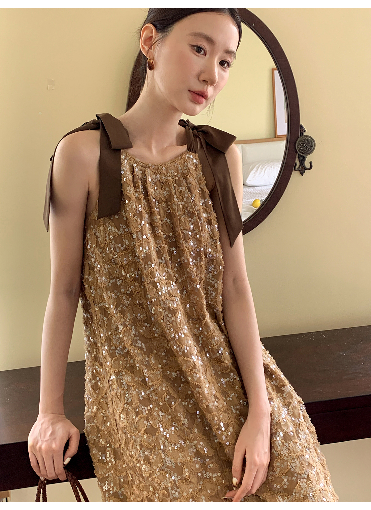 【商品名】【ワンピース】夏 金箔風 テクスチャ感 スパンコール キャミワンピース 【SHシリーズ】