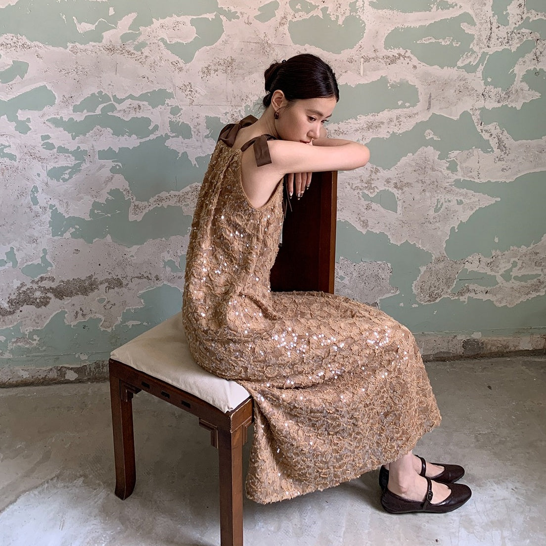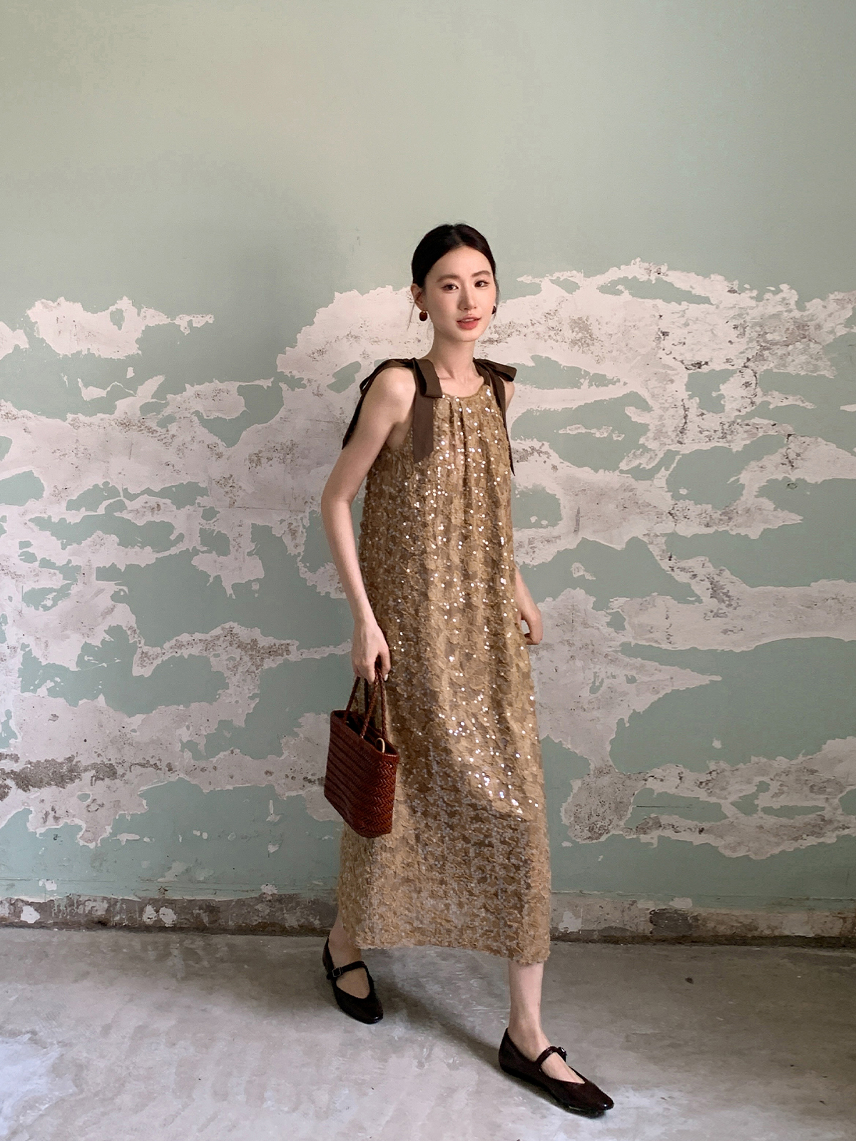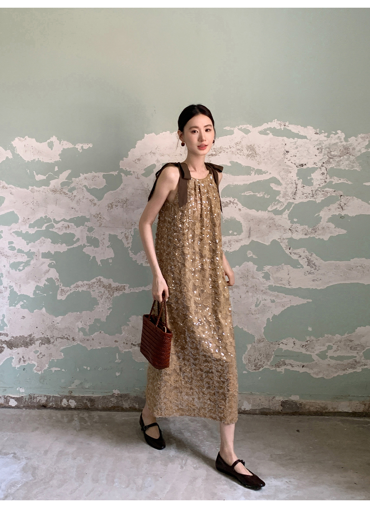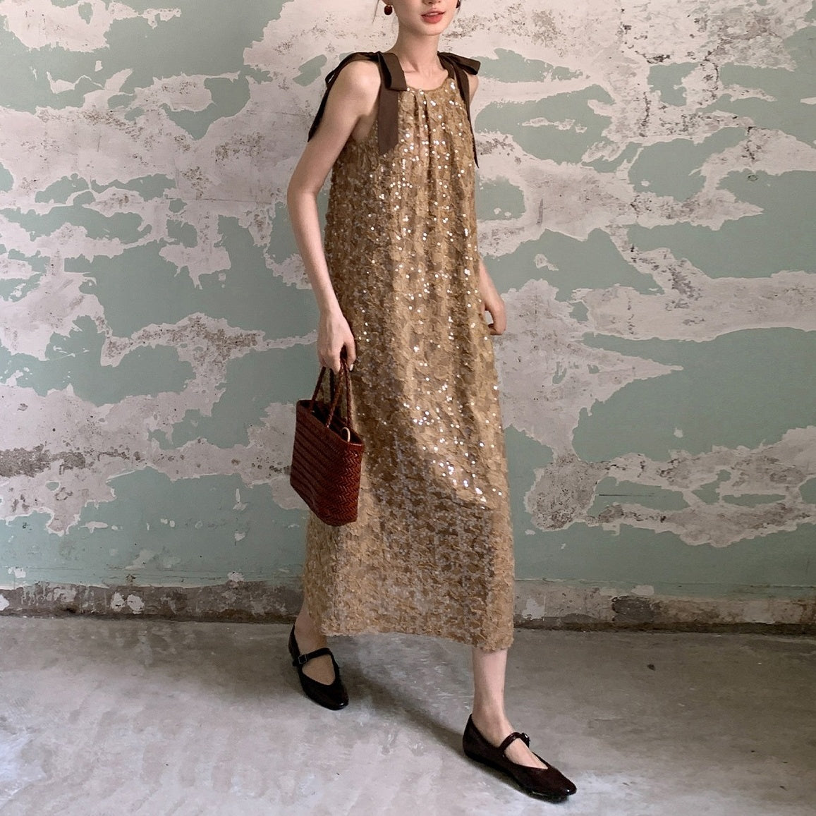 【ワンピース】夏 金箔風 テクスチャ感 スパンコール キャミワンピース 【SHシリーズ】