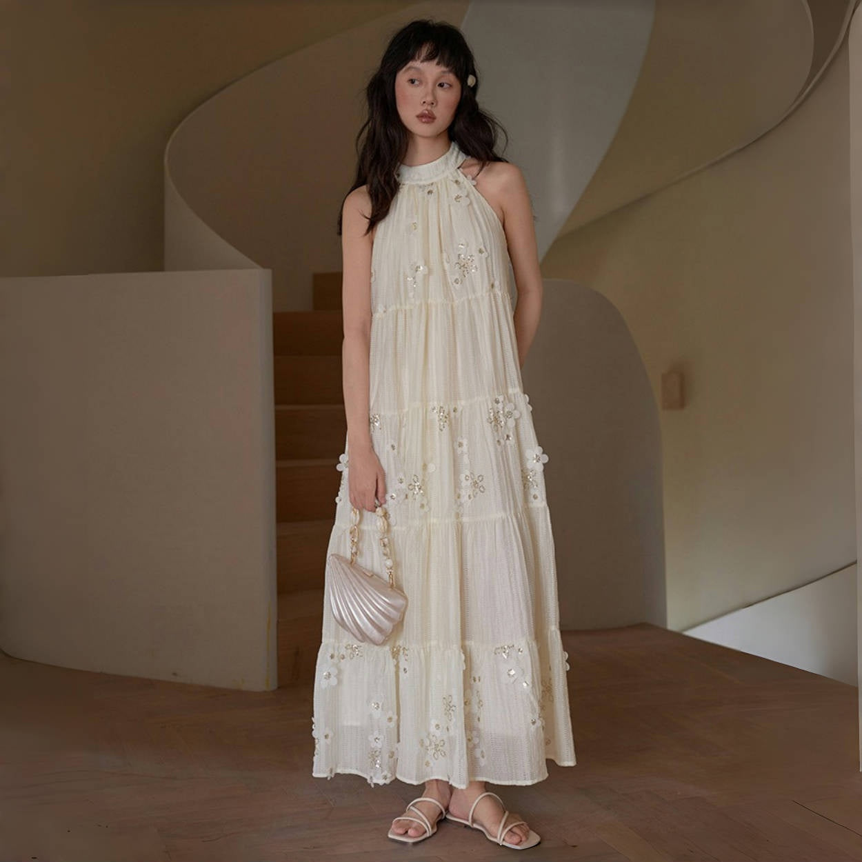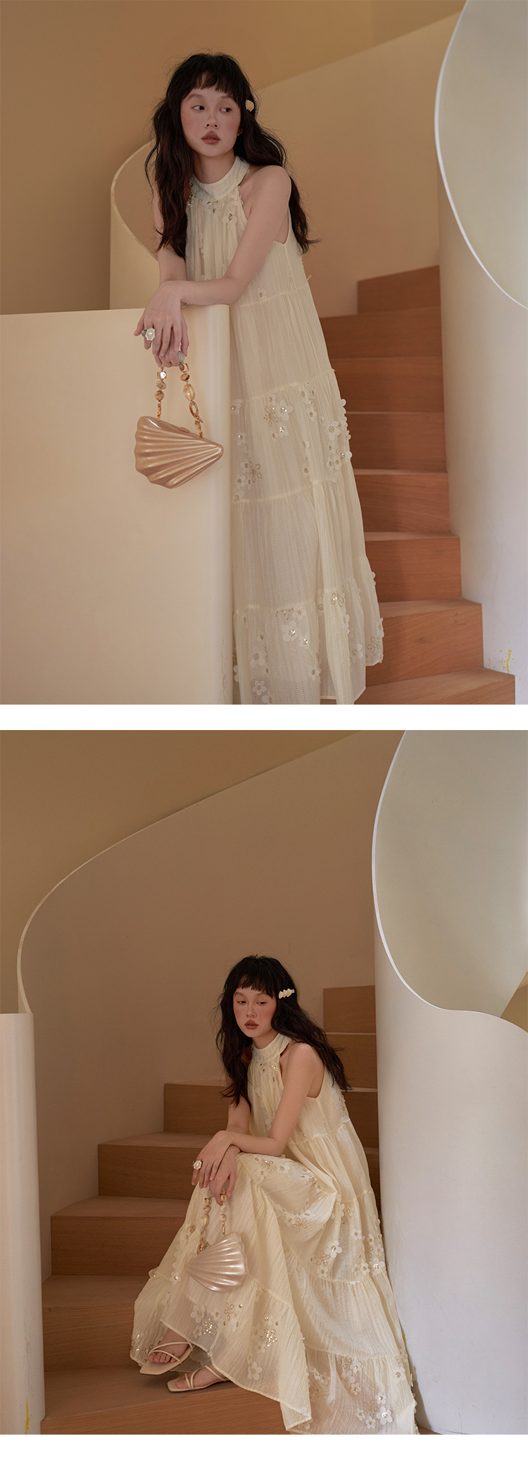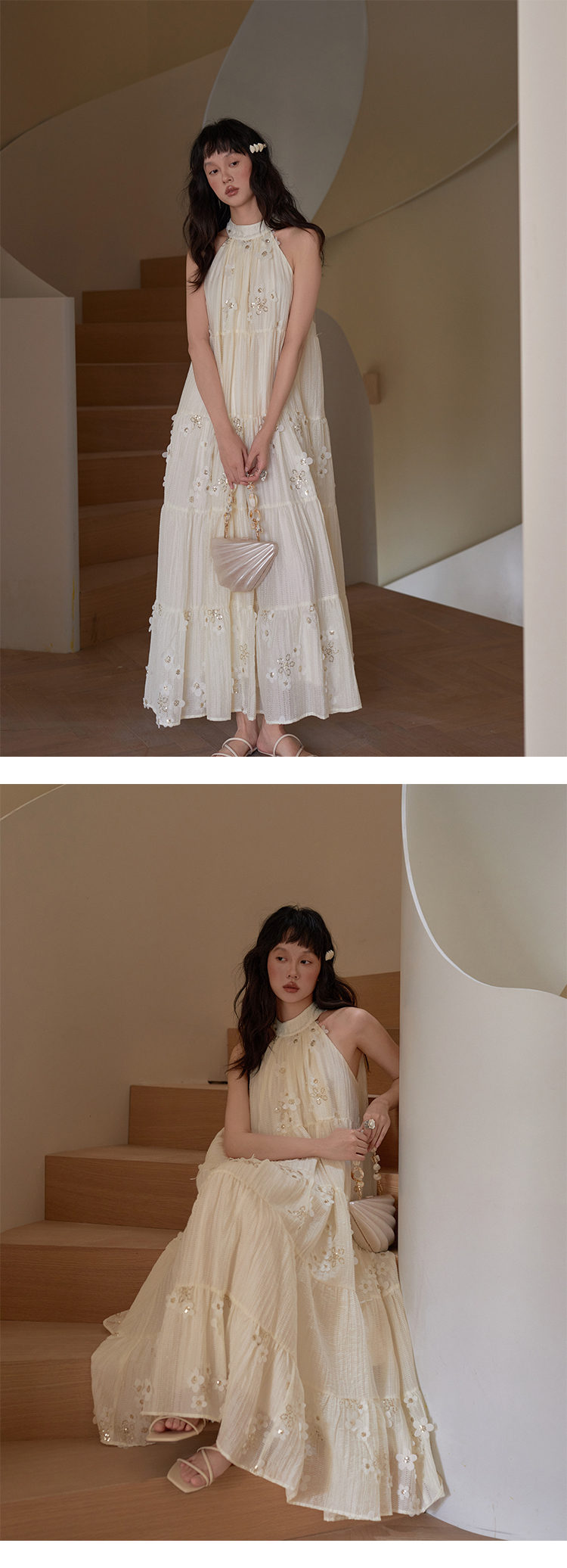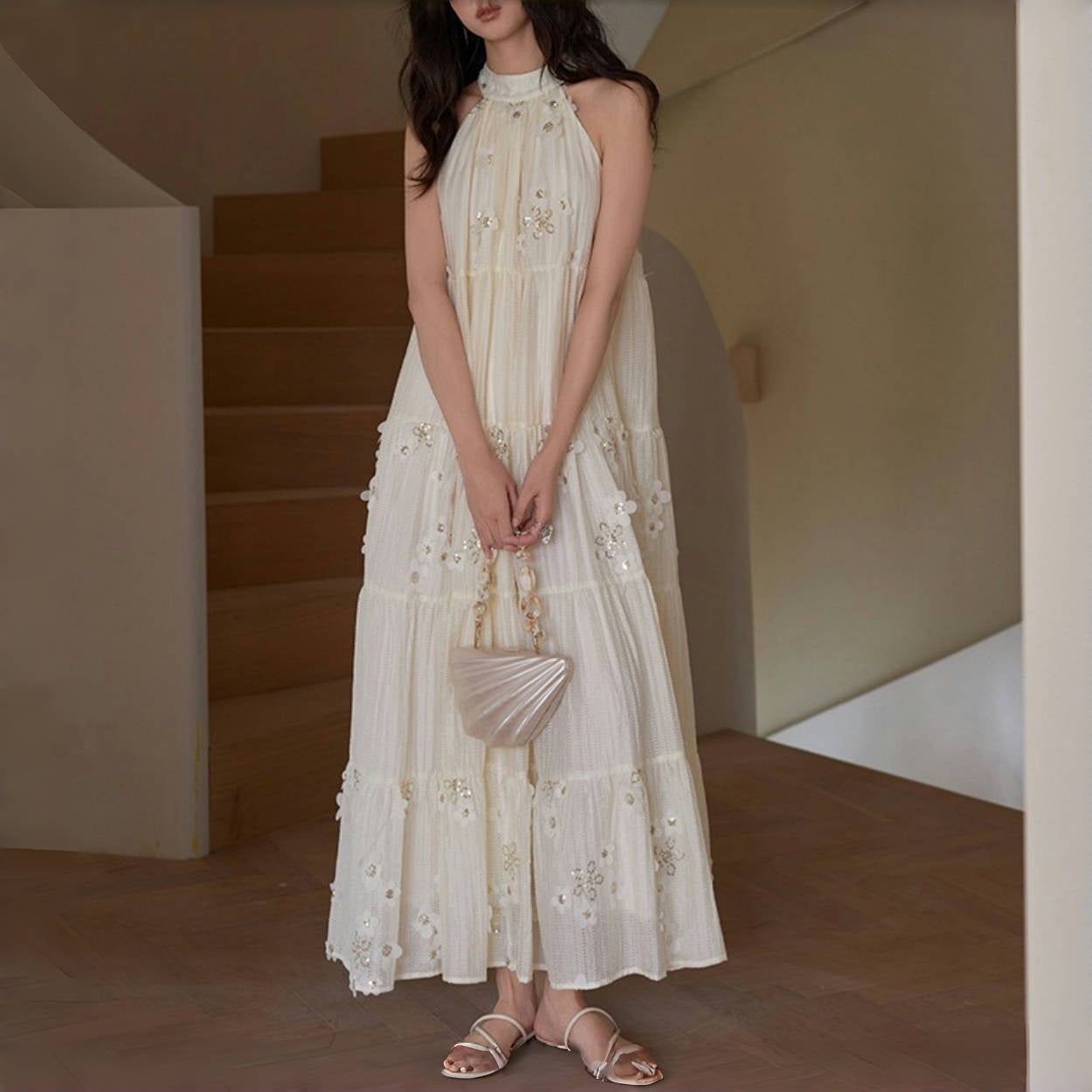 【商品名】【ワンピース】夏 刺繍 エレガント 花柄スパンコール ホルターネック ノースリーブ ワンピース 【SHシリーズ】