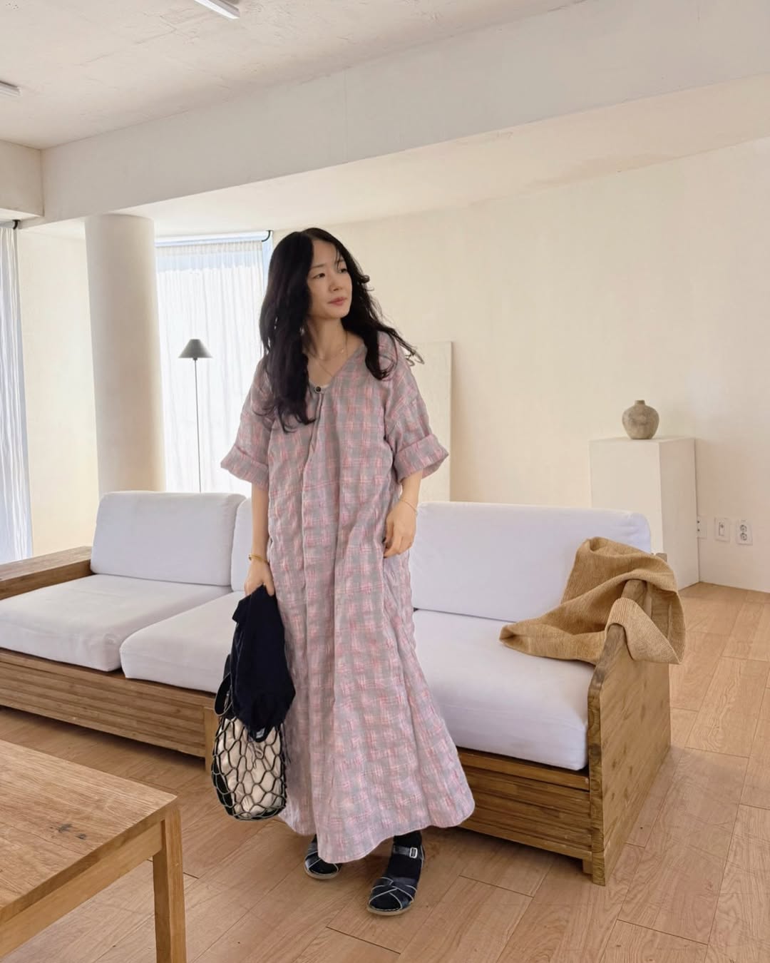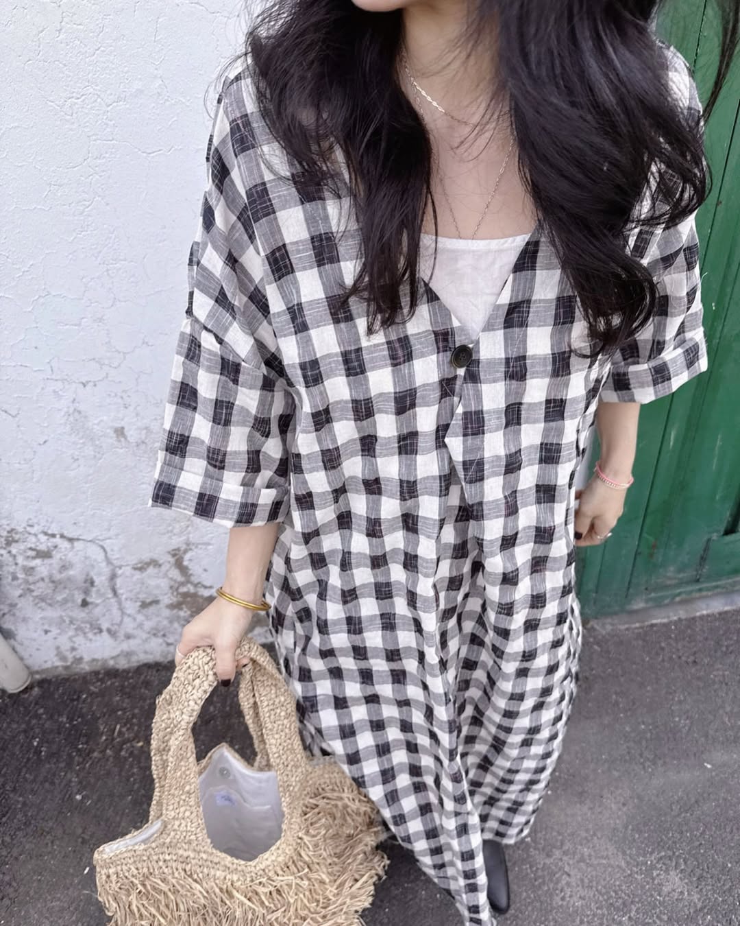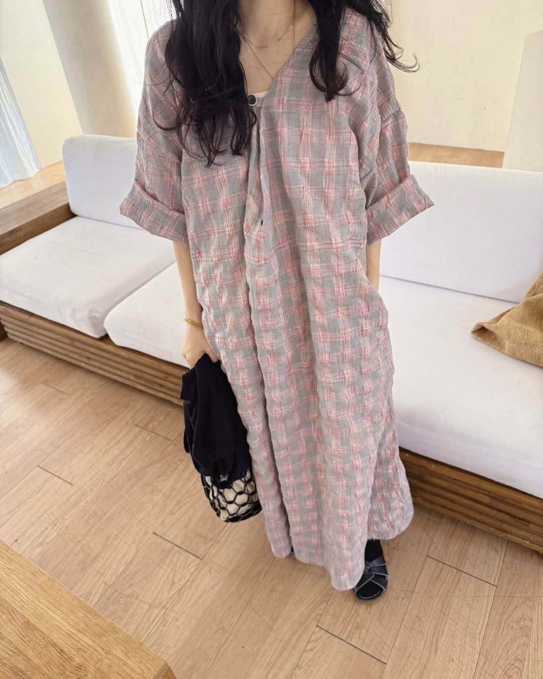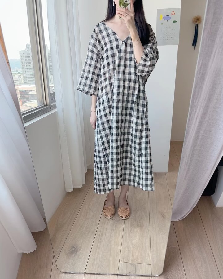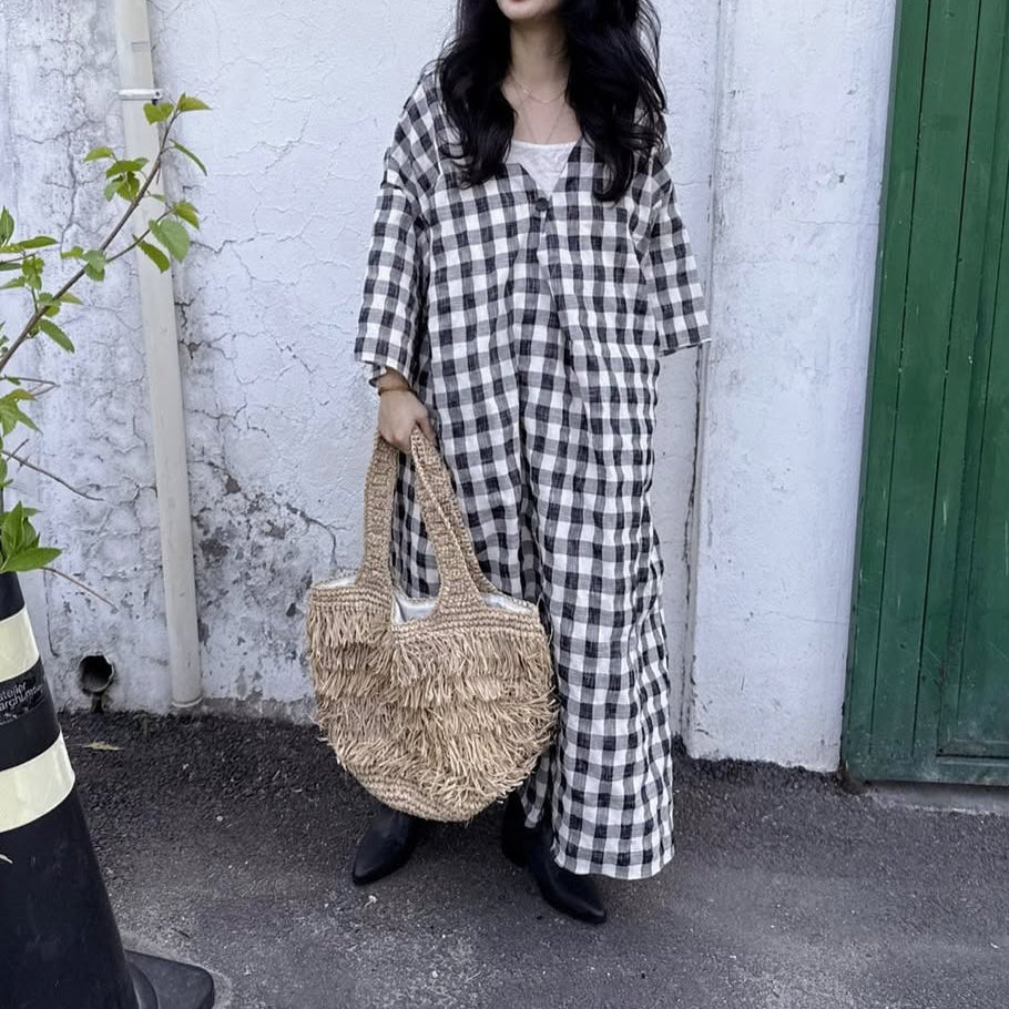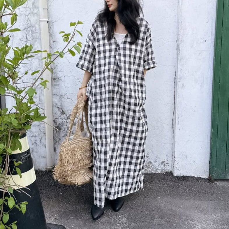 【ワンピース】配色チェック柄 半袖ワンピース|肌触りの良い ゆったり 体型カバーも叶うロング丈【SHシリーズ】