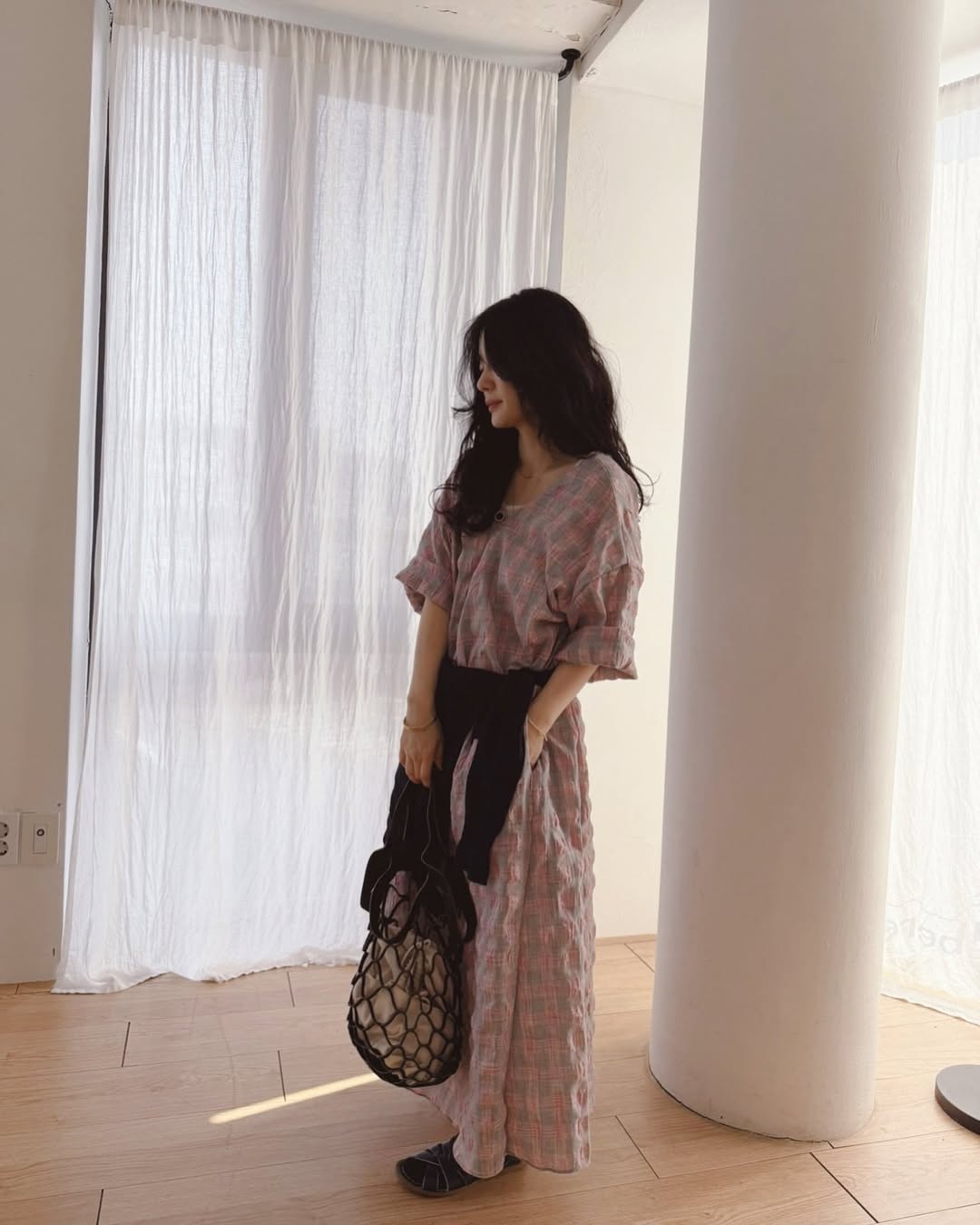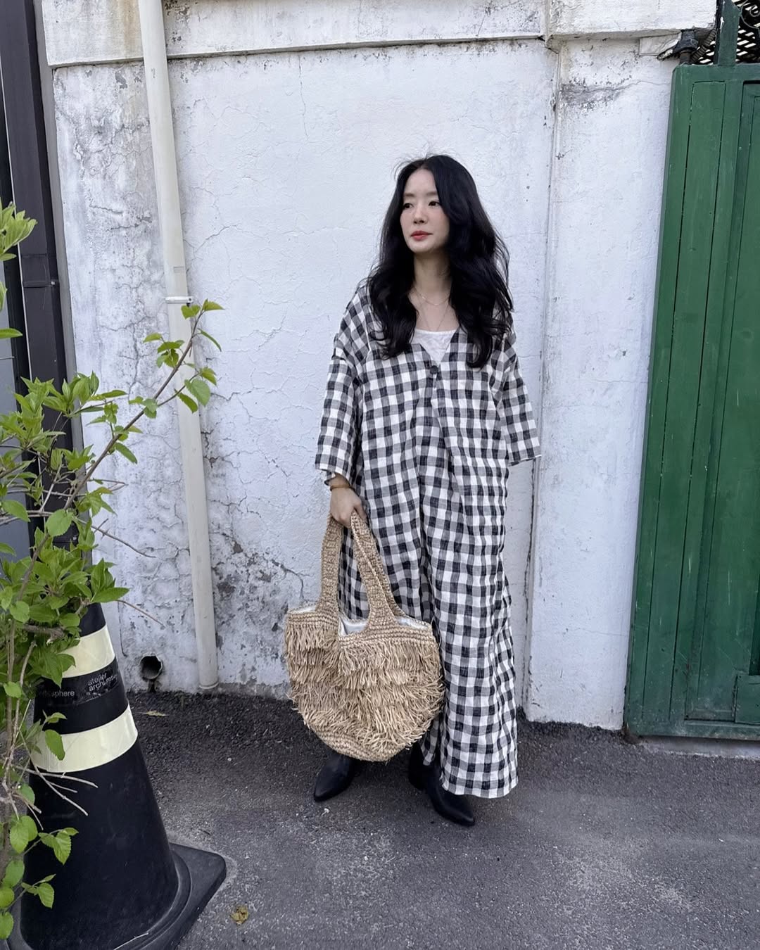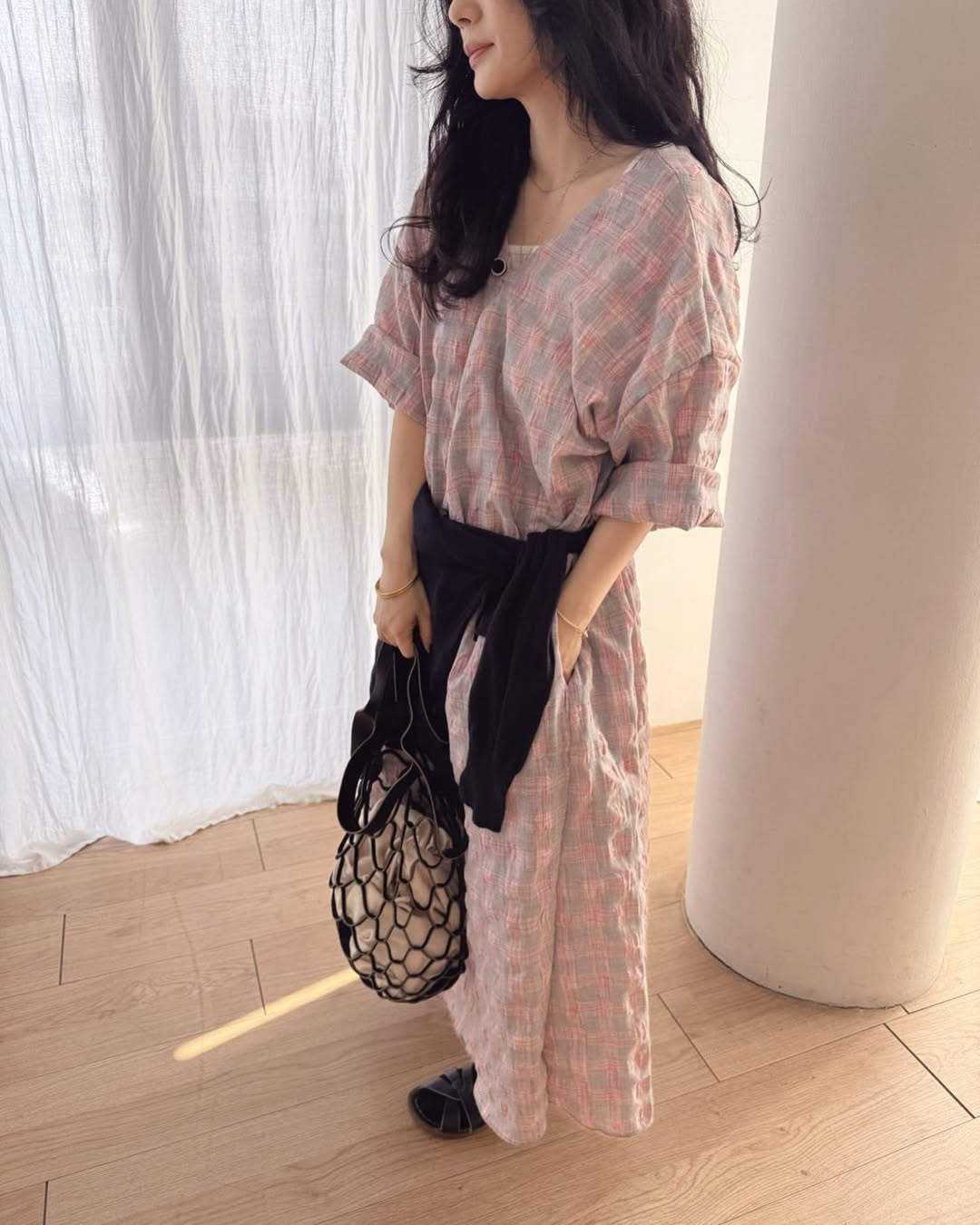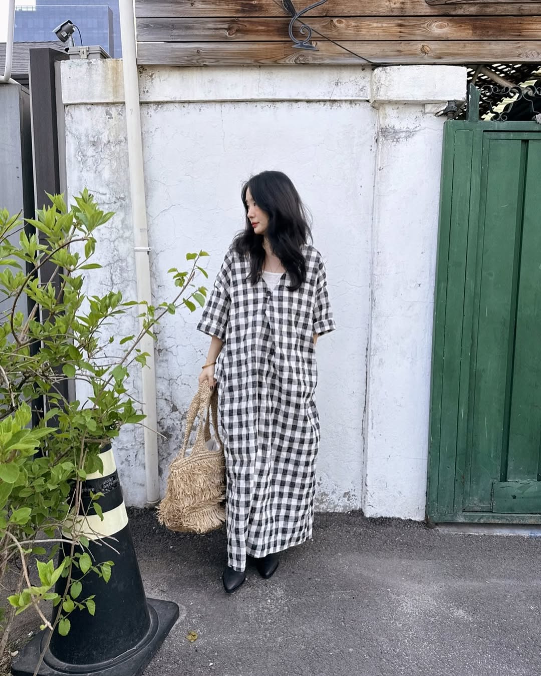 【ワンピース】配色チェック柄 半袖ワンピース|肌触りの良い ゆったり 体型カバーも叶うロング丈【SHシリーズ】