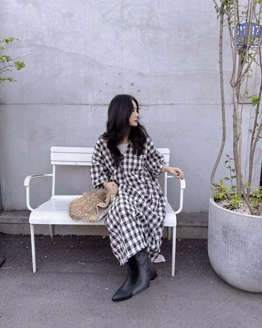 【ワンピース】起毛素材 チェック柄 レトロ クルーネック 長袖 ワンピース 【JZシリーズ】