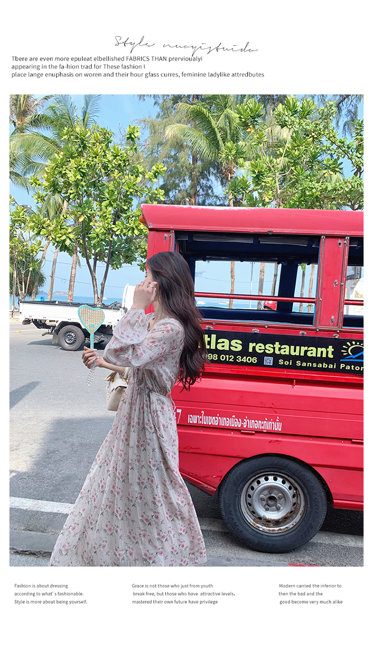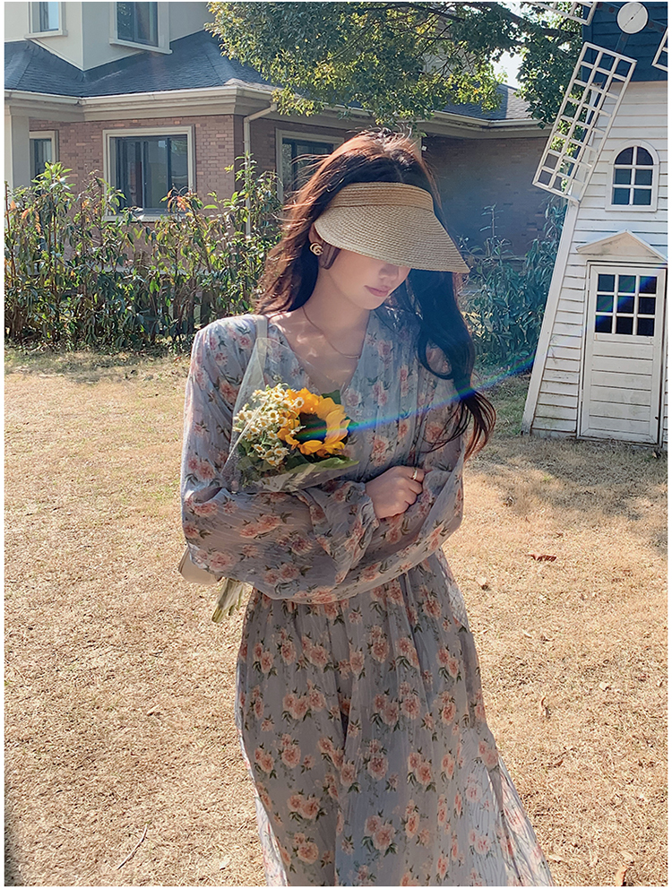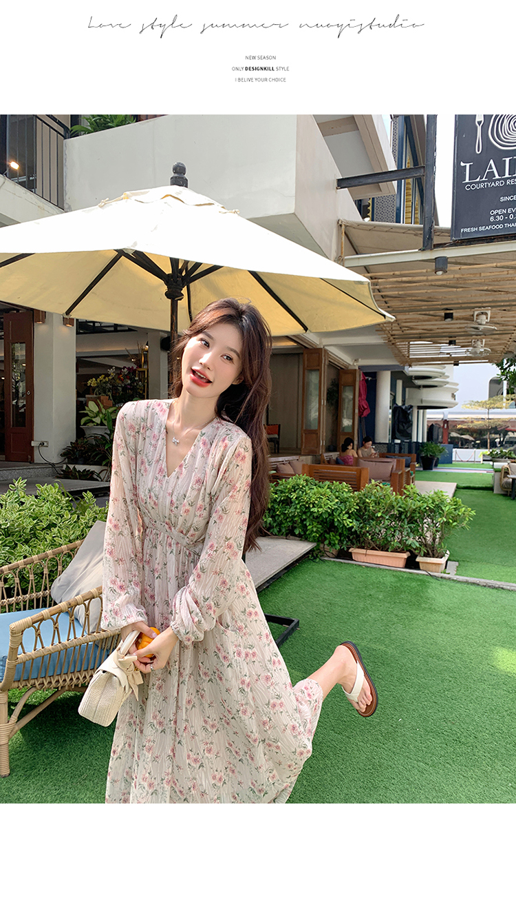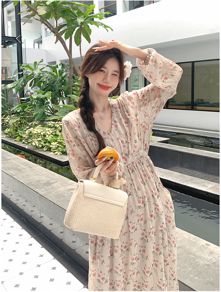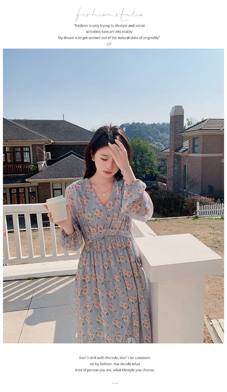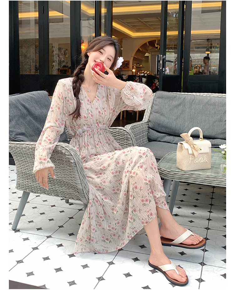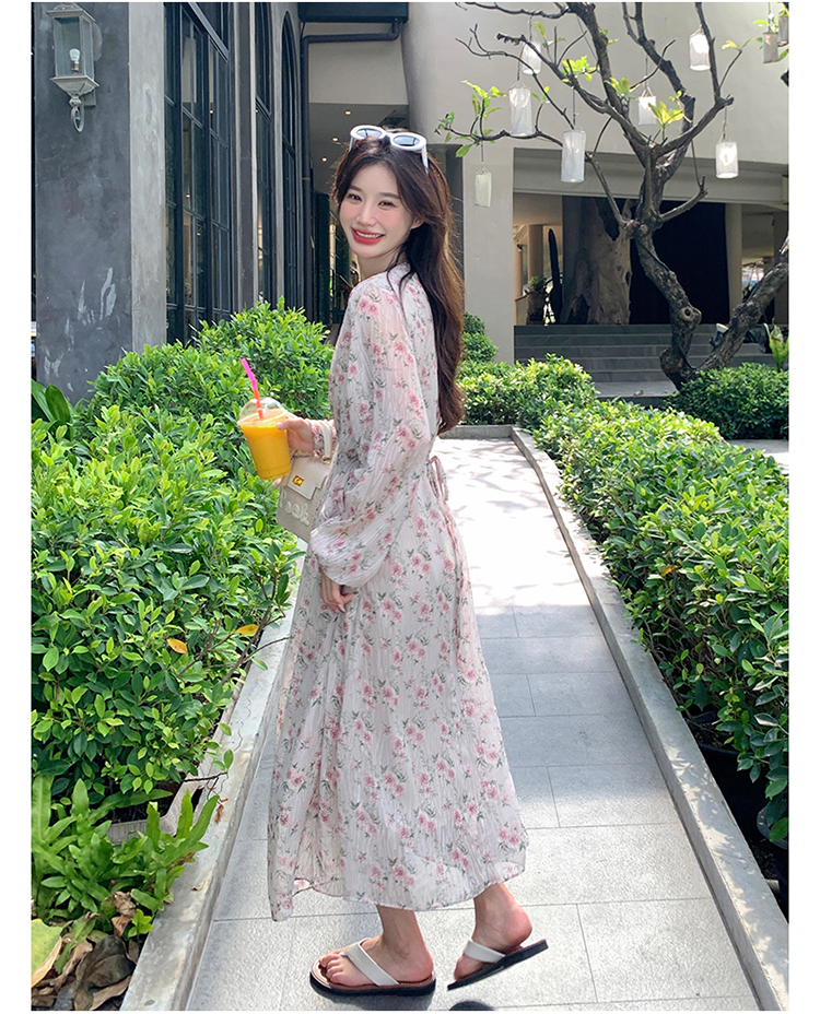 【ワンピース】フレンチ 花柄 長袖ワンピース|韓国風マキシ丈ワンピース・足首まで届く絶美シルエット【SHシリーズ】