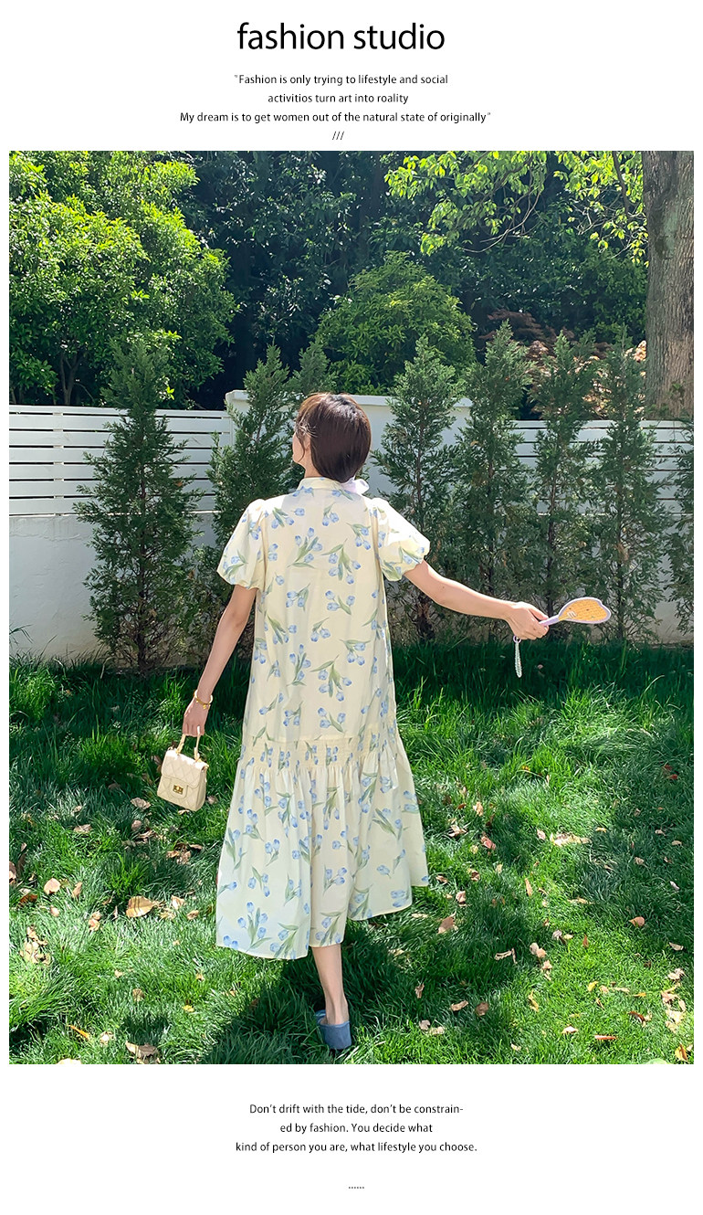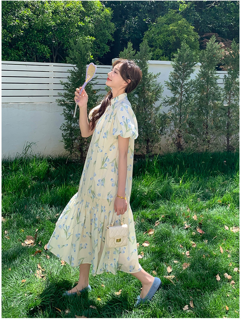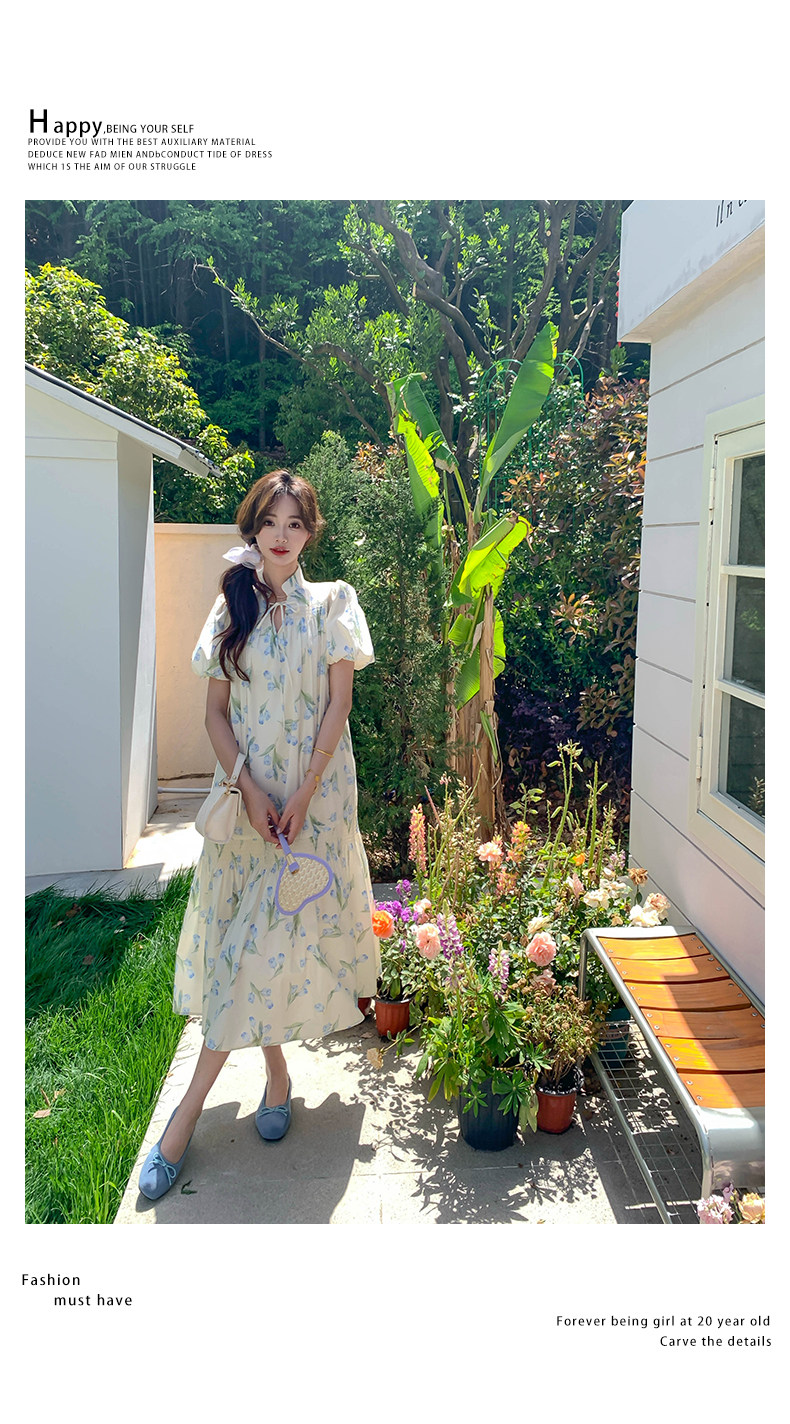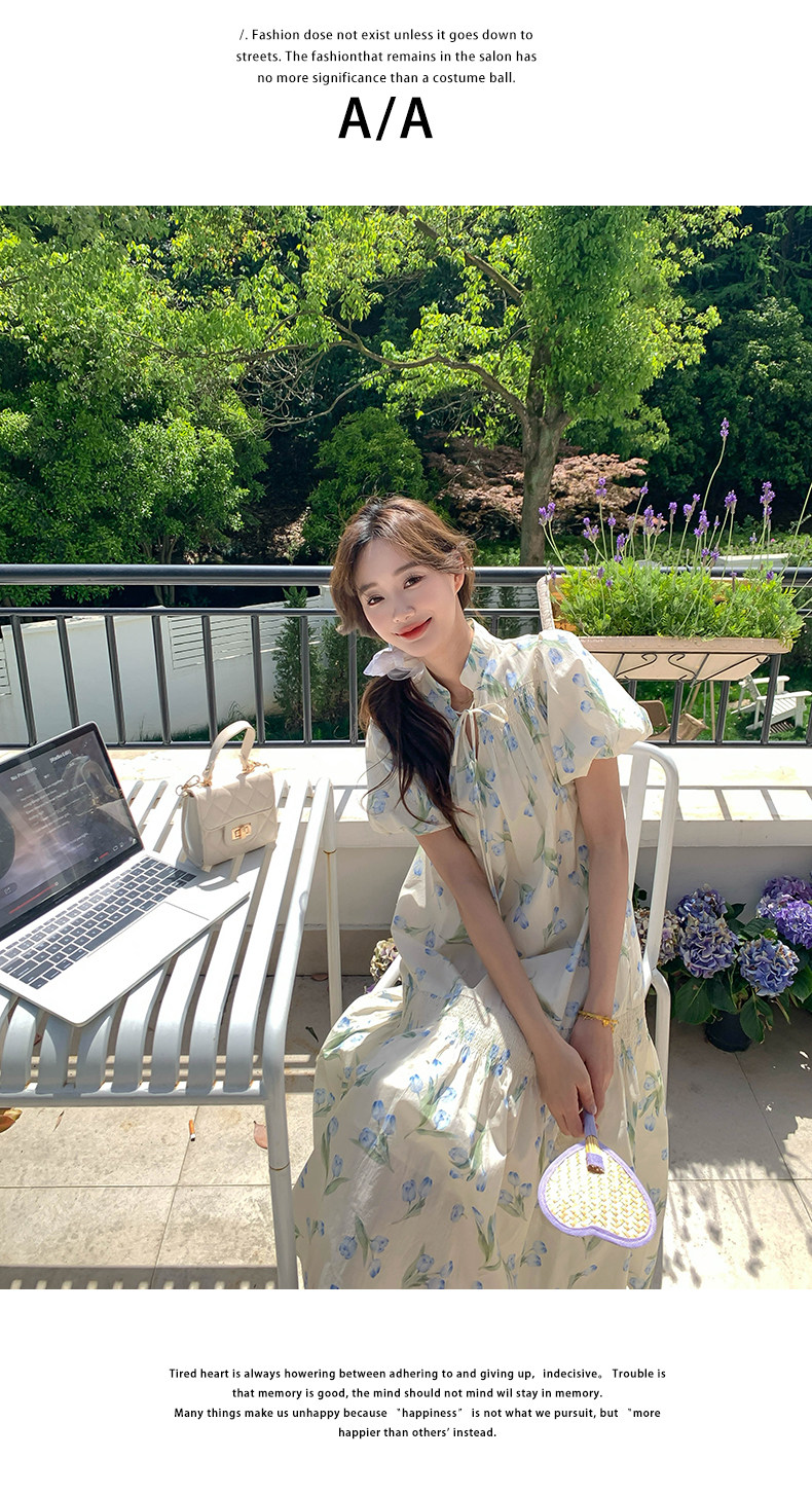 【商品名】【ワンピース】花柄パフスリーブワンピース|Aライン フレンチ エレガント 半袖ワンピース【SHシリーズ】