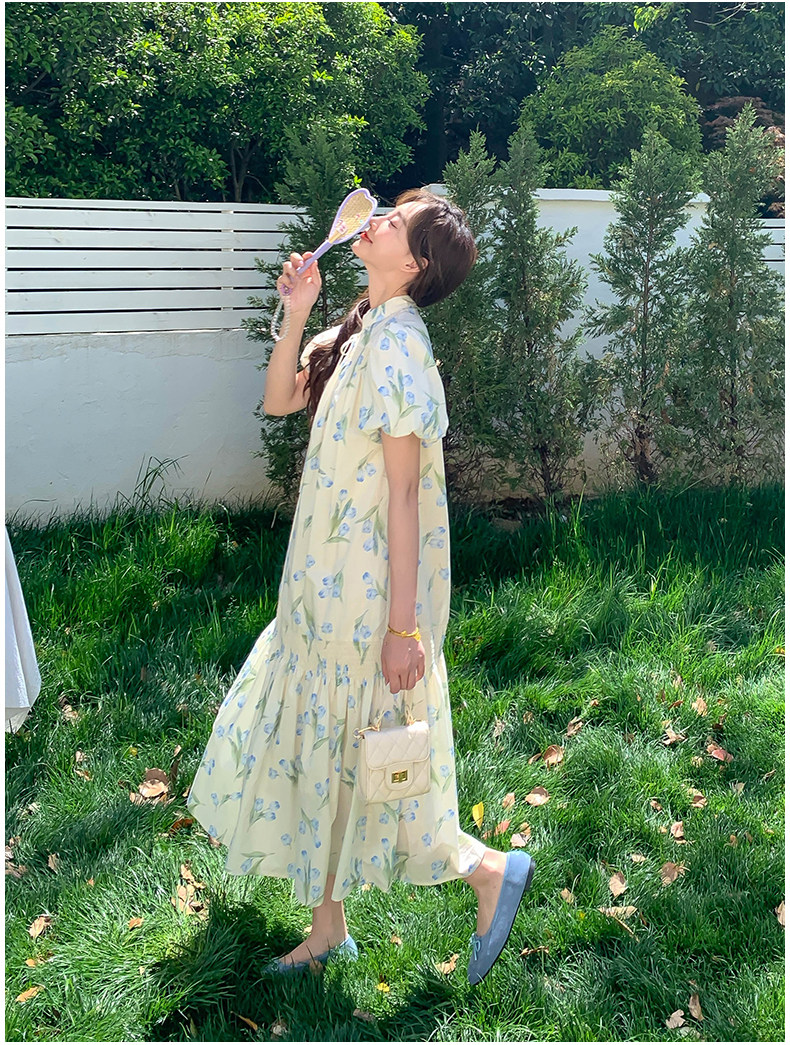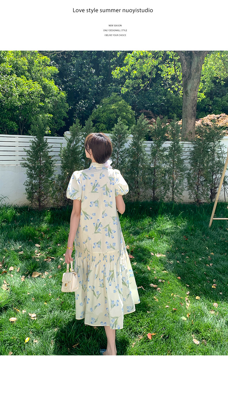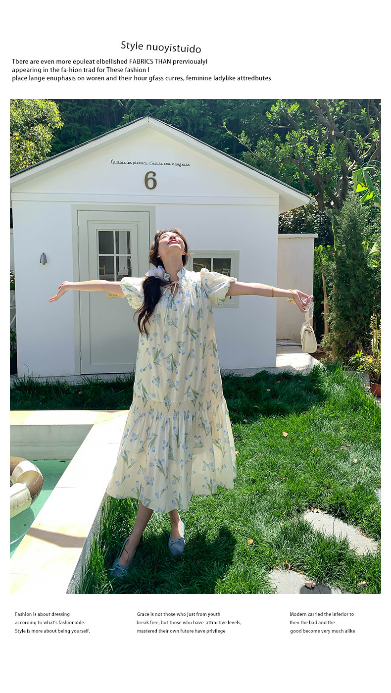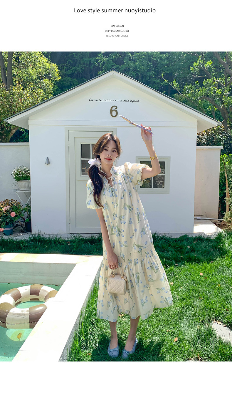 【商品名】【ワンピース】花柄パフスリーブワンピース|Aライン フレンチ エレガント 半袖ワンピース【SHシリーズ】