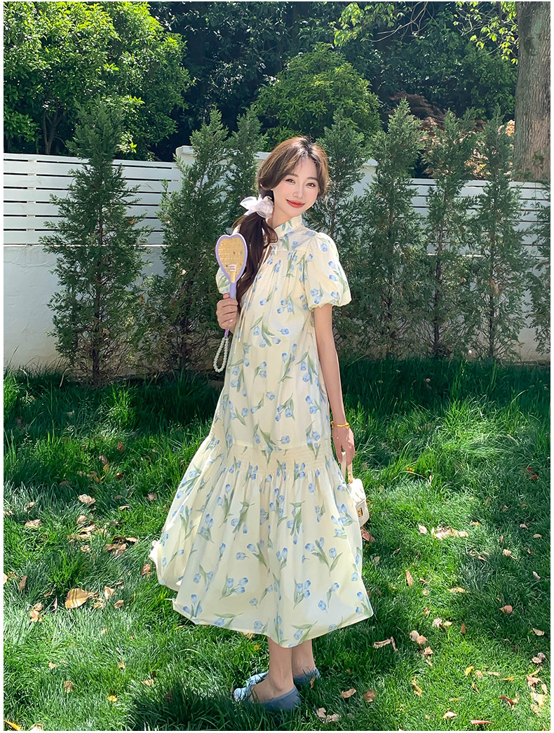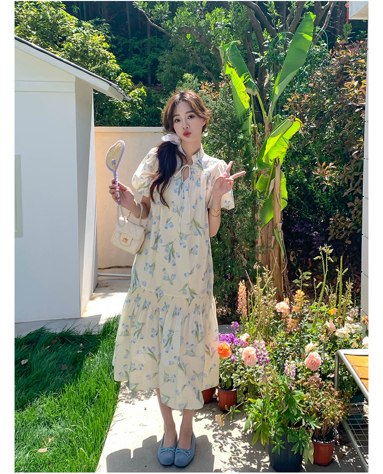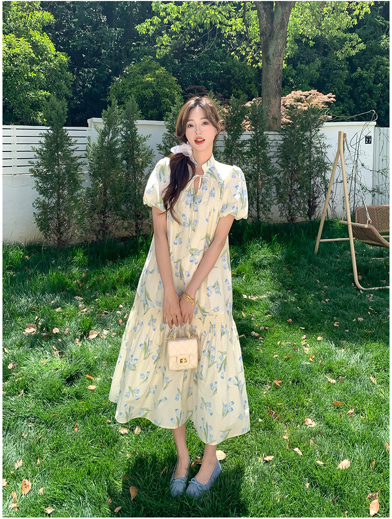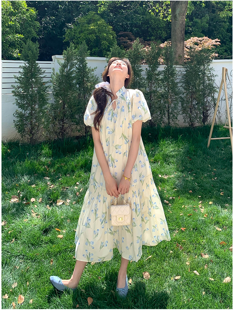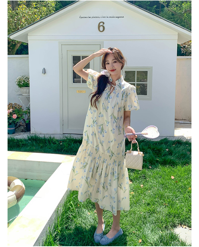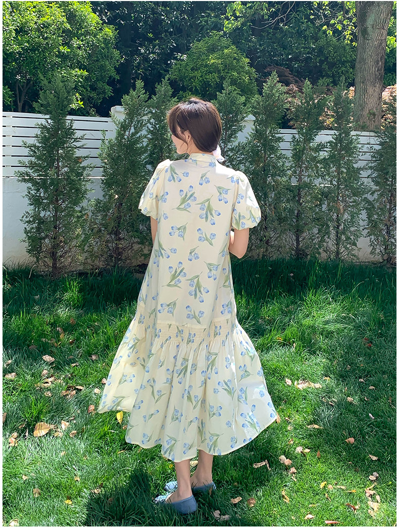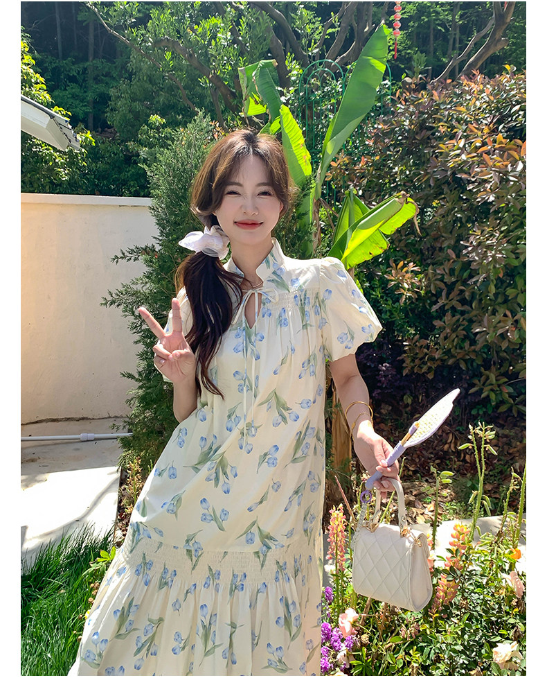 【ワンピース】花柄パフスリーブワンピース|Aライン フレンチ エレガント 半袖ワンピース【SHシリーズ】