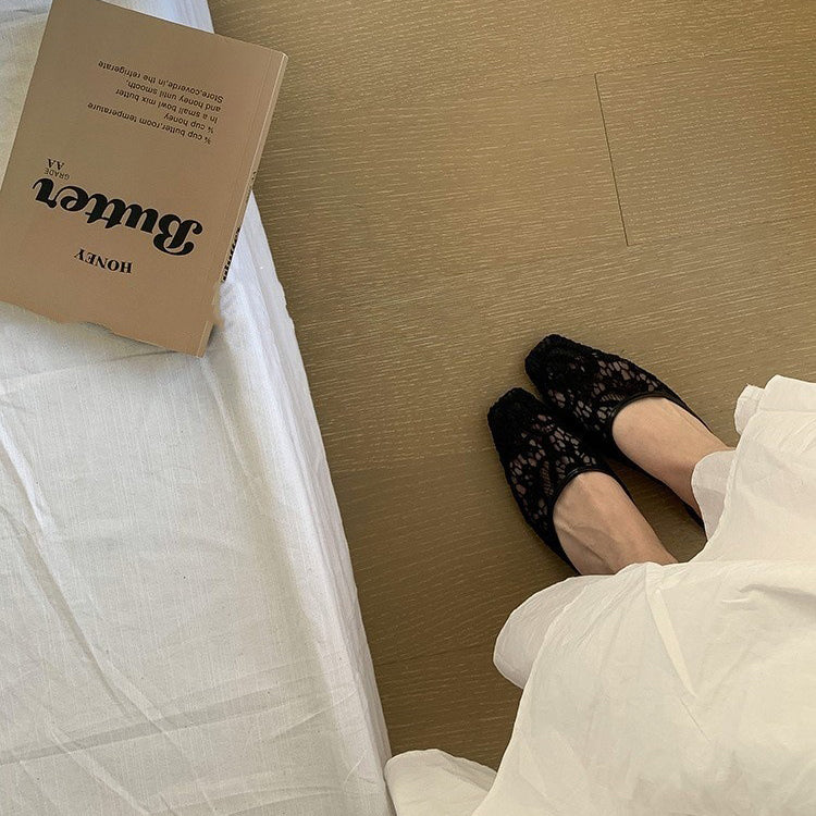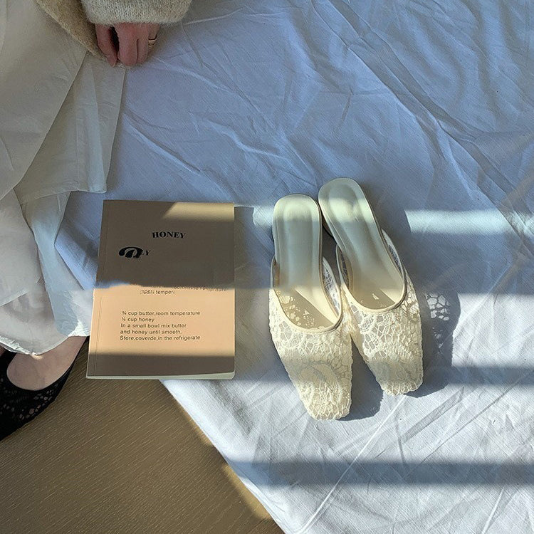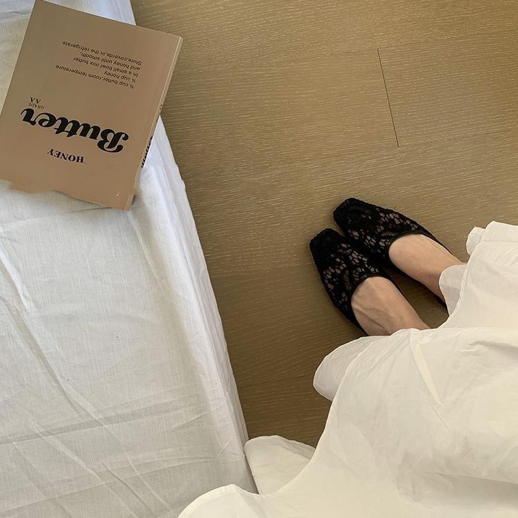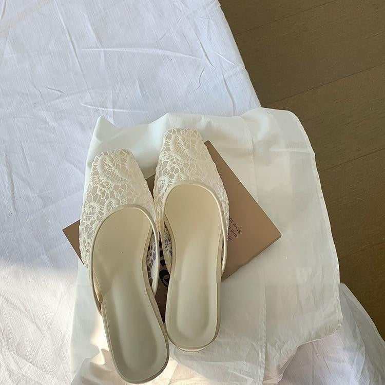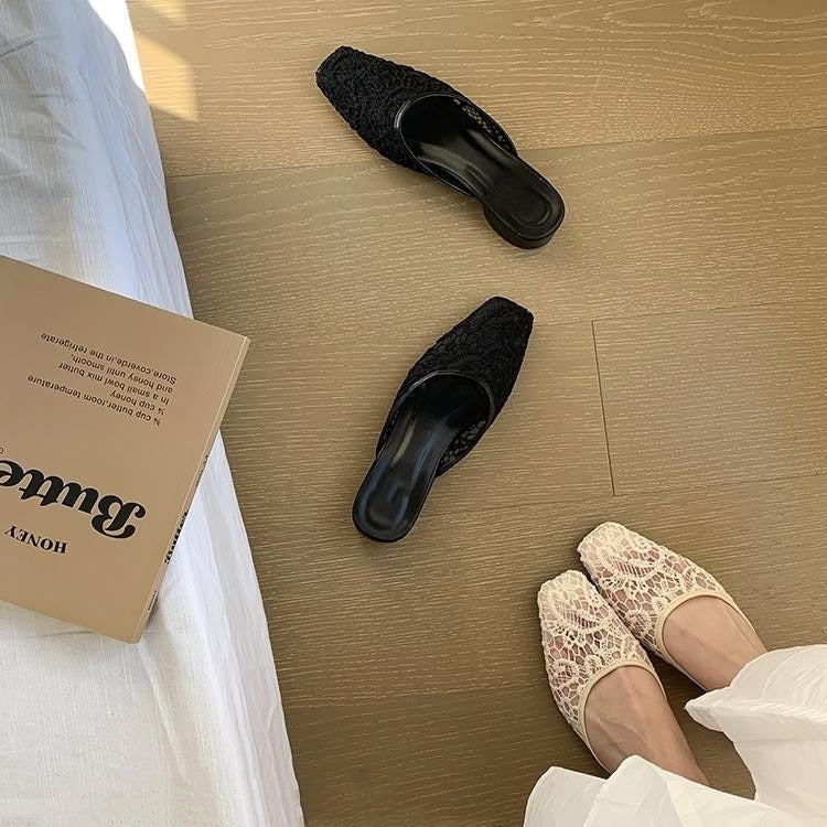 【シューズ】チュール×メッシュ♡抜け感バブーシュサンダル|スカートに似合う上品フラット