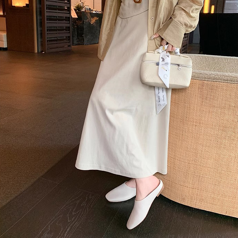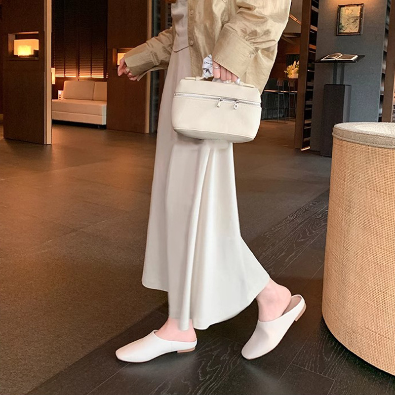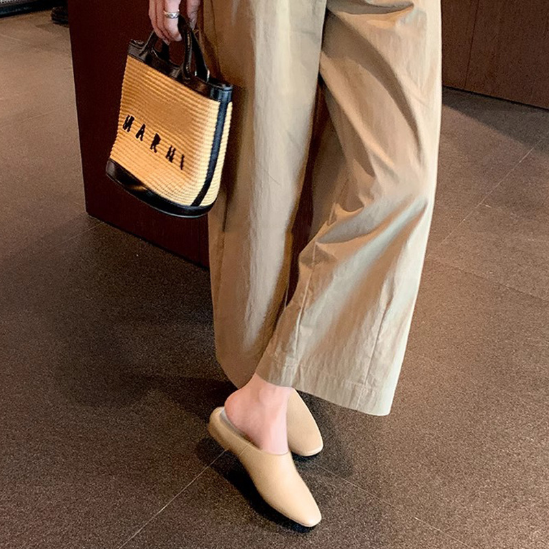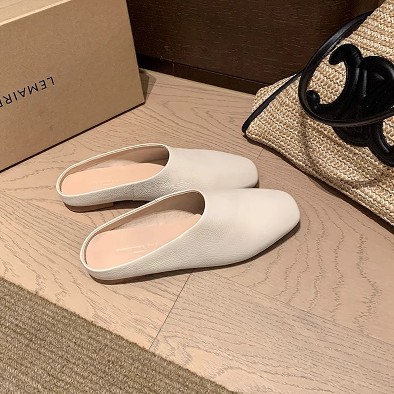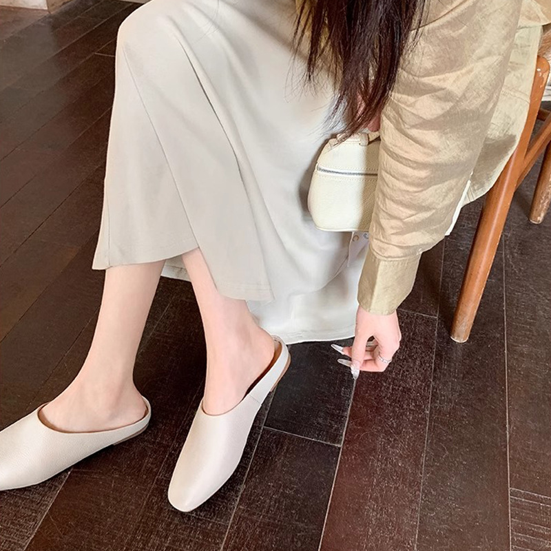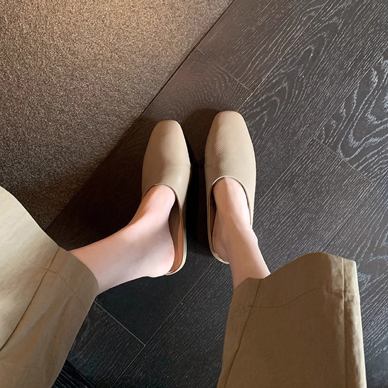 【シューズ】高級感あふれるスクエアトゥミュール|上品♡フラットローヒールサンダル
