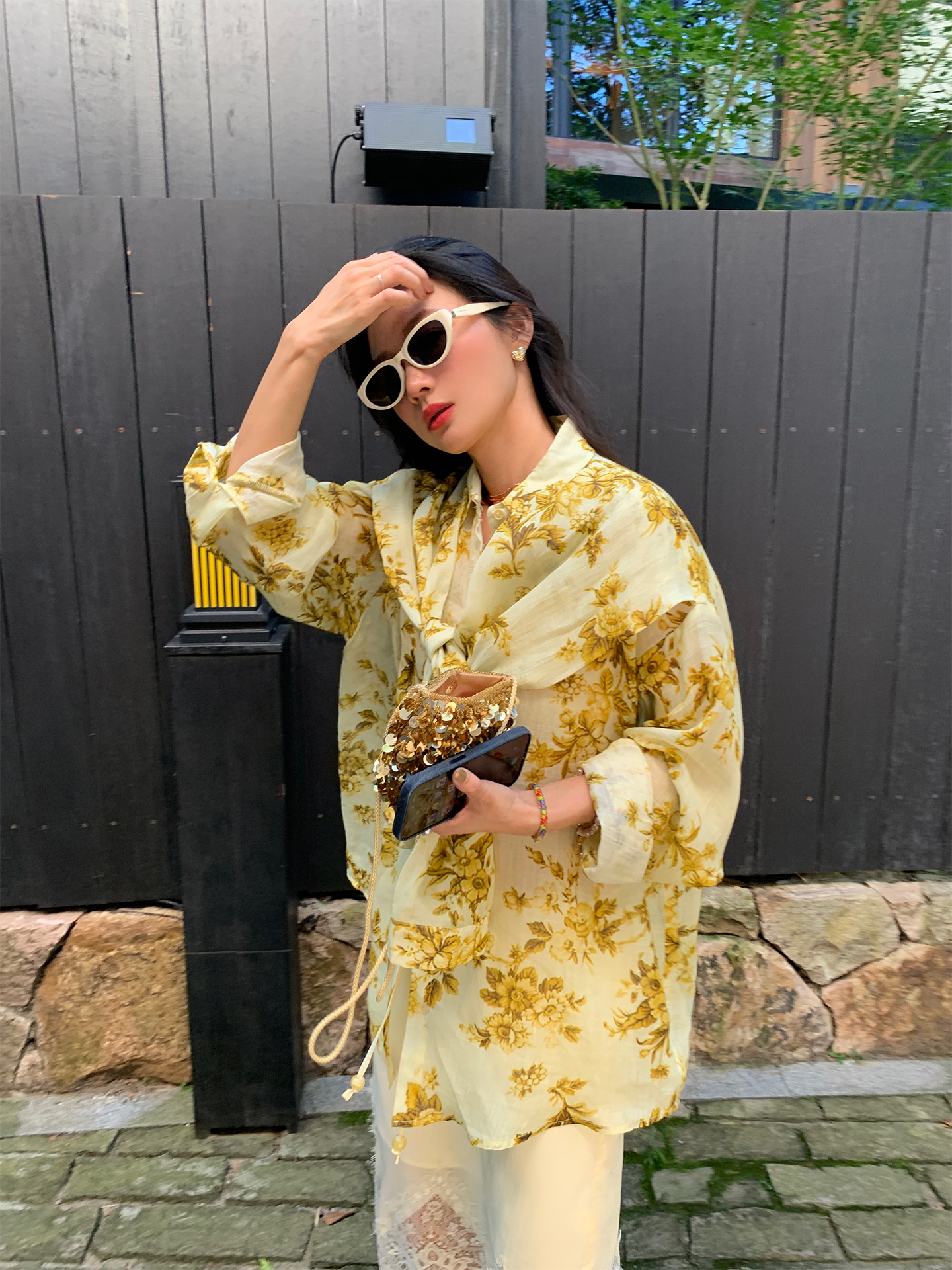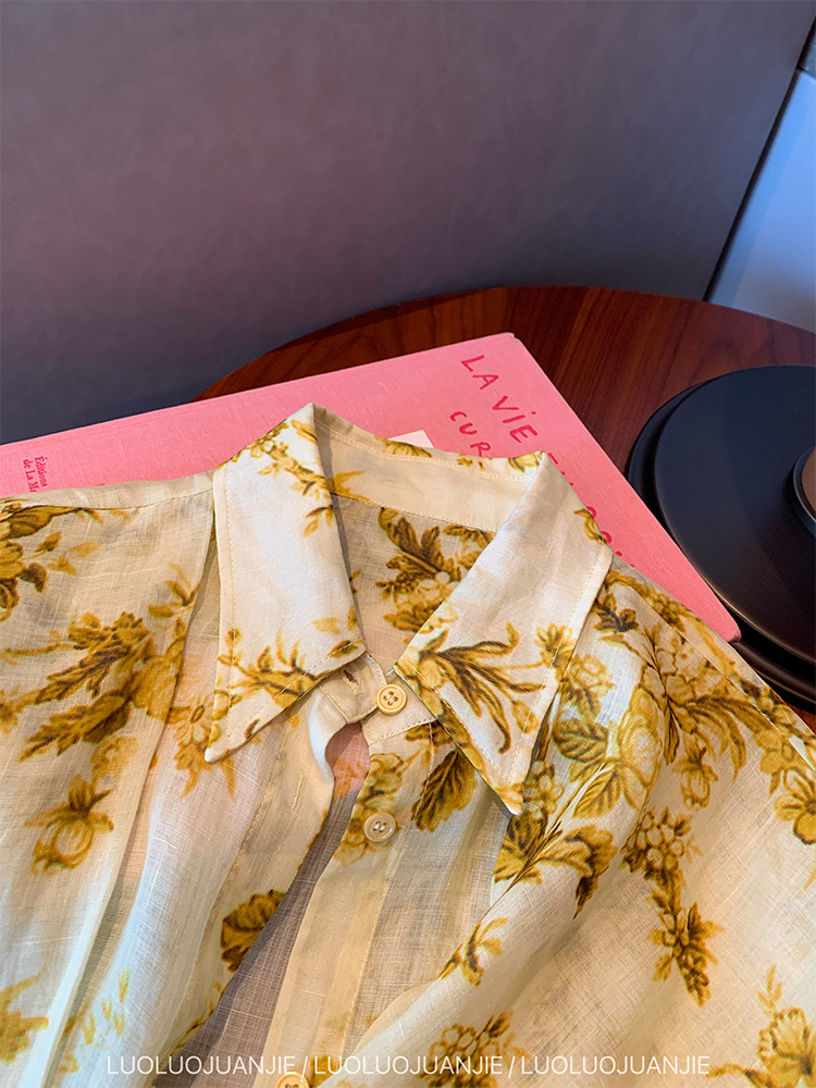 【商品名】【トップス】春 秋 夏 ラミー ゆったり 長袖 シャツ 【SHシリーズ】