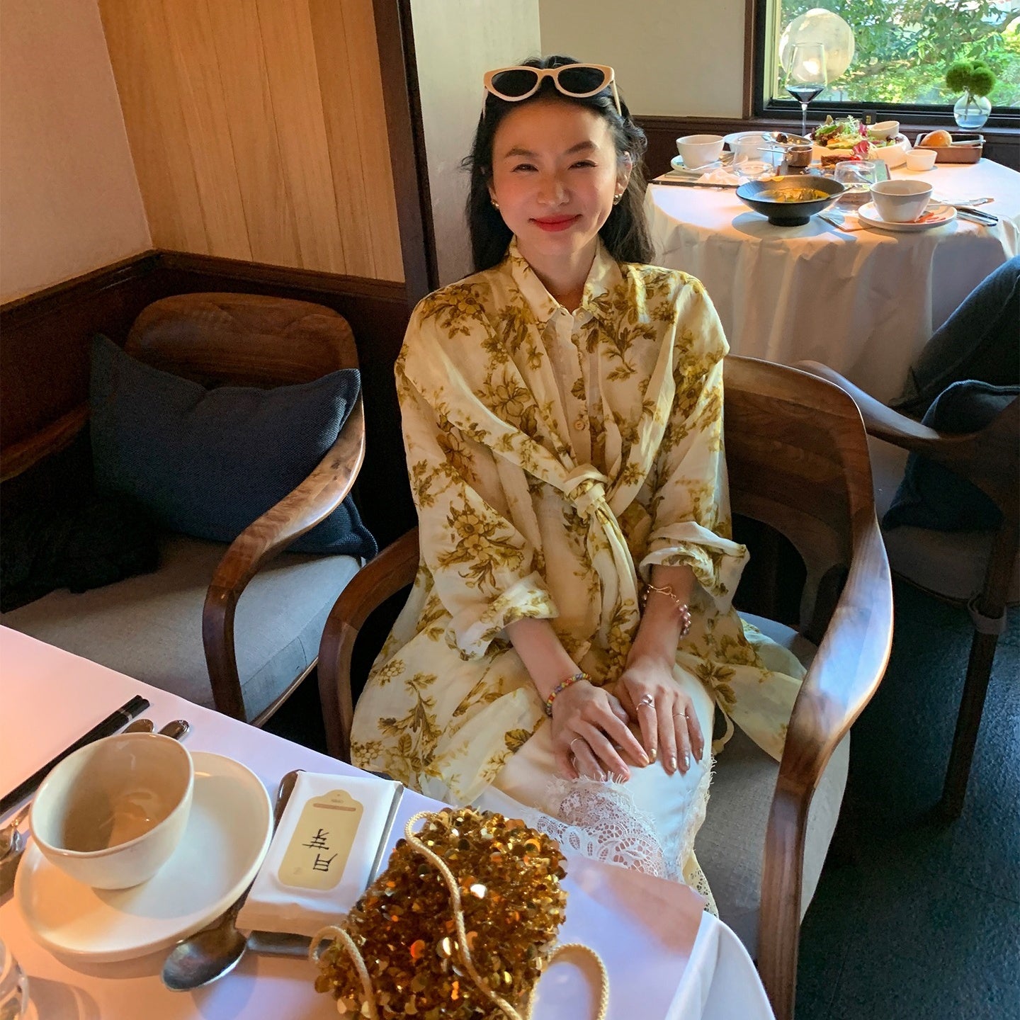 【ワンピース】春 秋 冬 刺繍 スイート 切り替え シャツ 長袖 ワンピース 【SHシリーズ】